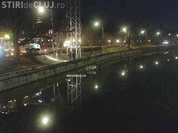 O mașină a căzut în Someș, lângă Sala Sporturilor - VIDEO