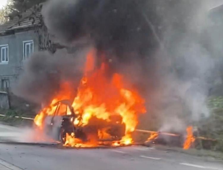 O mașină a fost cuprinsă de flăcări în Feleacu! A ars ca o torță