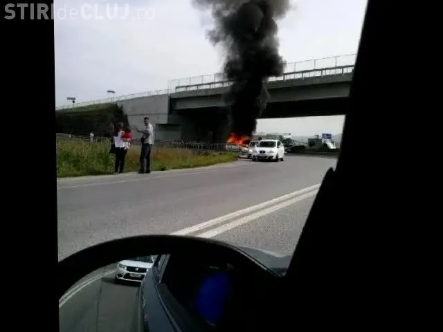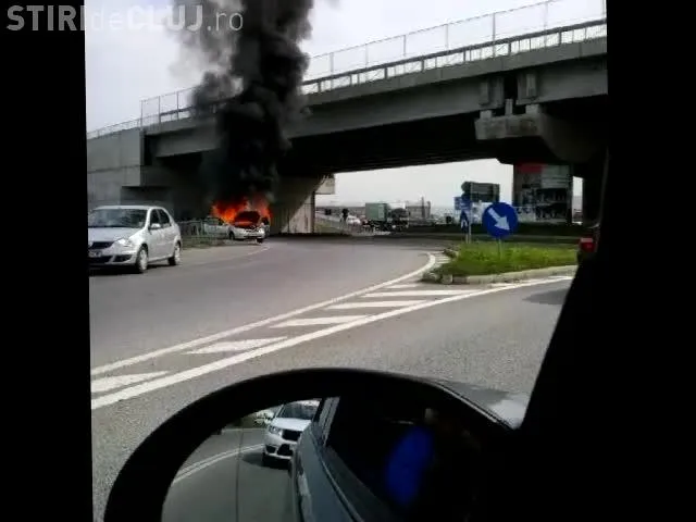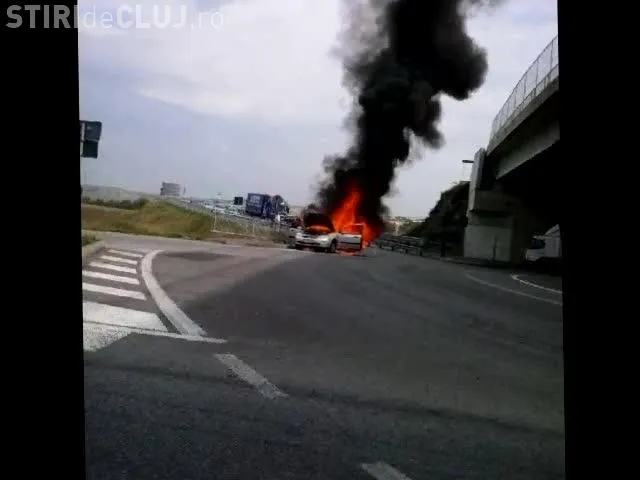 Un autoturism a luat foc la intrare în Cluj-Napoca, în jurul orei 11.30.