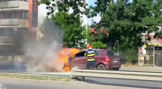 O mașină a luat foc pe Calea Turzii, lângă benzinăria MOL - VIDEO cu intervenția pompierilor