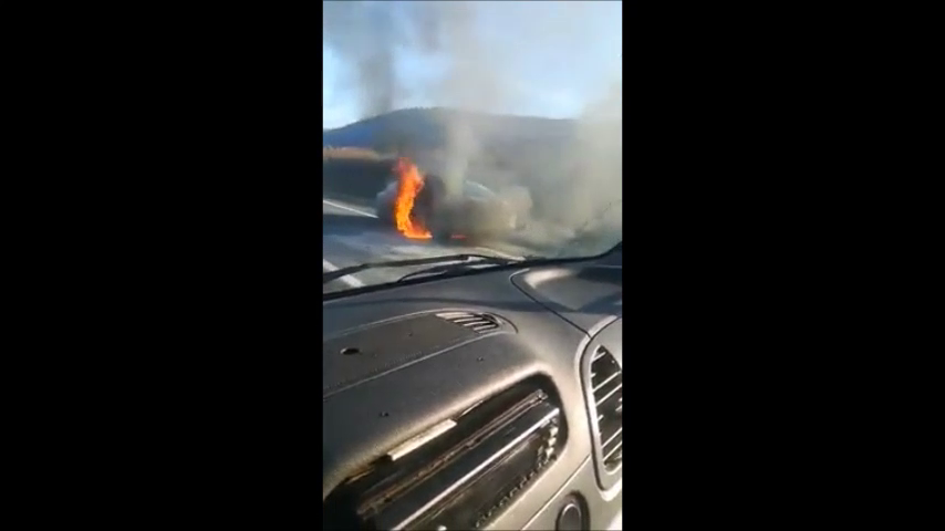 O mașină a luat foc pe ”Centura lui Boc”, dar nimeni nu a oprit pentru a da ajutor - VIDEO