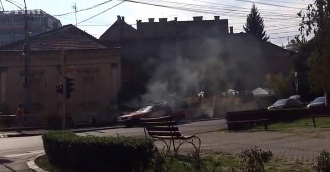 O mașină a luat foc pe strada George Barițiu! Șoferul a luat-o la fugă - VIDEO