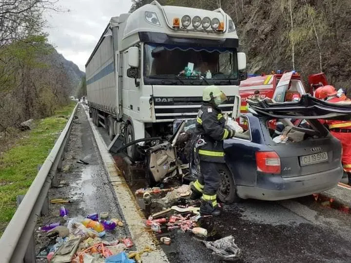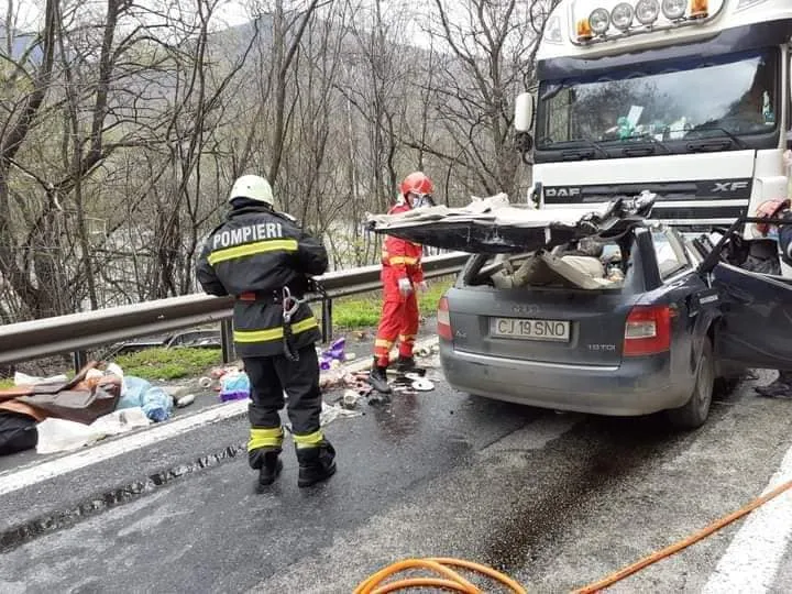 O mașină din Cluj a intrat sub un TIR la Vâlcea. Două persoane au murit - FOTO