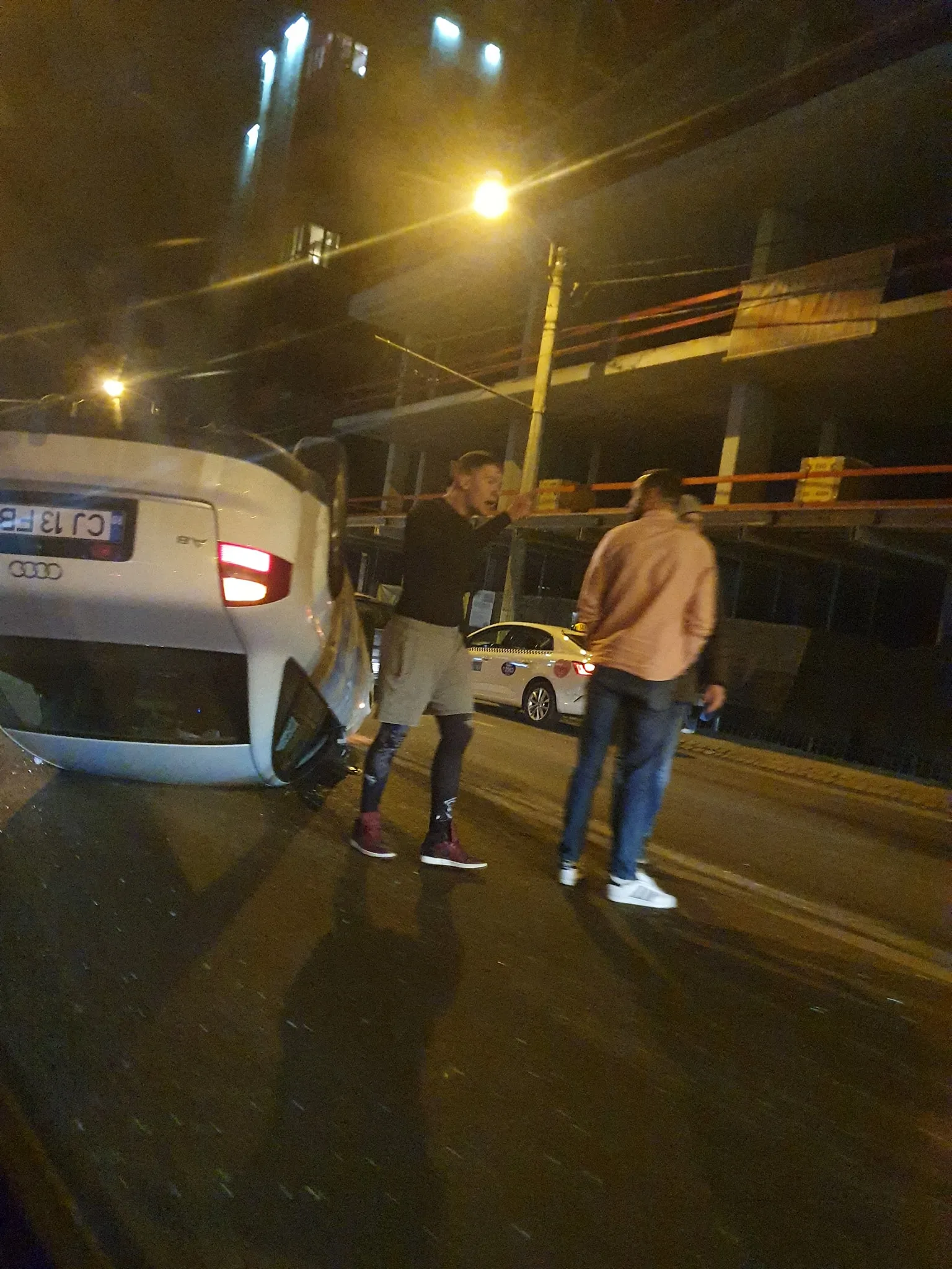 Mașina s-a răsturnat în apropiere de Bella Bike, la intersecția Teodor Mihali cu strada Sarmizegetusa.