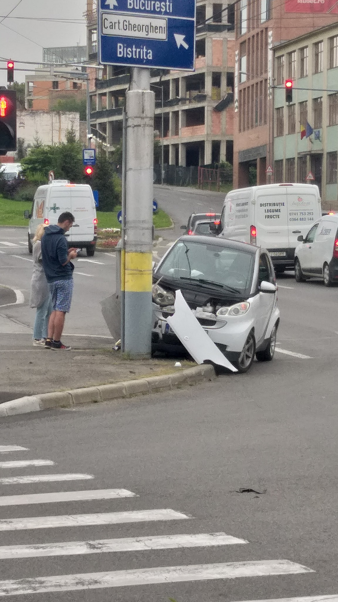 Un Smart s-a înfipt într-un stâlp în Piața Baba Novac, din Cluj-Napoca.