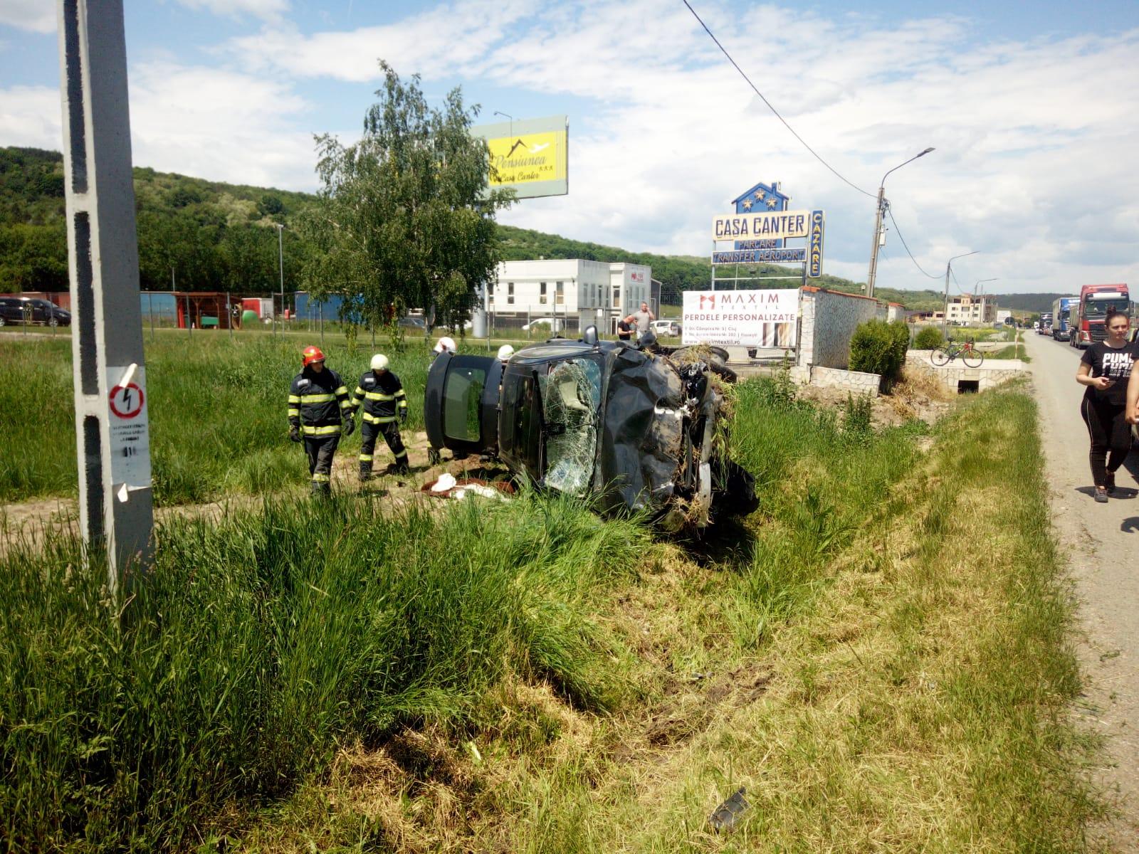Solicitarea pentru intervenția pompierilor a fost înregistrată în jurul orei 13.30, iar la fața locului au găsit un autoturism răsturnat pe partea laterala în afara părții carosabile, iar ocupantul ieșit din acesta.