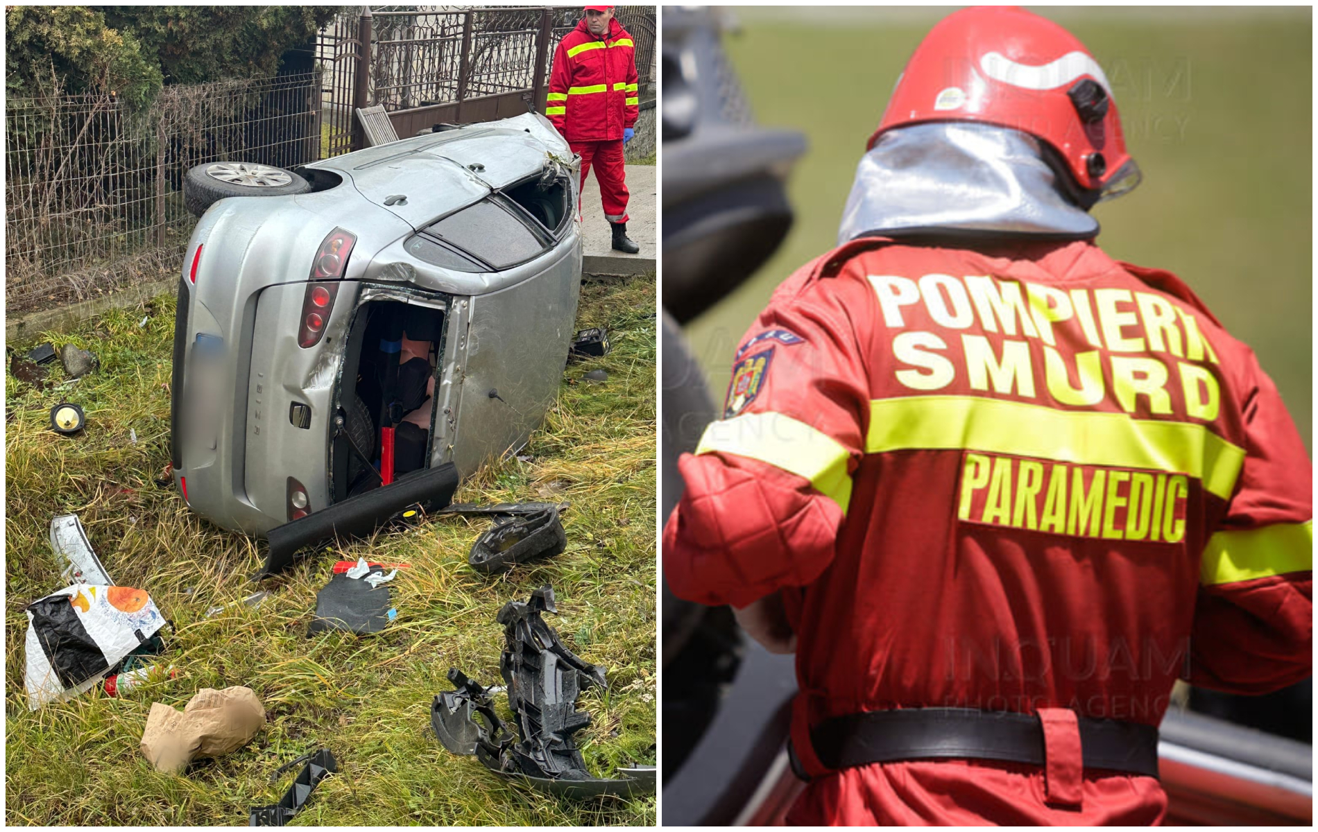 O femeie în vârstă de 30 de ani s-a răsturnat cu mașina pe marginea drumului după ce a pierdut controlul volanului. Din fericire nu a fost rănită, astfel că a refuzat transportul la spital. Polițiștii vor stabili cu exactitate circumstanțele în care a avut loc accidentul.