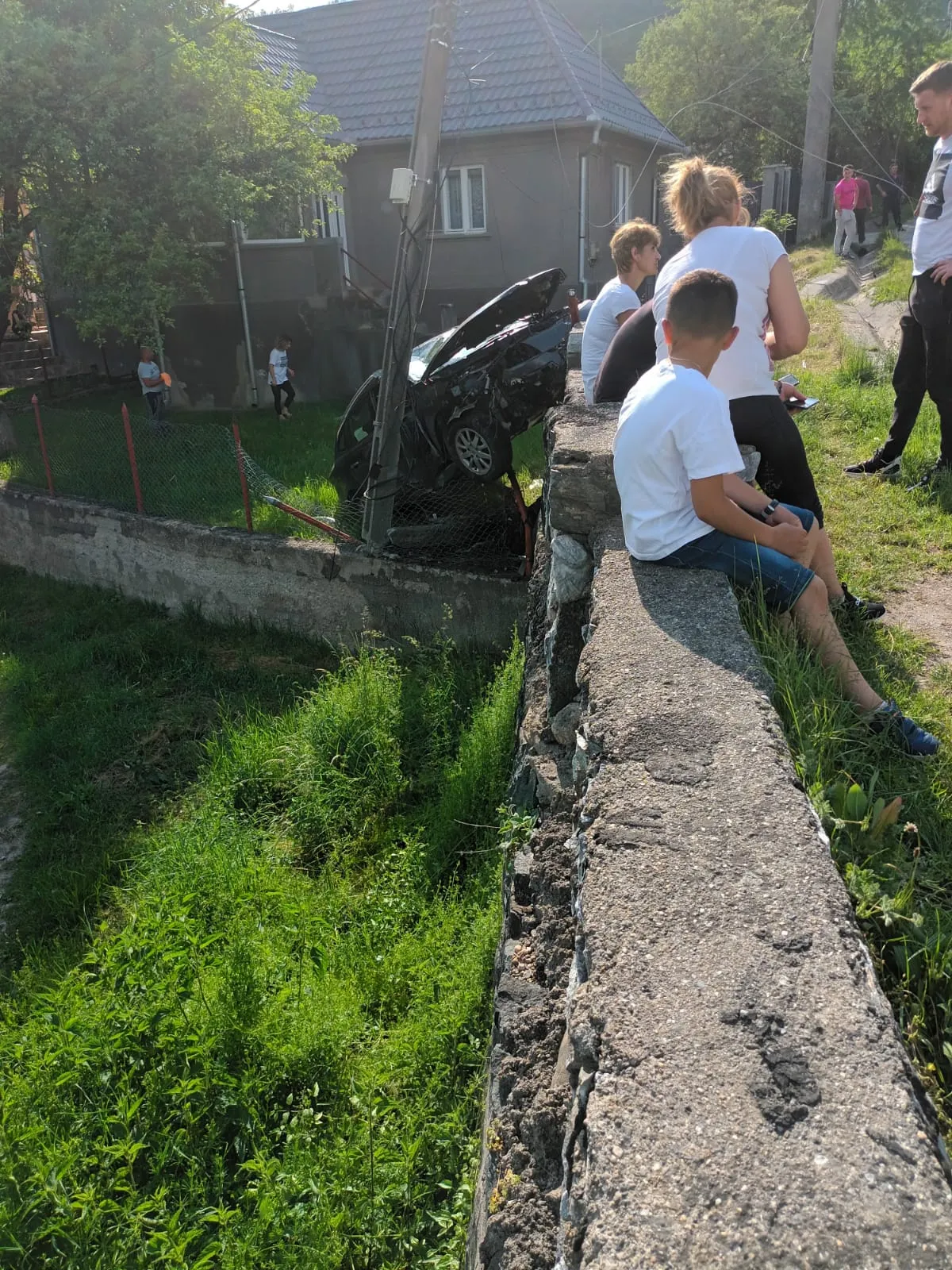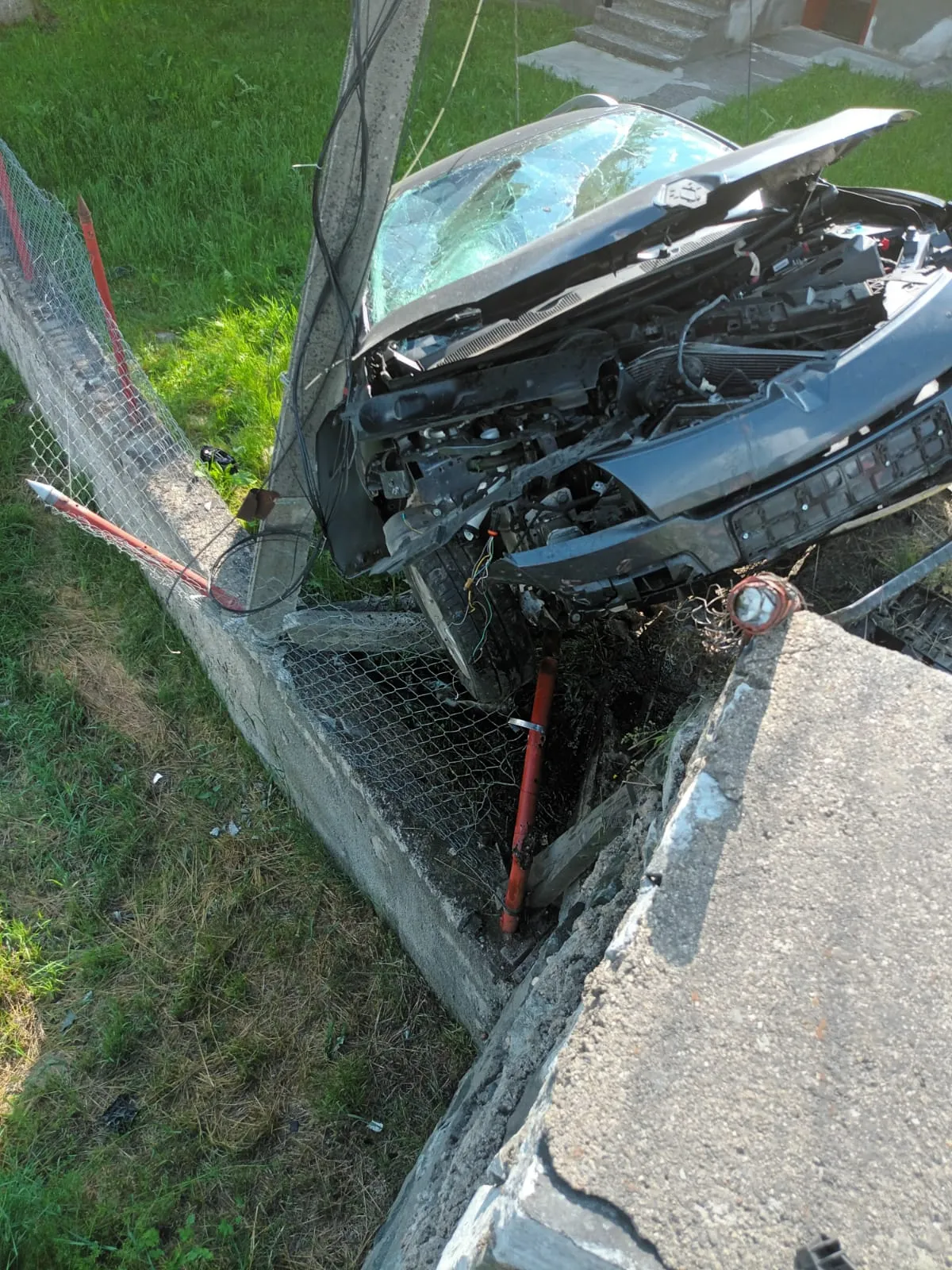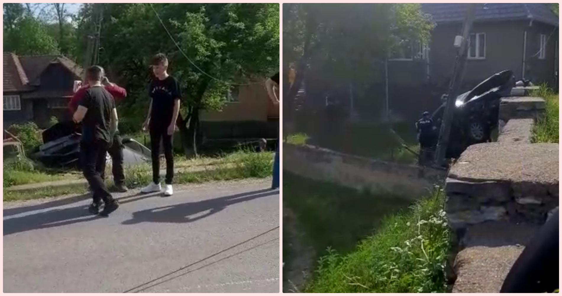 O polițistă a comis un accident în Băișoara! Mașina a lovit un stâlp și firele de electricitate sunt căzute pe drum - VIDEO