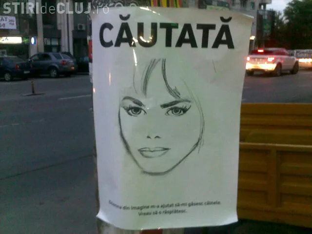 ”Persoana din imagine m-a ajutat să îmi găsesc câinele. Vreau să o răsplătesc!”, a scris clujeanul pe afiș, pe care a desenat și chipul tinerei căutate.