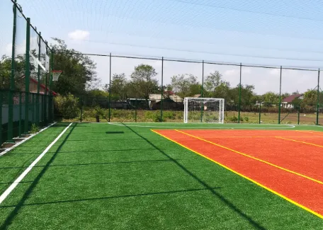 Astfel, la școală va fi construit un teren de sport cu gazon artificial, dotat cu 2 porți de mini-fotbal. Va avea o dimensiune de 800 mp, fiind împrejmuit cu ajutorul unor stâlpi metalici cu înălţimea de 6 metri. Împrejmuirea cu înălțime de 6 metri va fi realizată din plasă metalică împletită şi va conține o cale de acces.