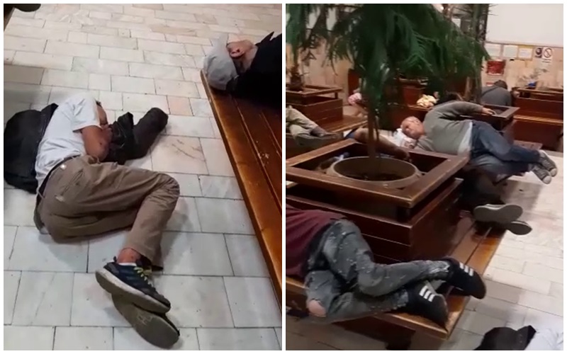 Oameni sărmani dorm pe jos în Gara Cluj! Șeful Gării nu îi trimite spre Adăpostul de noapte al Primăriei - VIDEO