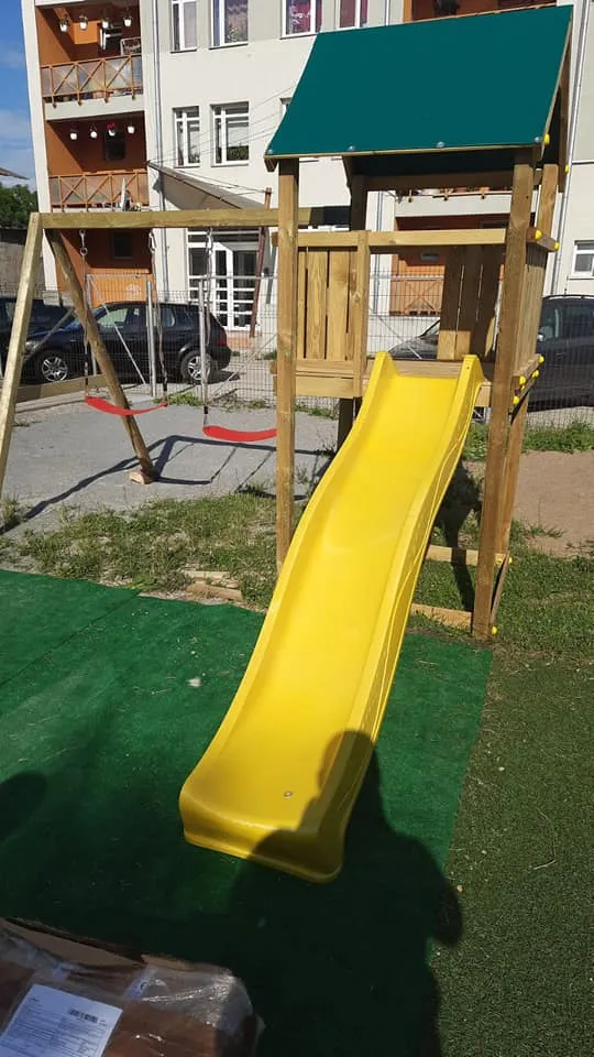 Grădinița Prichindeii Veseli, grădiniță cu program prelungit, beneficiază de un parc de joacă modern, asociatia oferind un ansamblu de joacă, gazon artificial și opt băncuțe de grădină pentru prichindeii obosiți de atâta joacă.