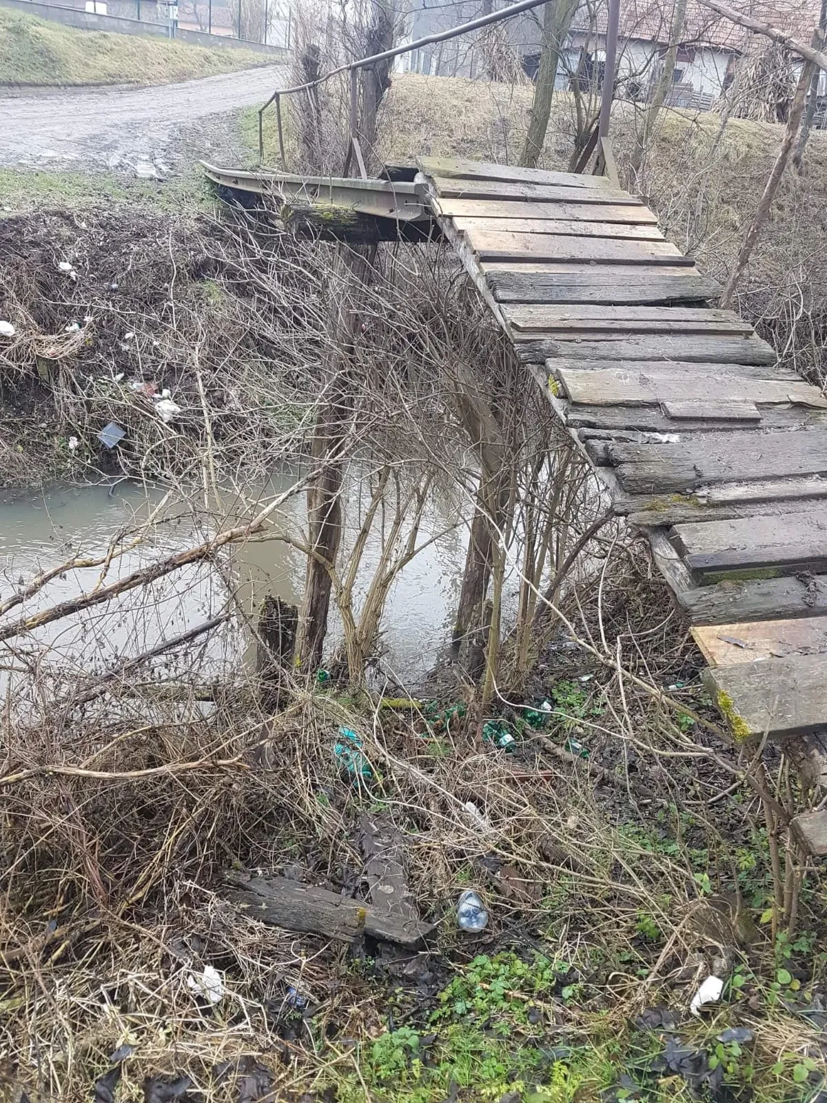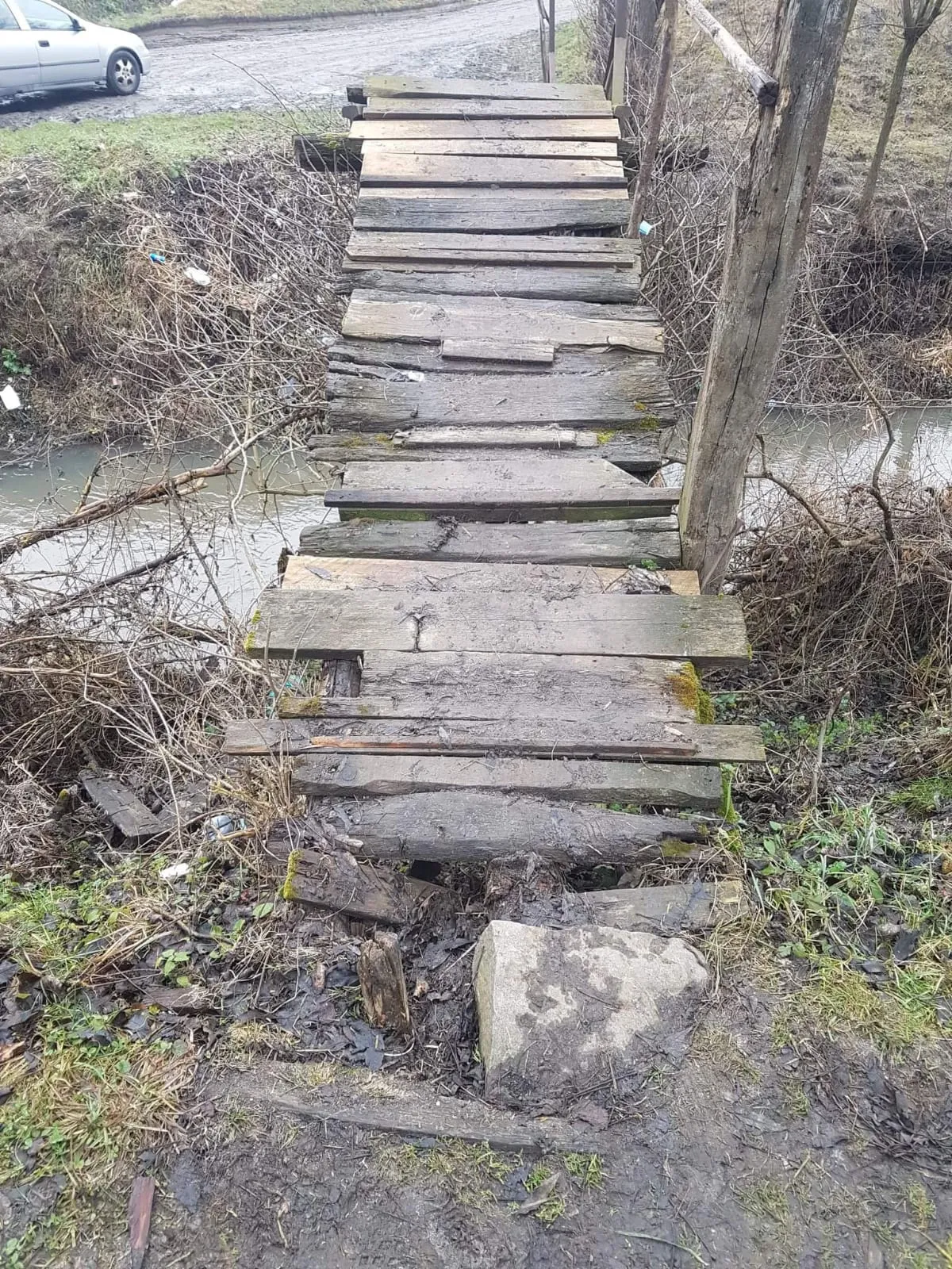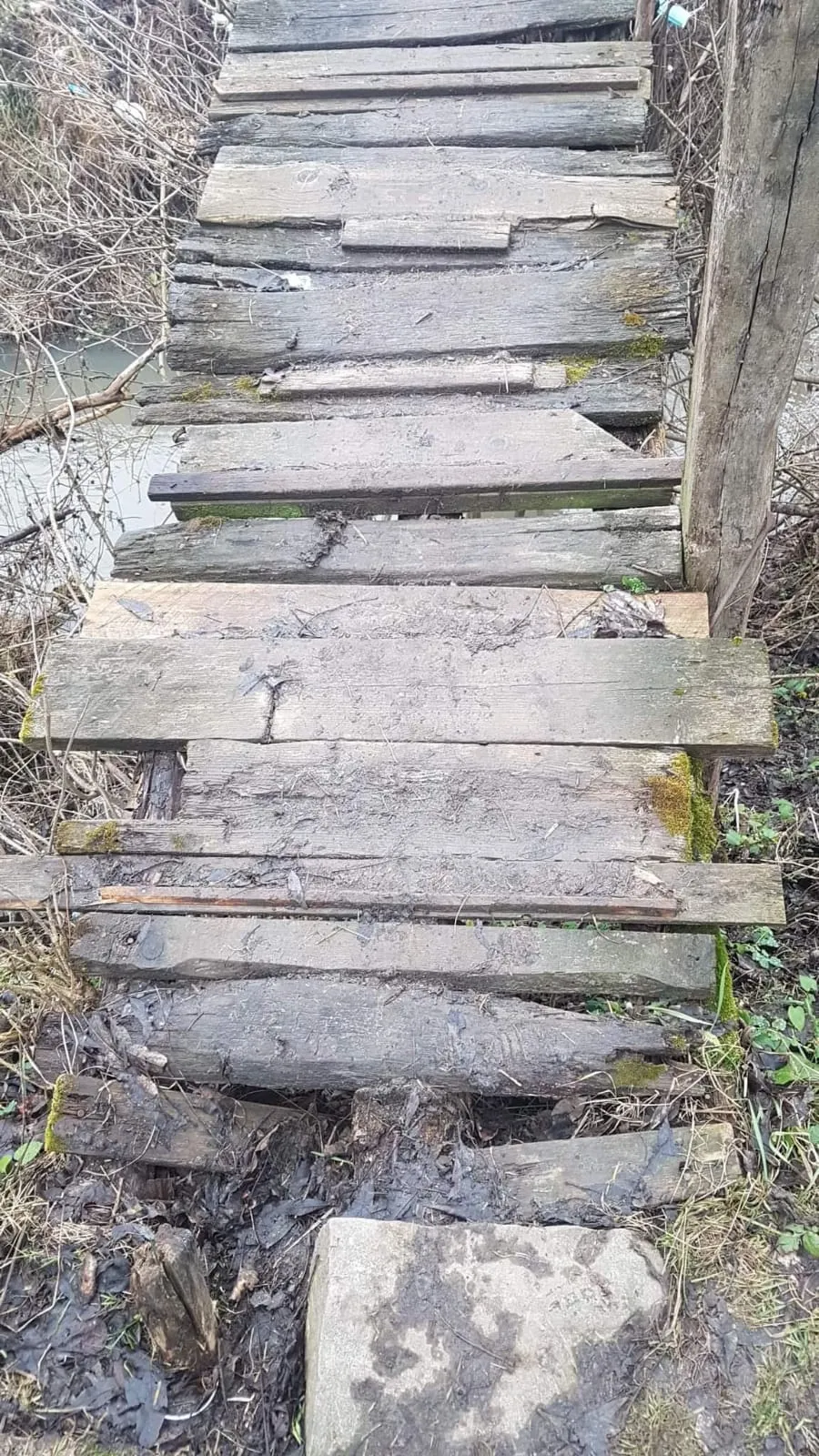 ”Așa arată drumul și puntea pe care trecem zilnic câteva familii și Primăria nu face nimic.