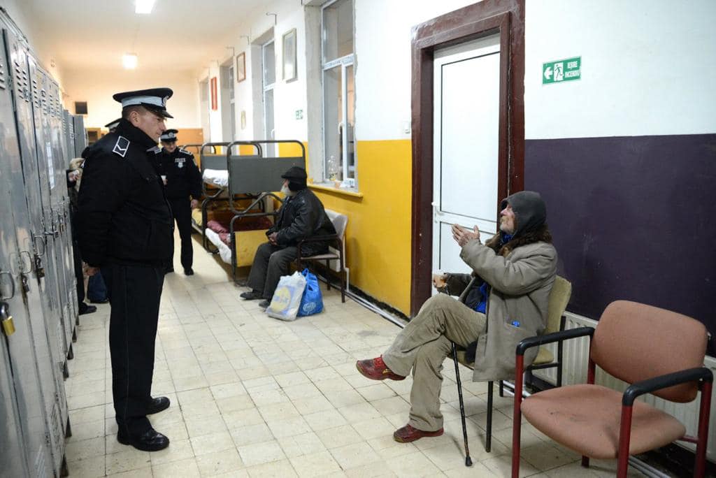 Polițiștii locali din Cluj-Napoca au adunat oamenii străzii la Centrul de Găzduire Temporară, de teamă că gerul de afară ar putea produce victime.
