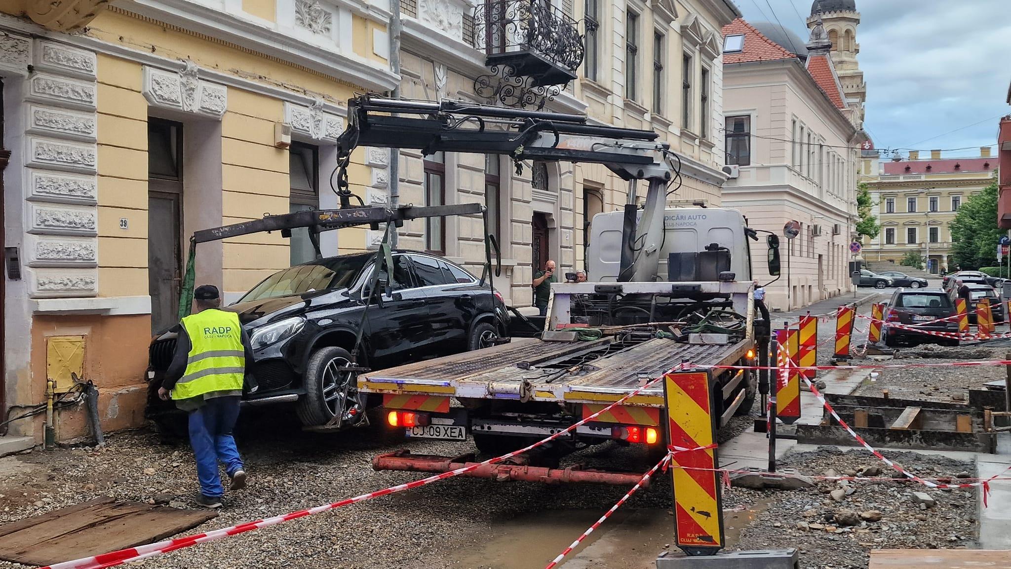 Oare el a fost la volan? Un șofer a fost sancționat în cazul Mercedesului abandonat pe o stradă din Cluj-Napoca, după un accident