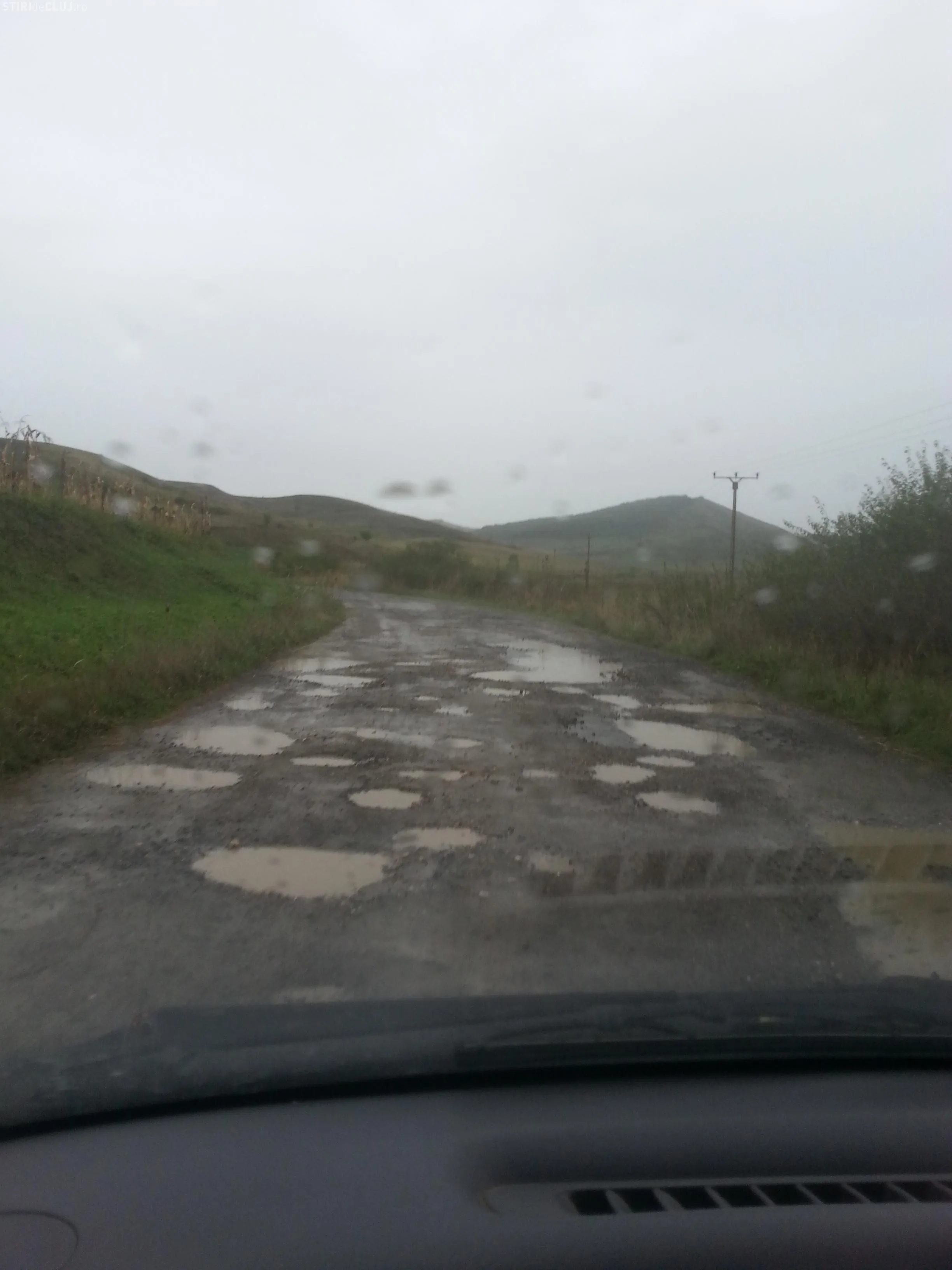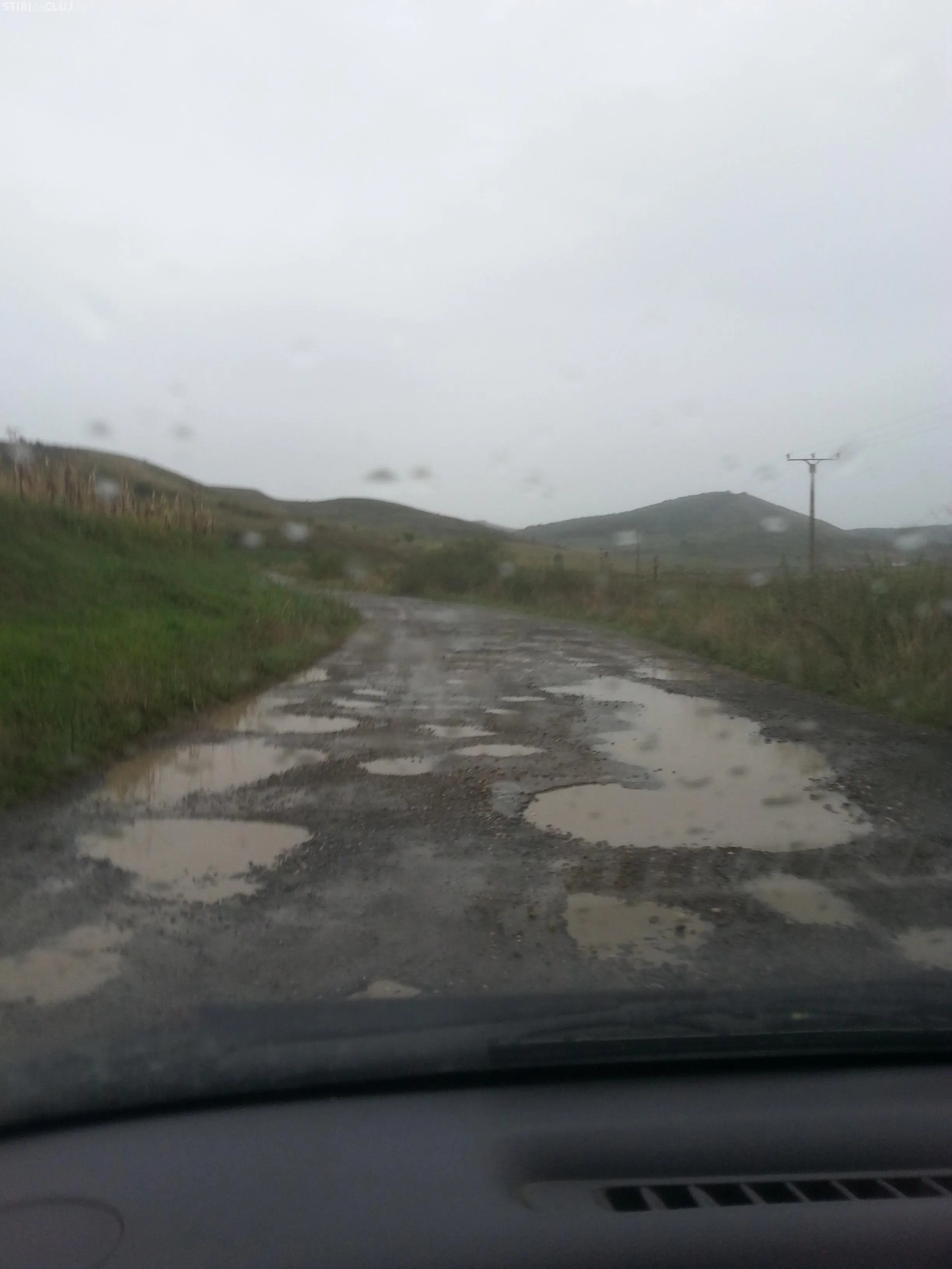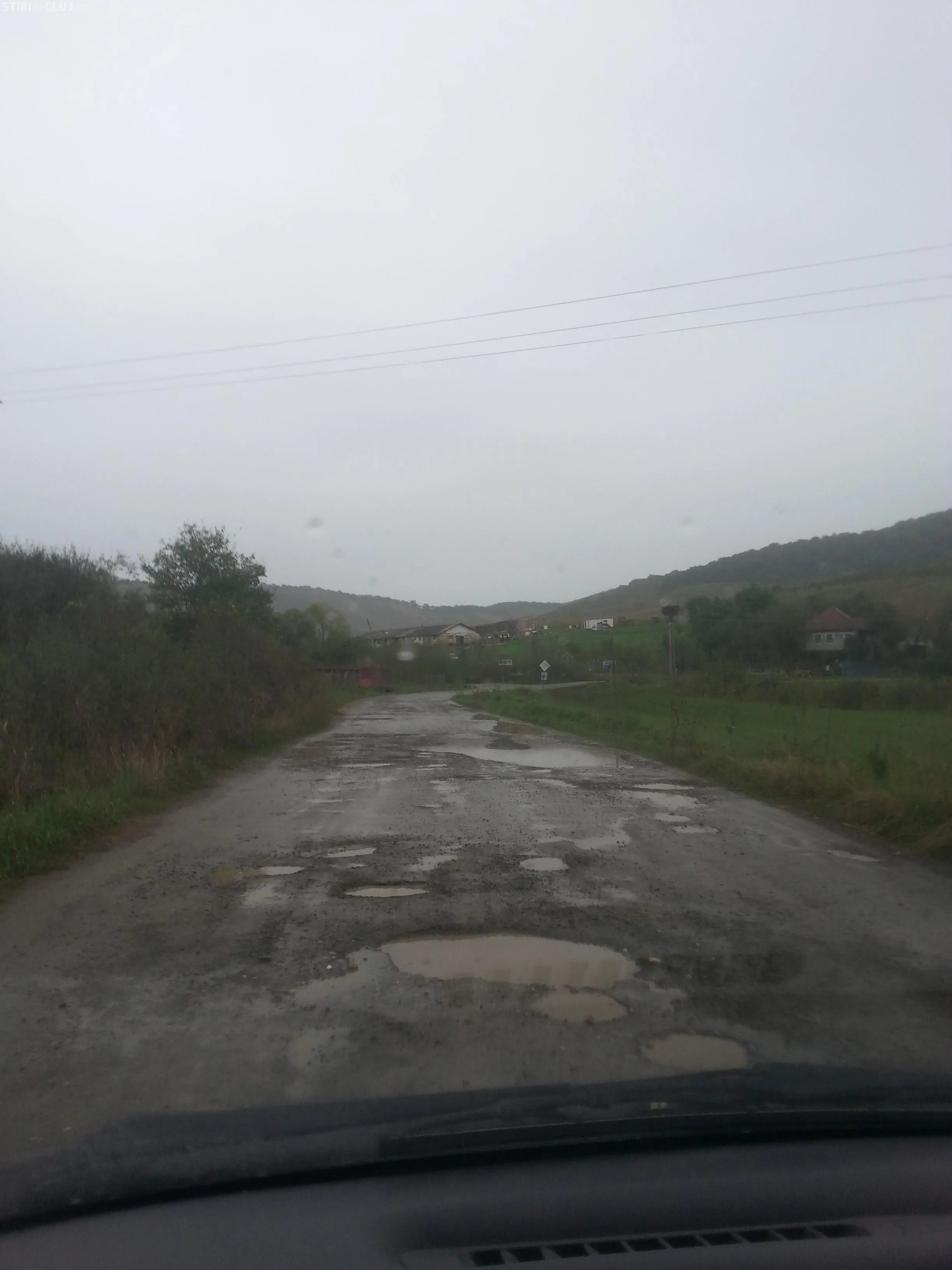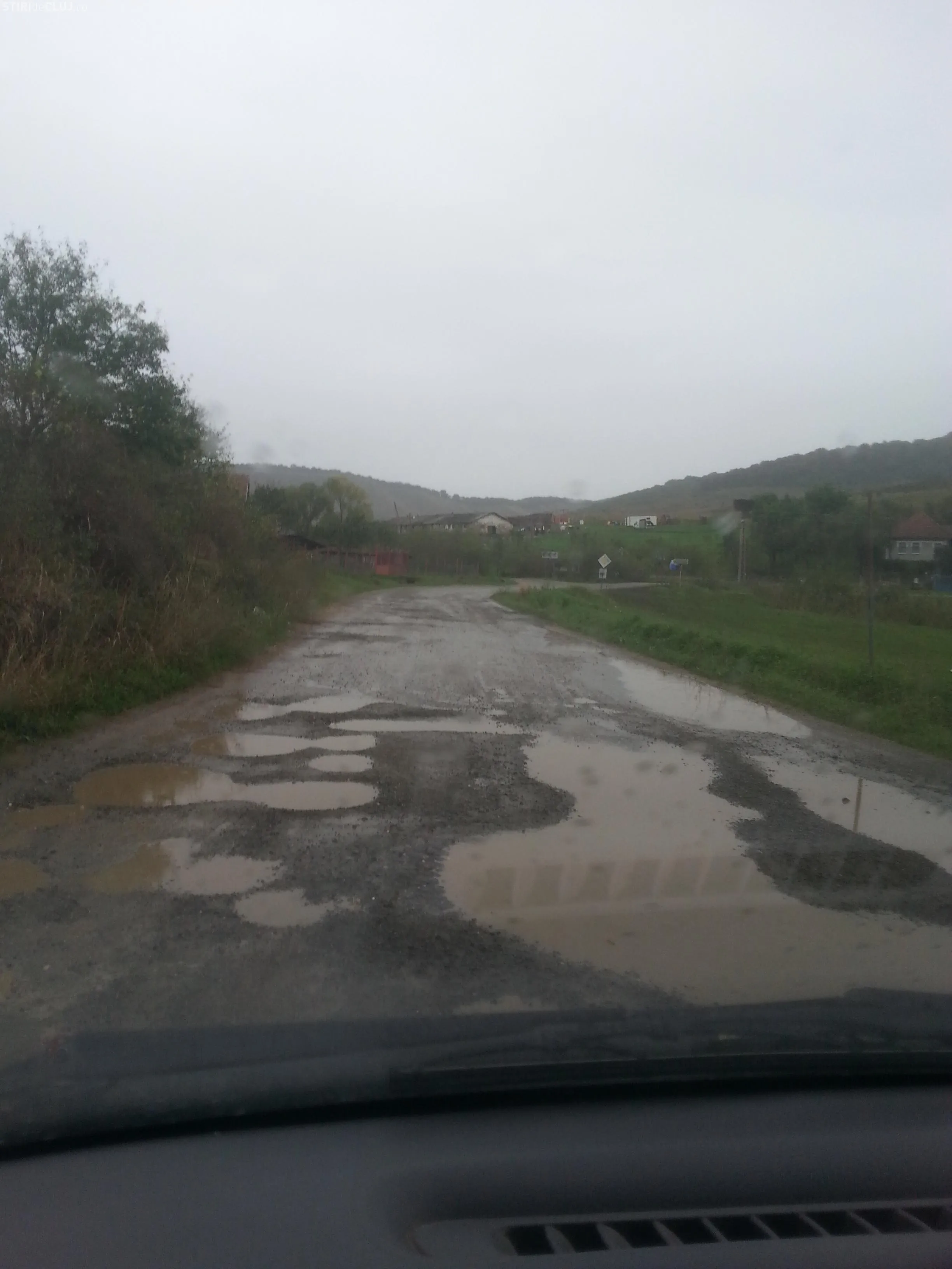 ”As vrea sa va arat cum arata un drum judetean. As dori sa postati pe Știri de Cluj sa vada lumea cum se circula pe drumul judetean JUCU-VISEA. Zilnic facem naveta pe acest drum”, ne-a relatat un clujean.