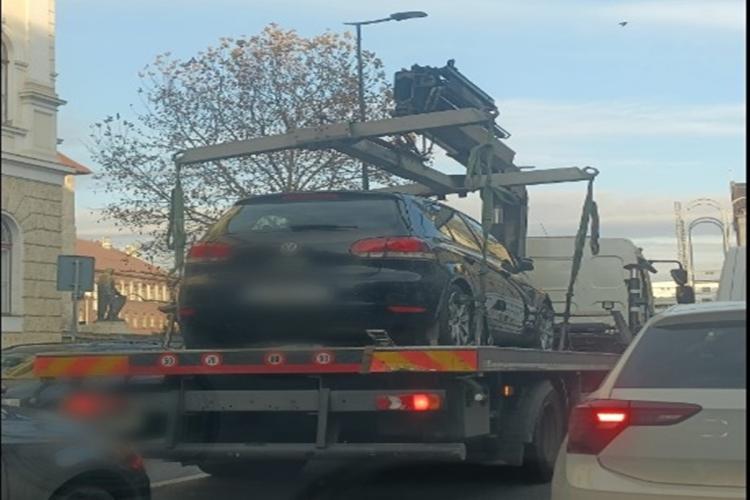 Operațiune în forță la Cluj! Un șofer s-a trezit cu mașina luată „pe sus” de RADP