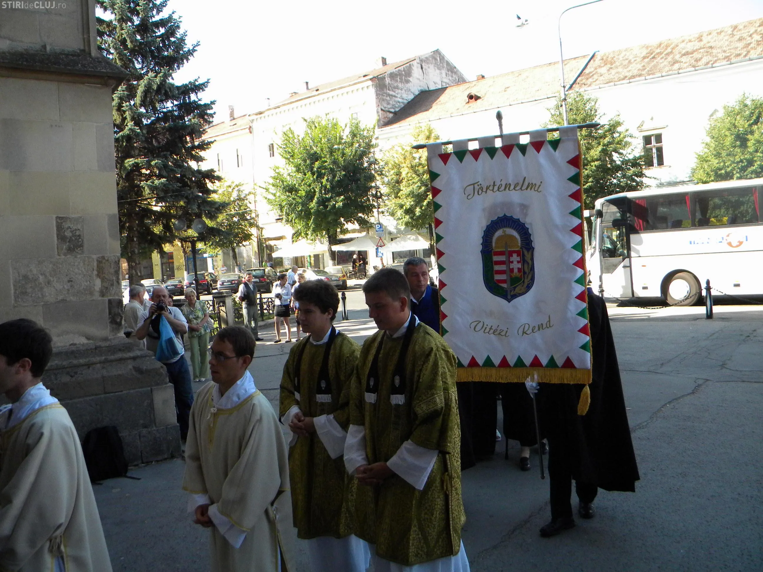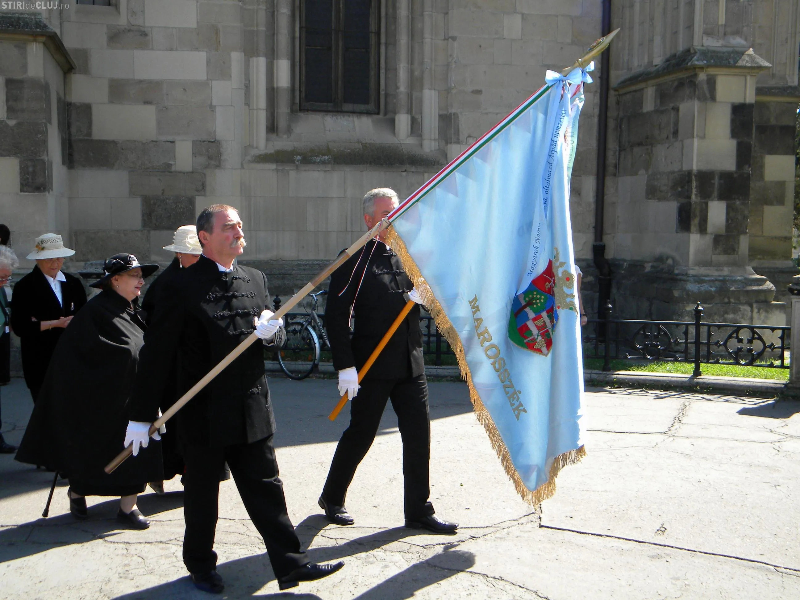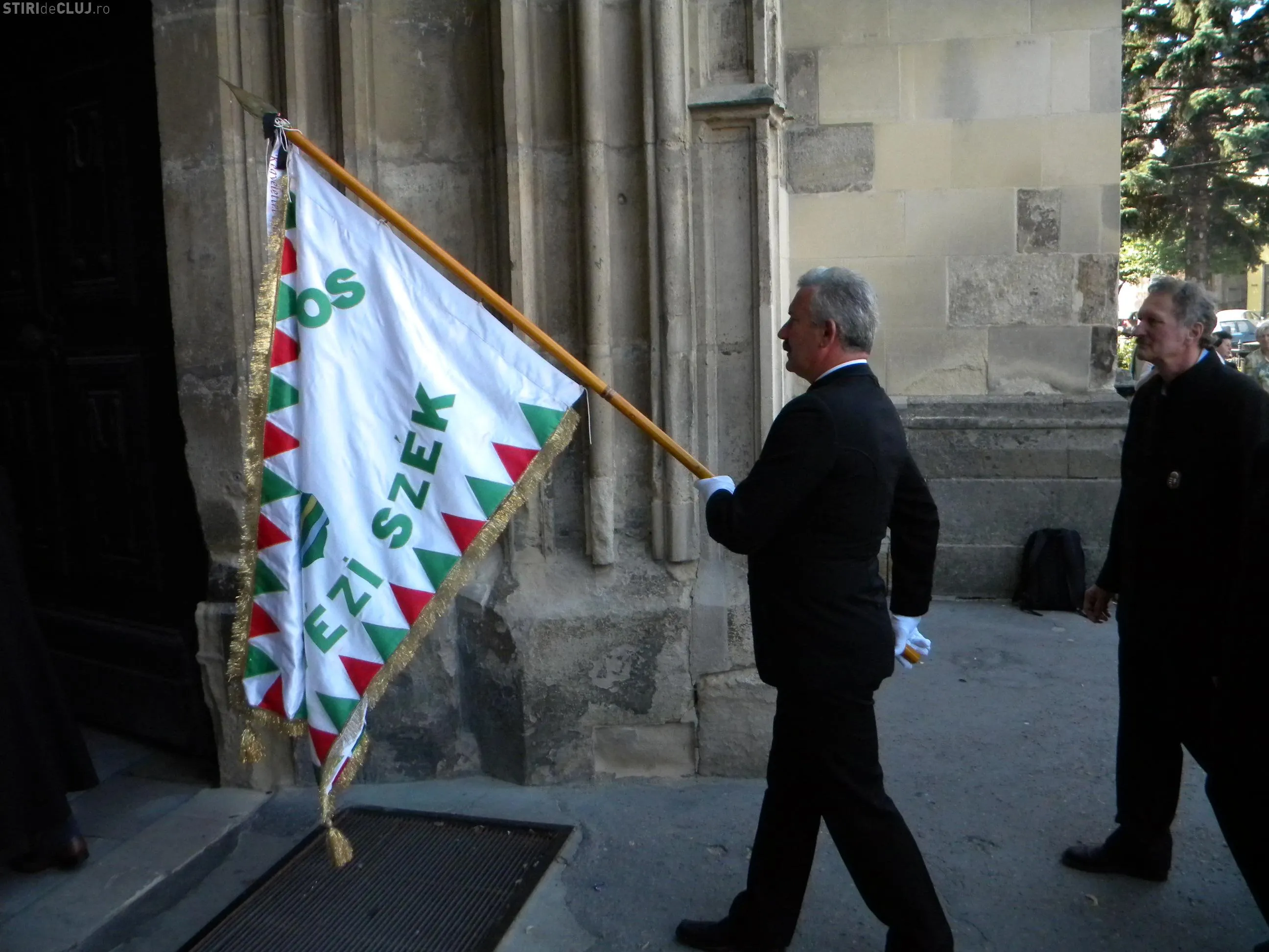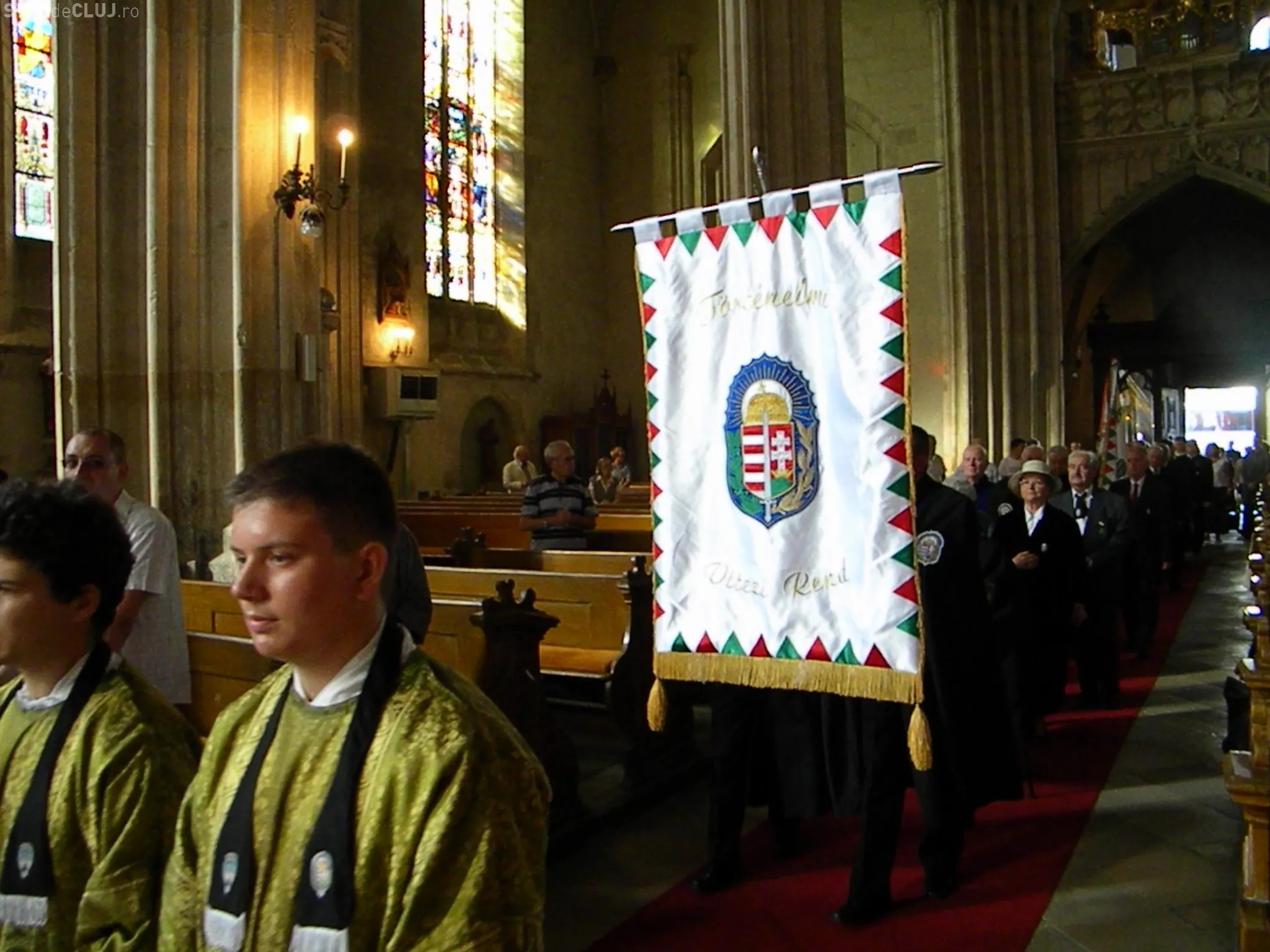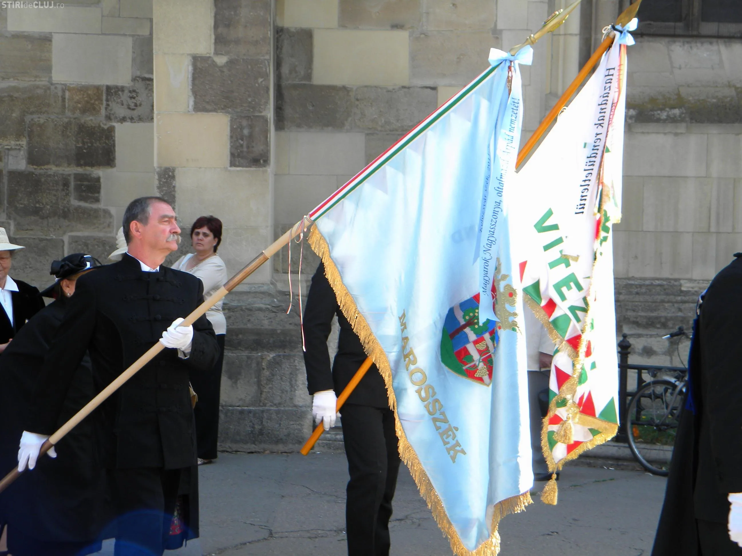 Ceremonia religioasa a inceput la ora 10.00, cand o delegatie formata din 25 de persoane a adus steagul Scaunului vitejilor din Cluj a adus steagul in Biserica Sfantul Mihail. La slujba religioasa au asistat circa 250 de maghiari, iar la final steagul a fost sfintit si multimea a intonat imnul Ungariei.