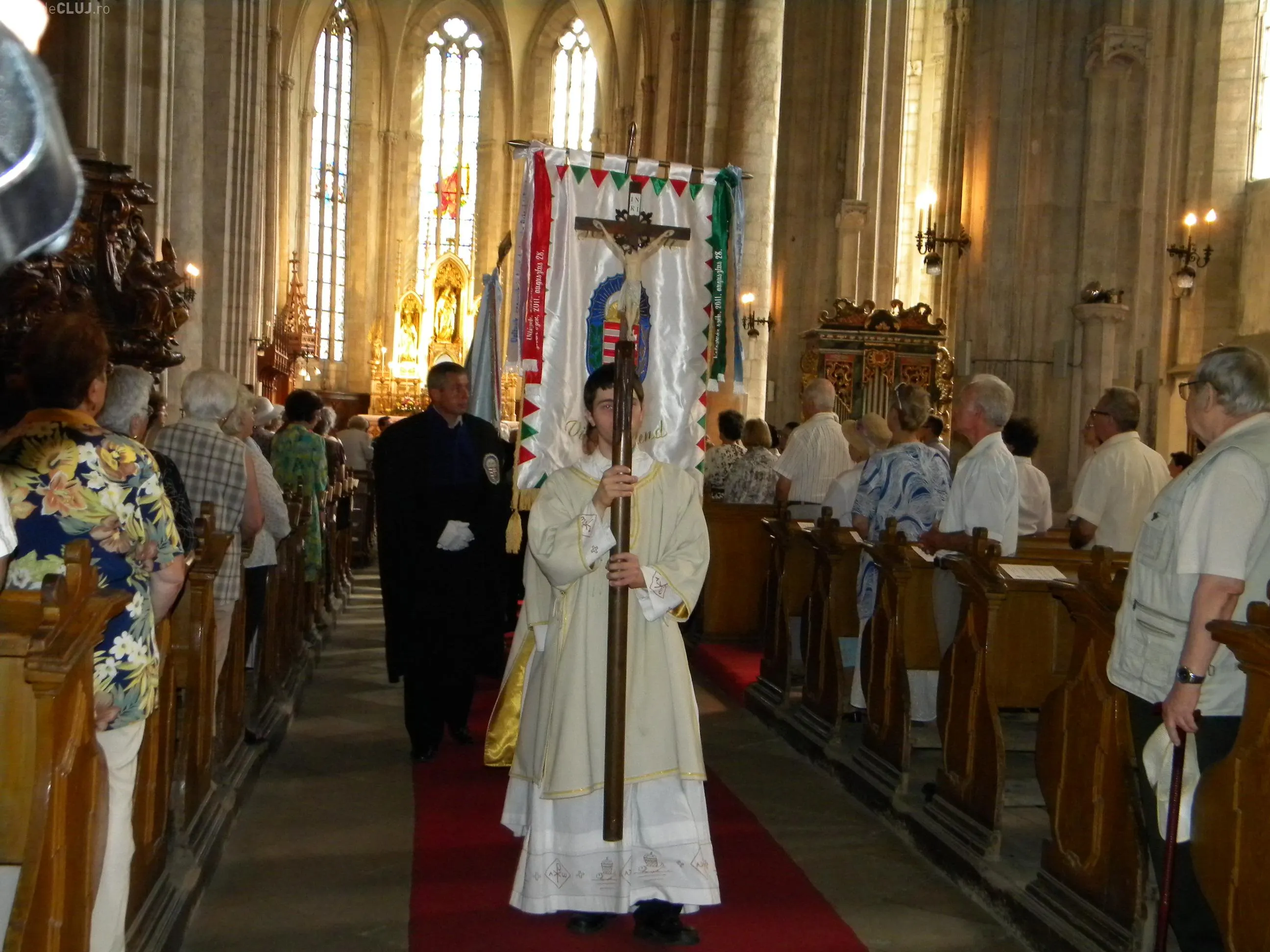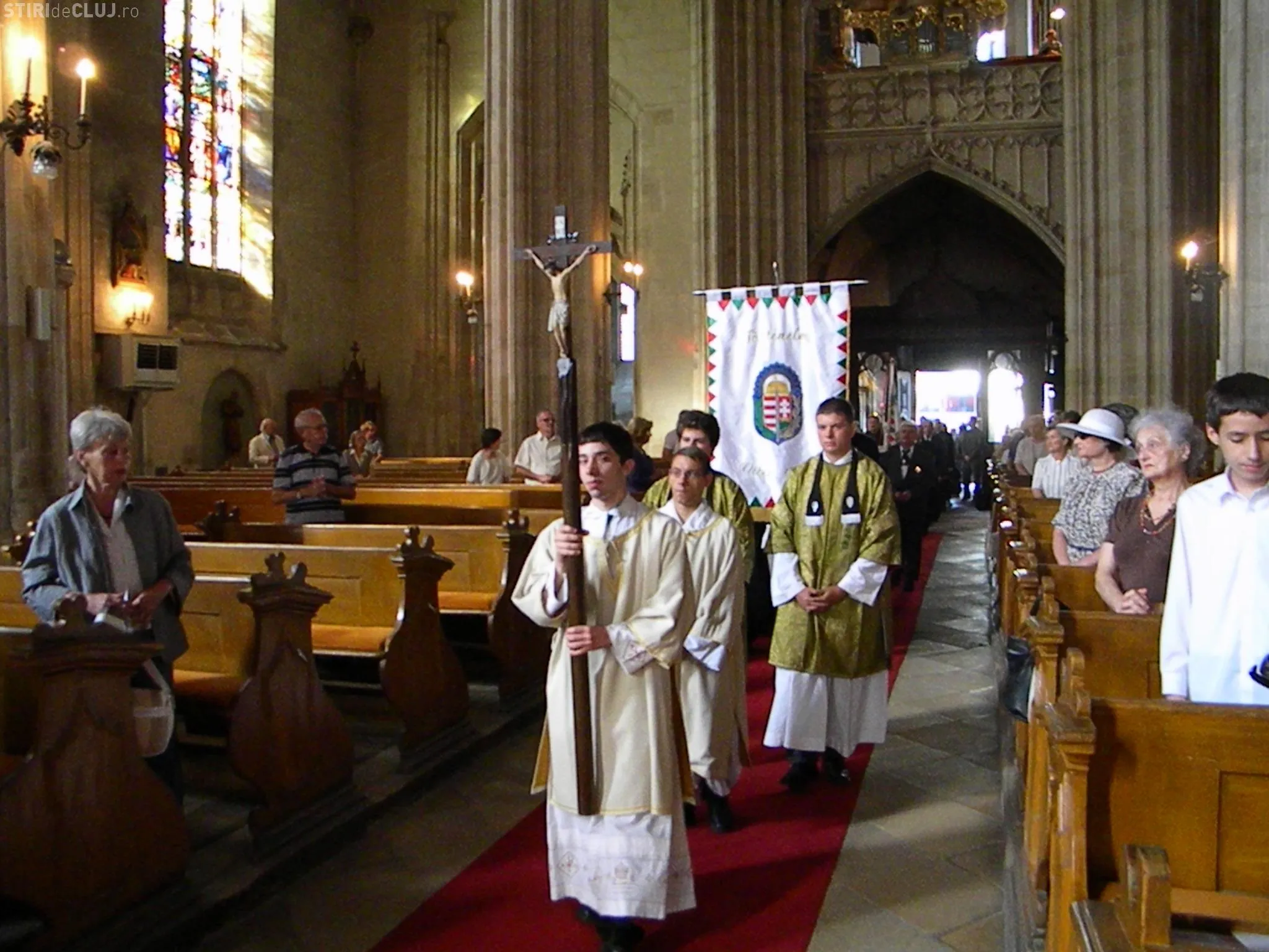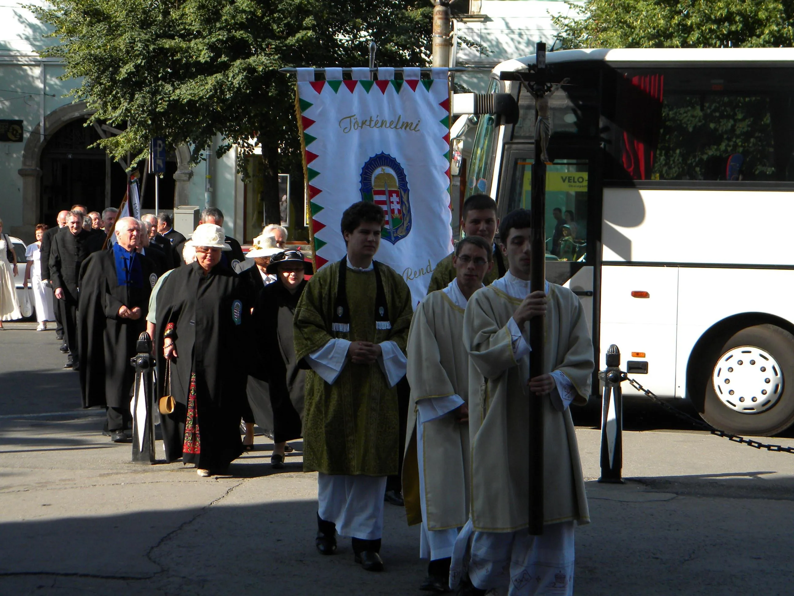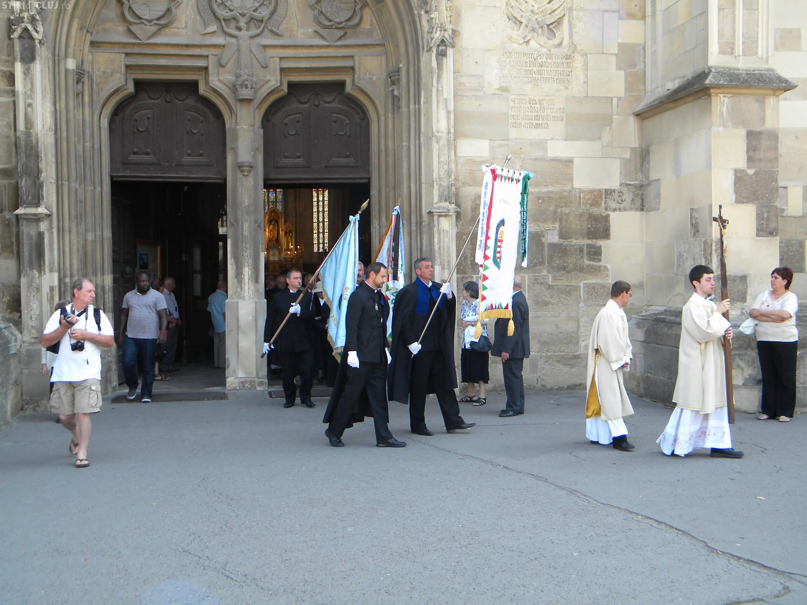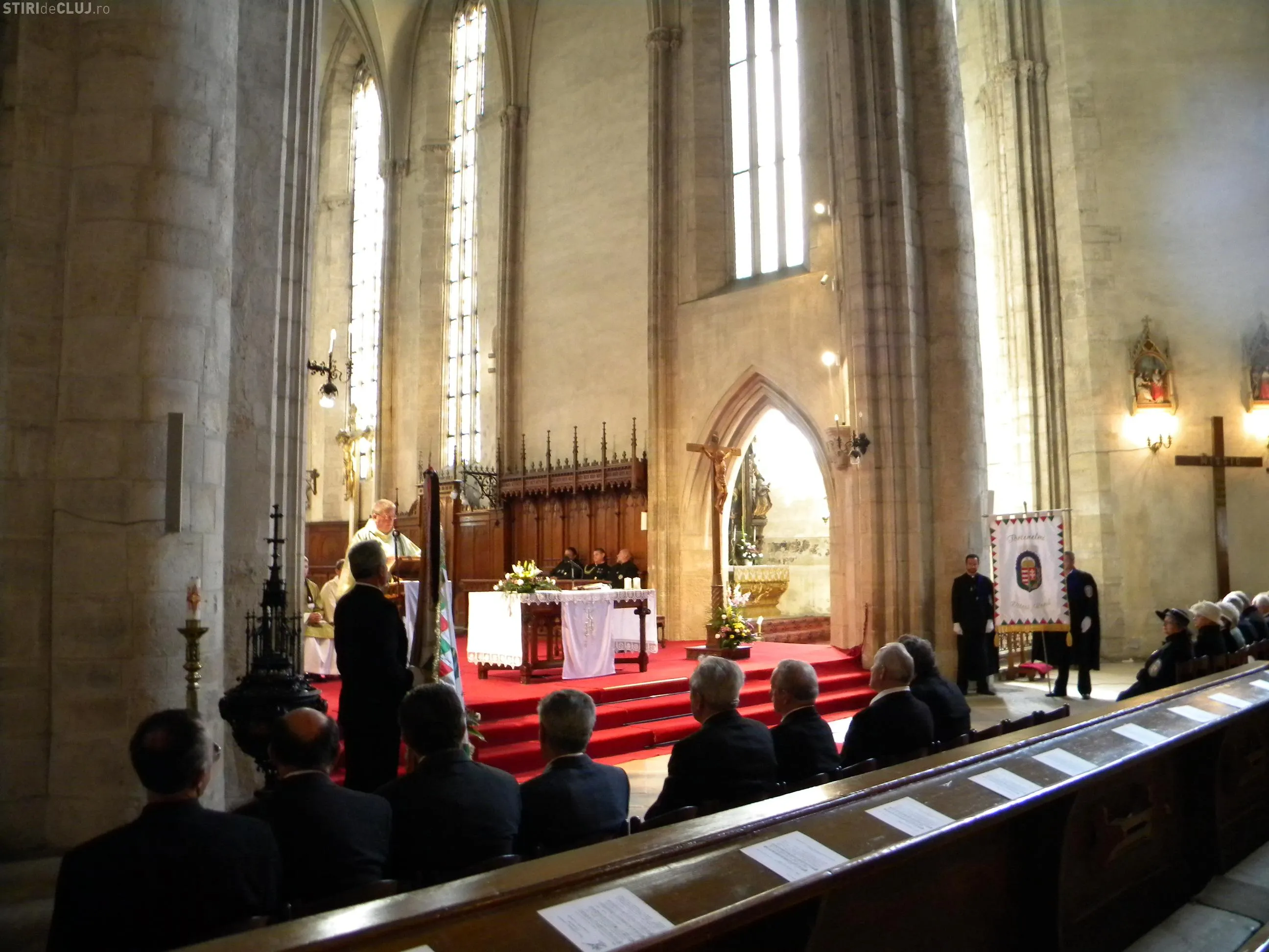 Ceremonia religioasa a inceput la ora 10.00, cand o delegatie formata din 25 de persoane a adus steagul Scaunului vitejilor din Cluj a adus steagul in Biserica Sfantul Mihail. La slujba religioasa au asistat circa 250 de maghiari, iar la final steagul a fost sfintit si multimea a intonat imnul Ungariei.