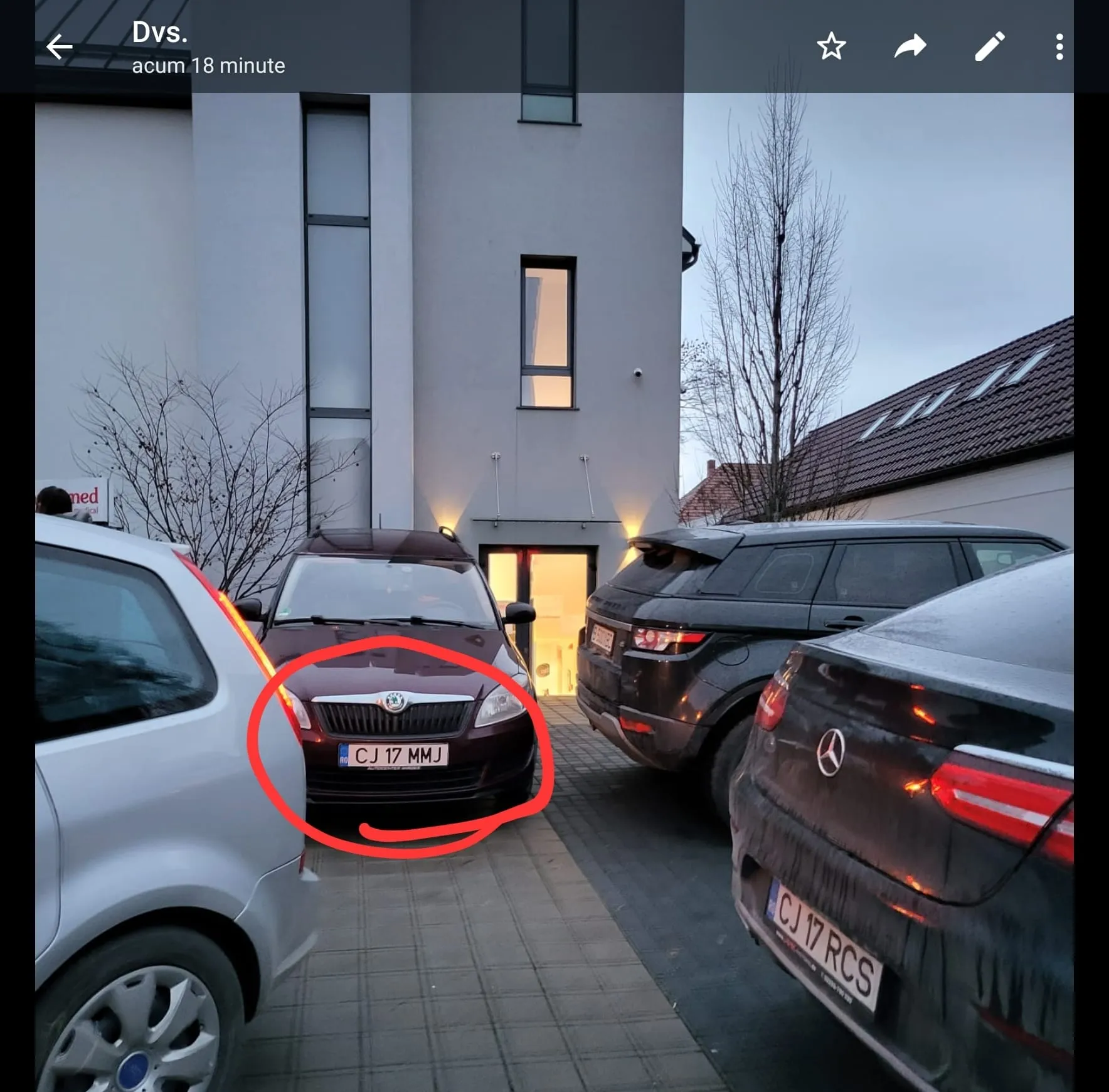Am revenit la mașină după cca 10 minute și aceasta era blocată deja de acea Skoda, care se pare, din spusele receptionerelor, ca ar aparține administratorului clinicii!