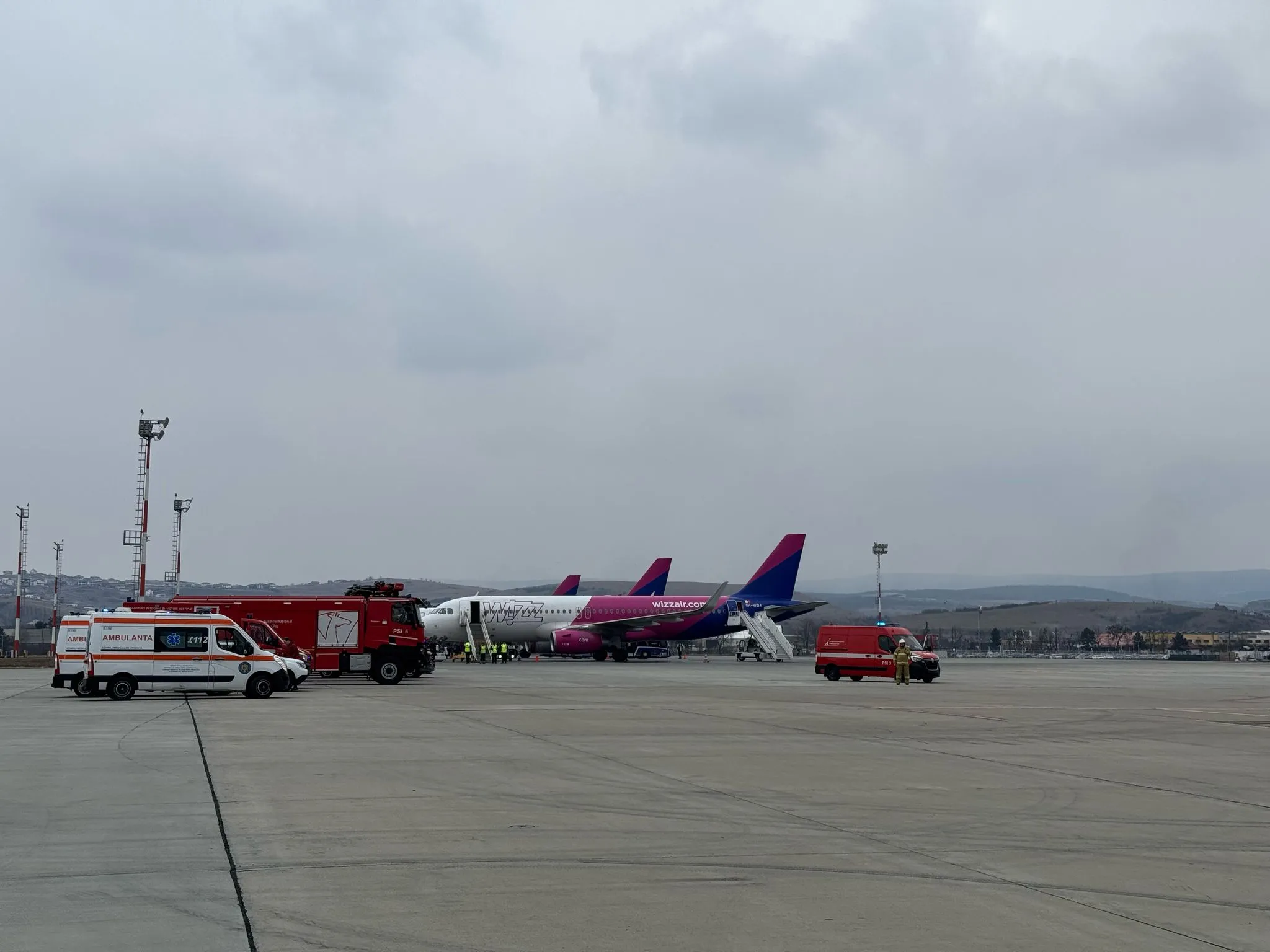 Precizăm că aeronava a aterizat în condiții de siguranță pe Aeroportul Internațional Cluj la ora 13:11, nefiind necesară intervenția pompierilor sau a medicilor de pe ambulanțele sosite la fața locului.