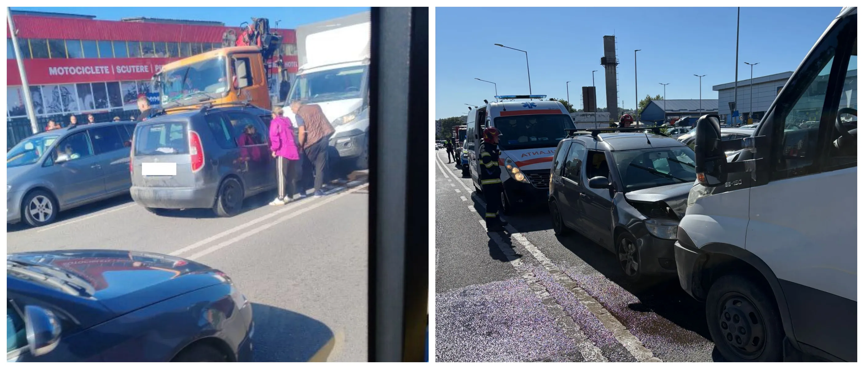 Accident pe Calea Baciului din Cluj-Napoca: Mașină și autoutilitară implicate, un bărbat dus la spital pentru investigații