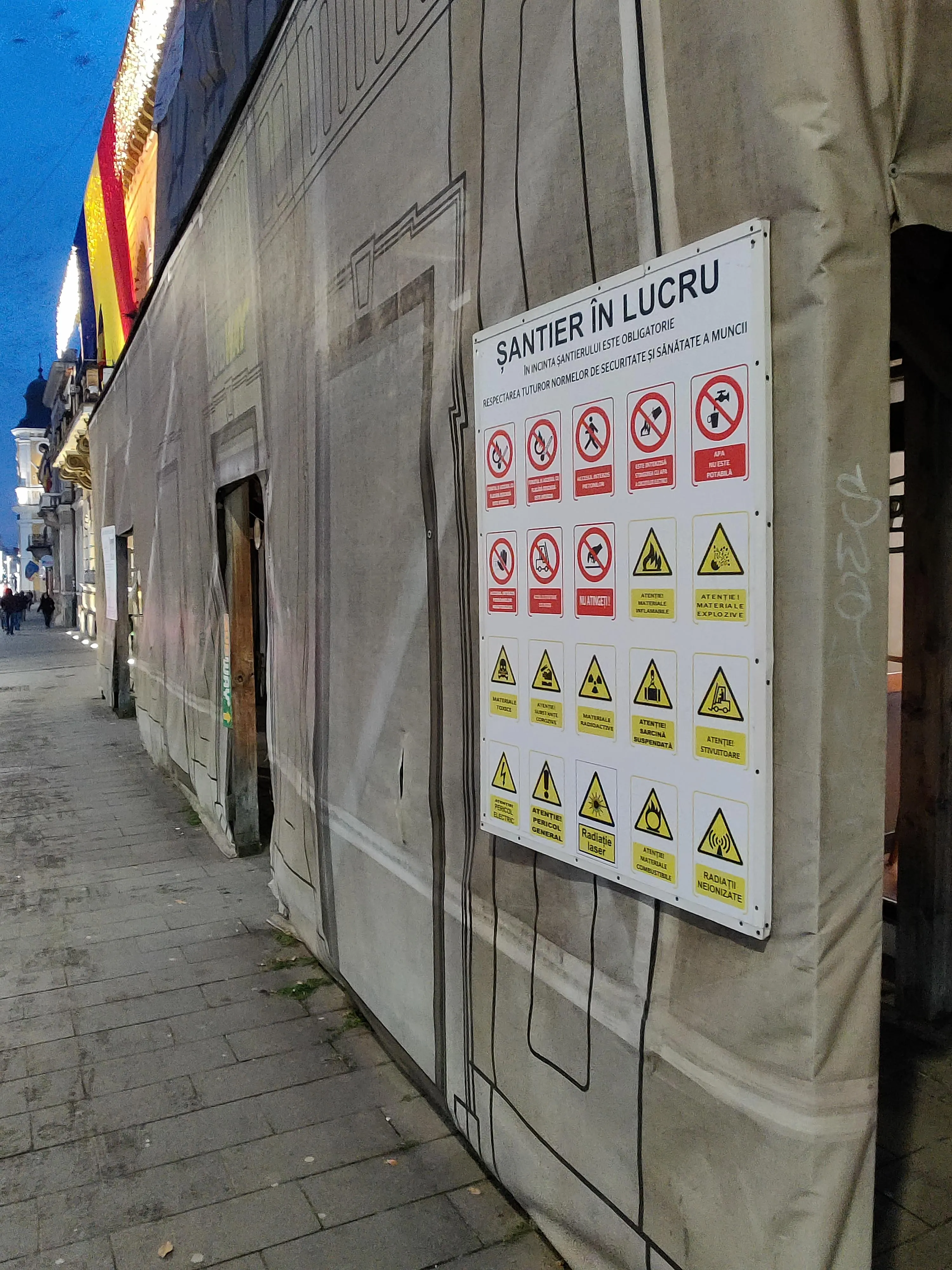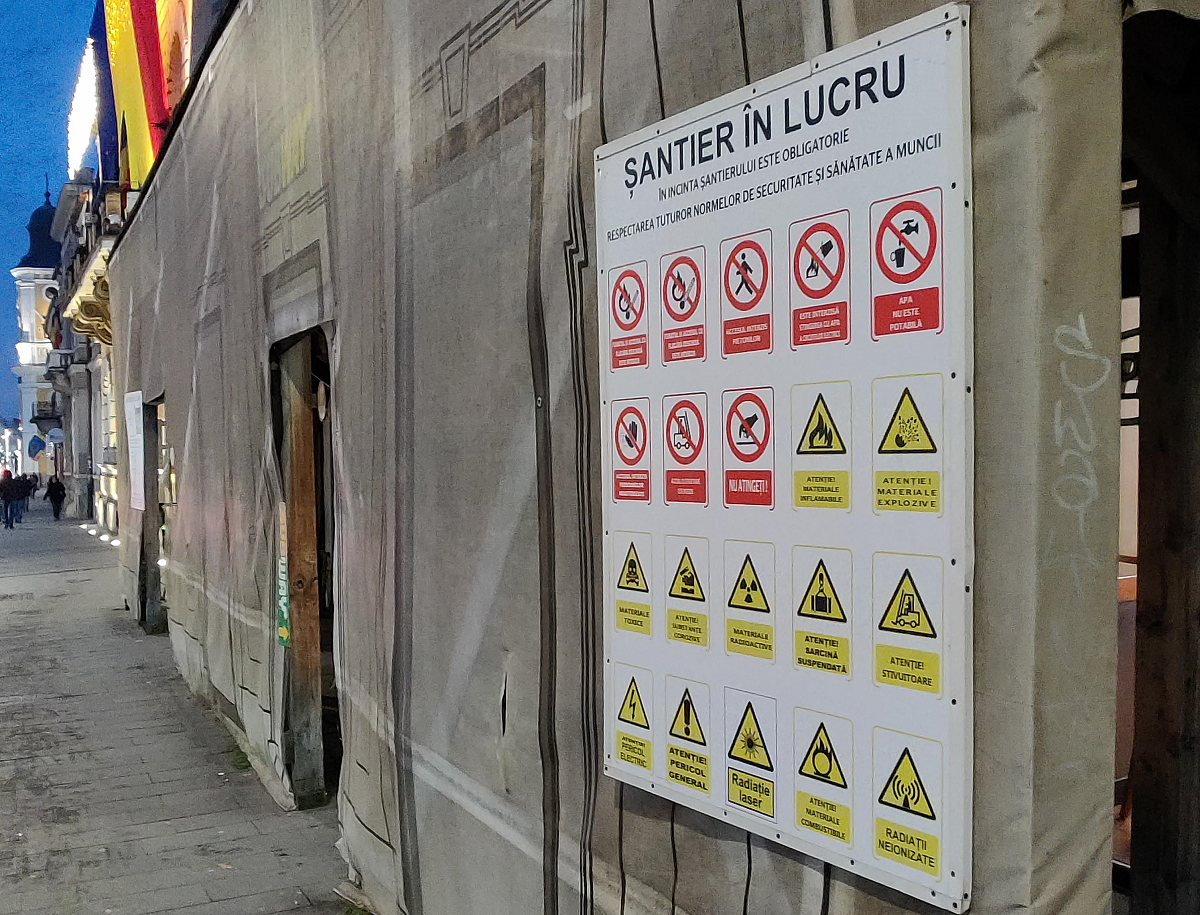 Panou ca în bancurile cu Bulă montat pe o clădire, care este reabilitată în Cluj-Napoca: Citiți cu atenție! - FOTO