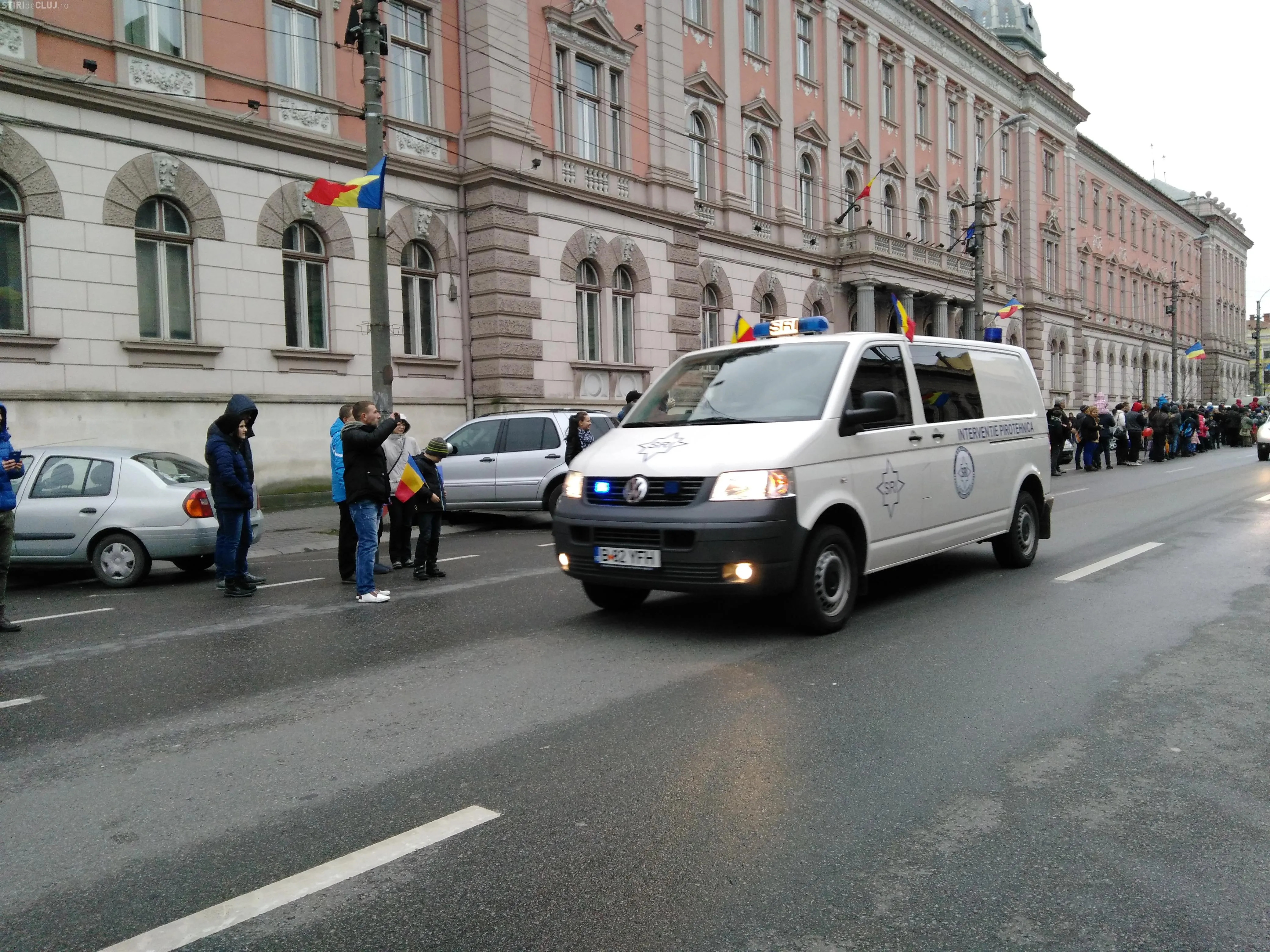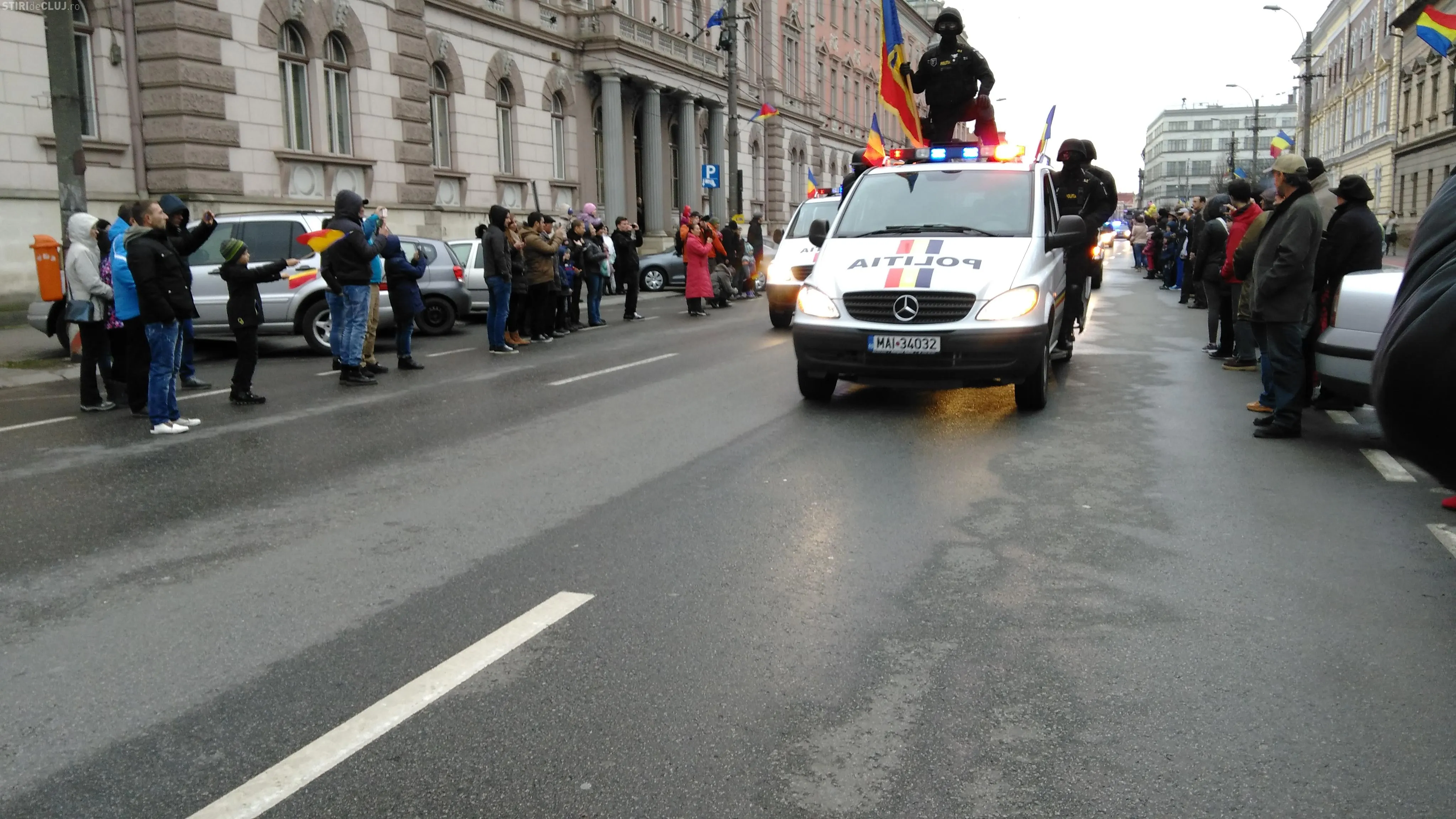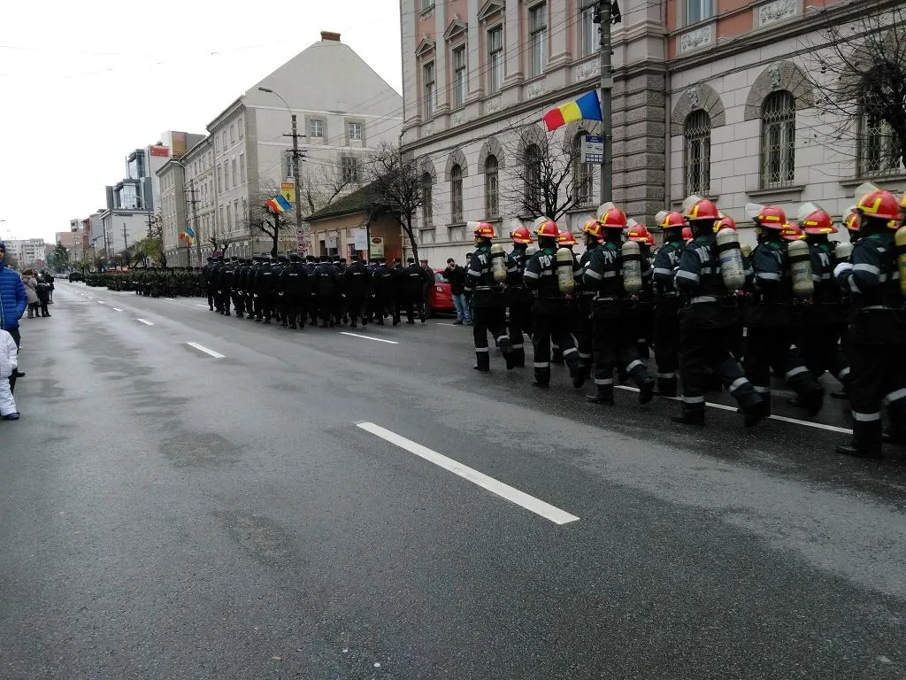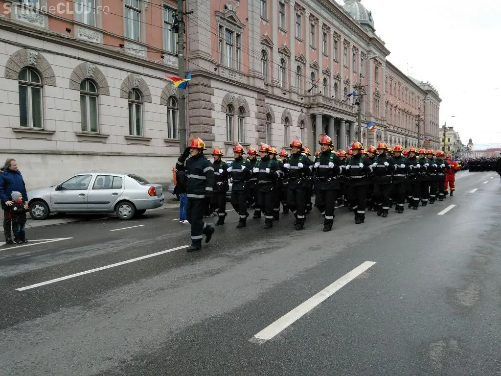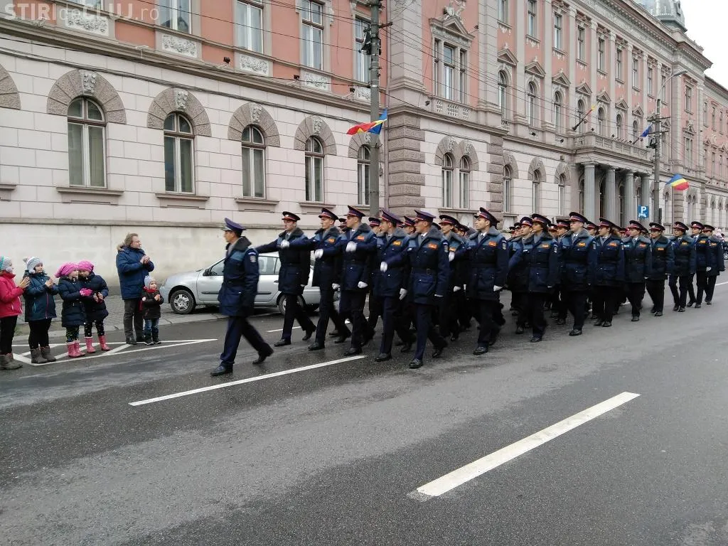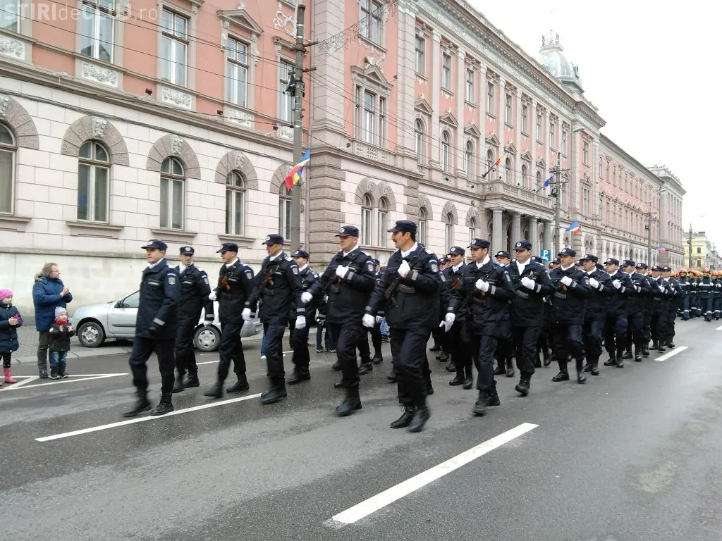 Astfel, aproximativ 550 de efective din cadrul Diviziei 4 Infanterie 'Gemina', Inspectoratului de Jandarmi Cluj, Gruparii de Jandarmi Mobila Cluj-Napoca, Inspectoratului de Politie Cluj, Inspectoratului pentru Situatii de Urgenta Cluj, Scolii de Agenti de Politie ”Septimiu Muresan”, Serviciului Roman de Informatii Cluj, din Crucea Rosie Romana si Politia Locala Cluj-Napoca, cu 51 de mijloace tehnice au participat la parada organizata de 1 Decembrie.