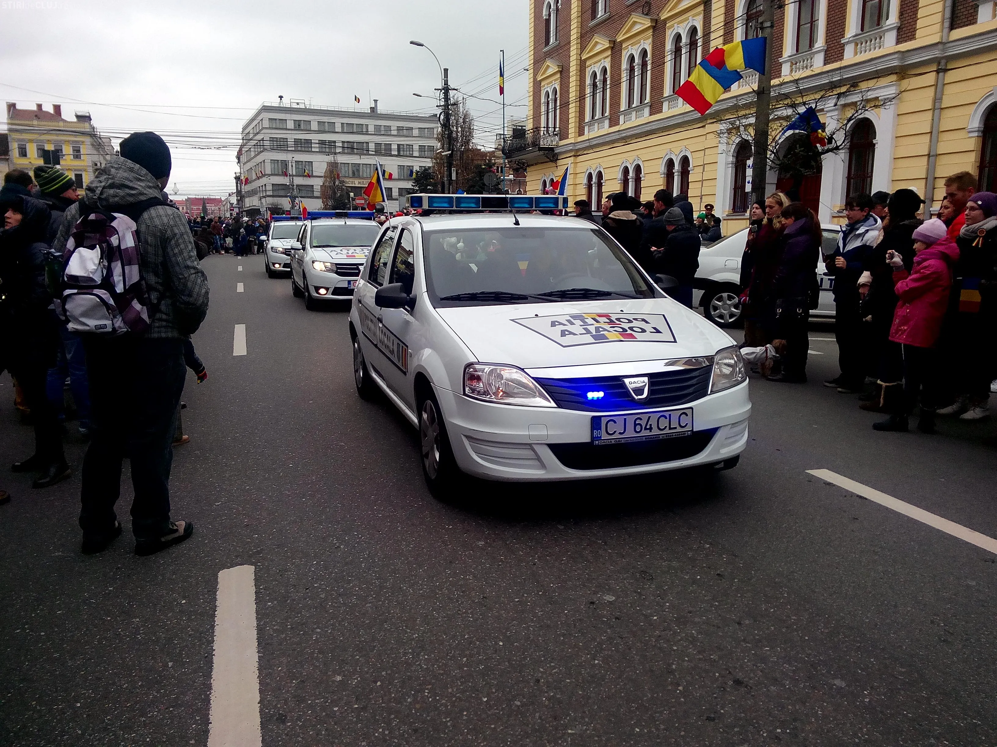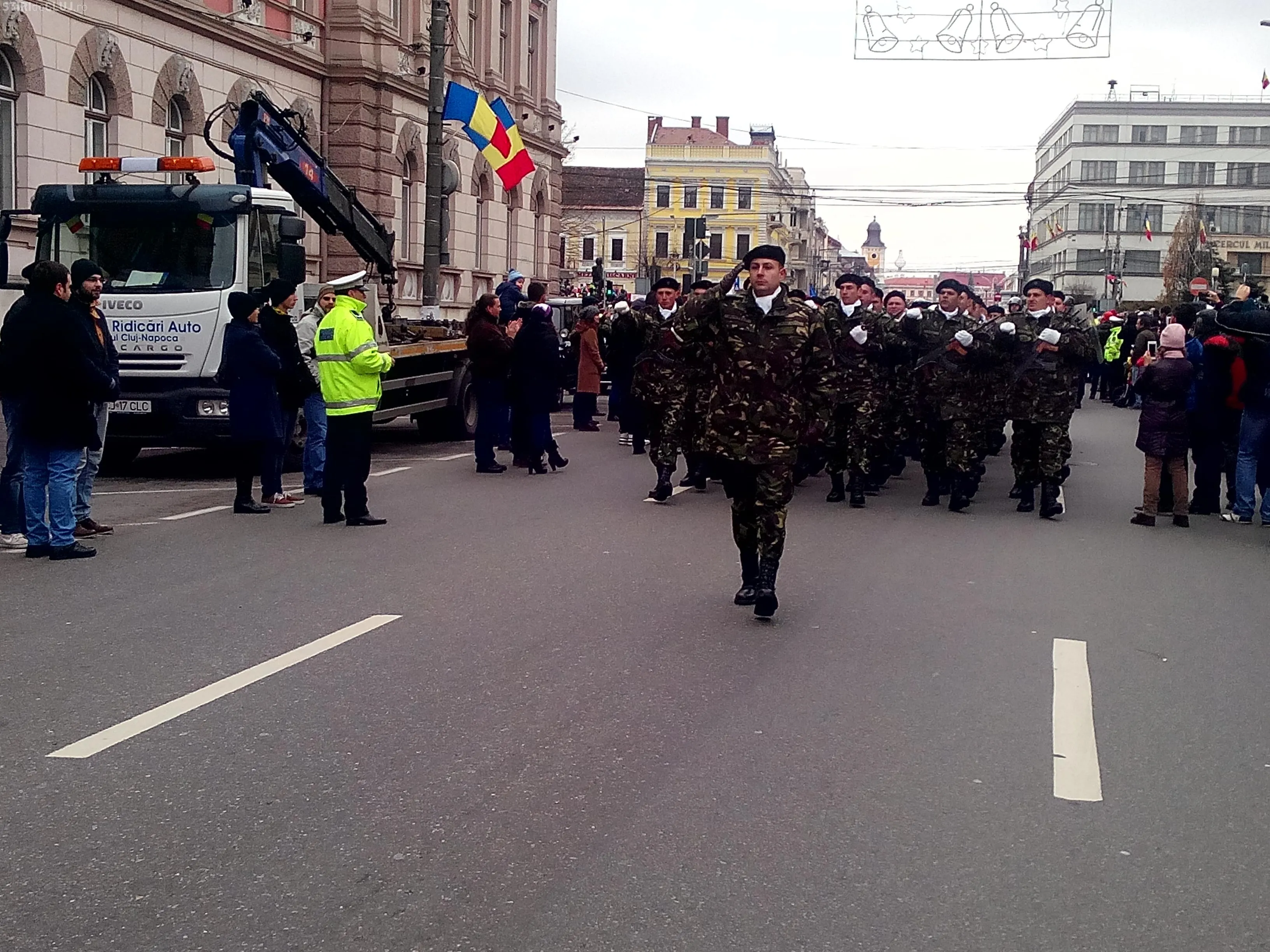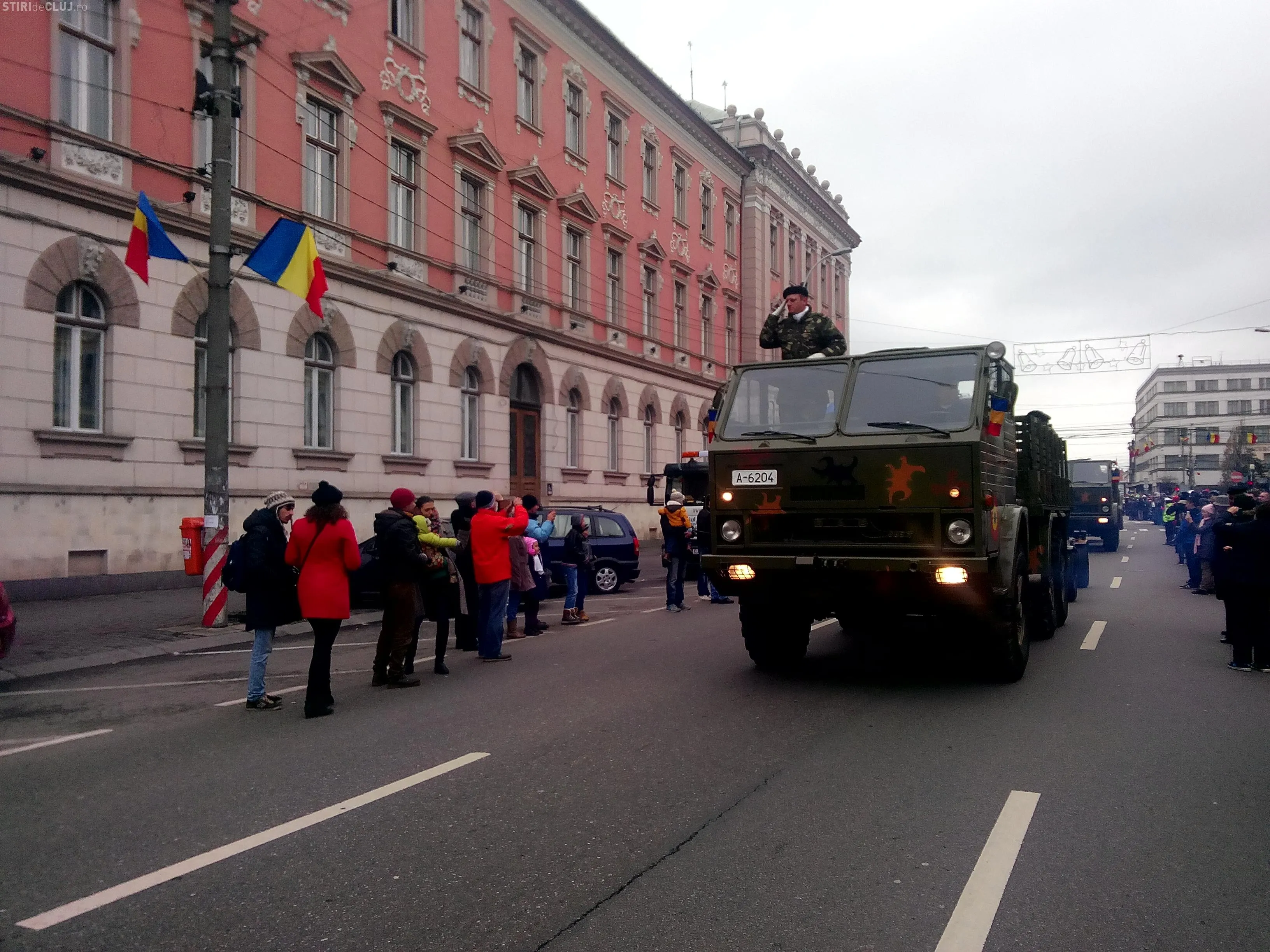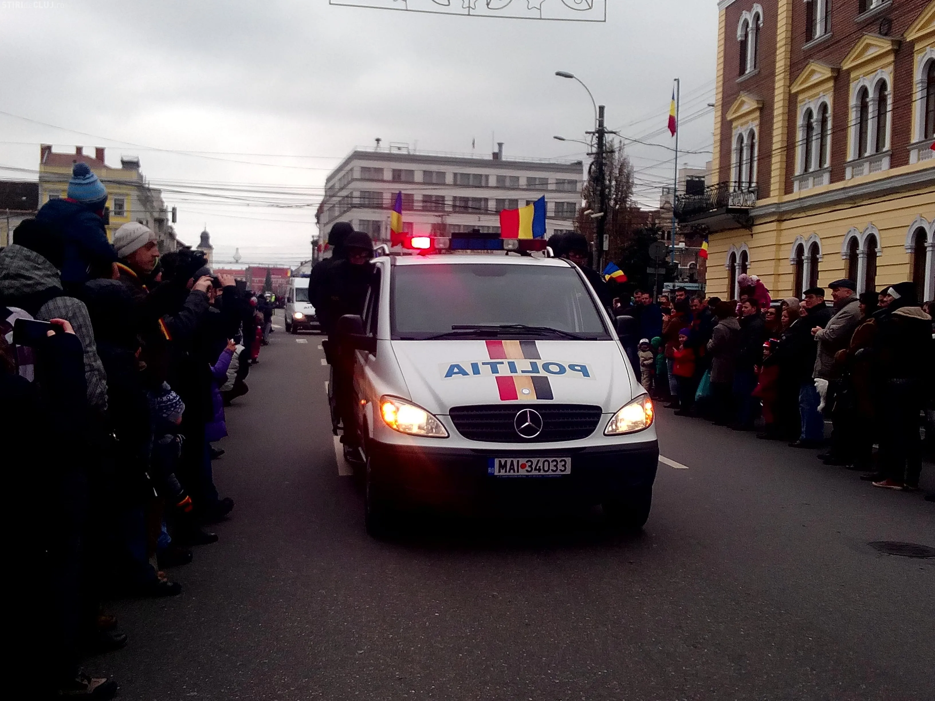 Aproximativ 580 de efective din cadrul Diviziei 4 Infanterie „Gemina”, Inspectoratului de Jandarmi Cluj, Inspectoratului de Poliţie Cluj, Inspectoratului pentru Situaţii de Urgenţă Cluj, Şcolii de Agenţi de Poliţie „Septimiu Mureşan”, Serviciului Român de Informaţii Cluj, din Crucea Roşie Română şi Poliţia Locală Cluj-Napoca, cu aproximativ 40 de mijloace tehnice au participat la parada organizată la Cluj-Napoca pentru a marca Ziua Naţională a României.