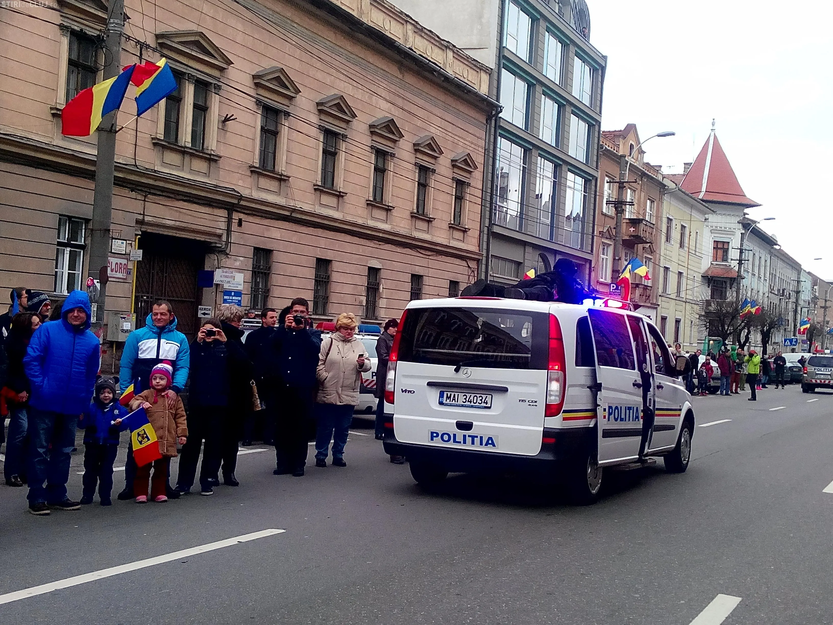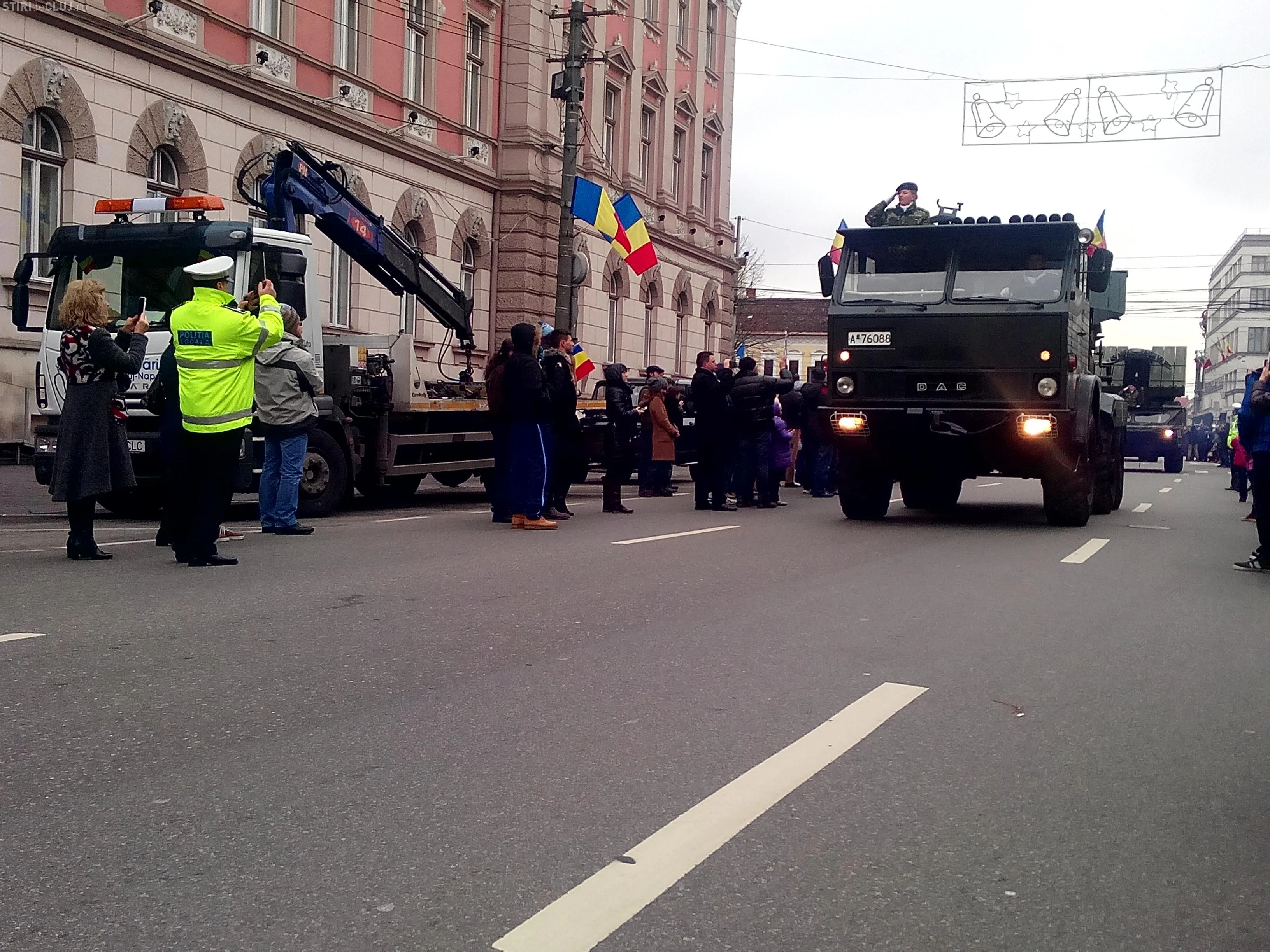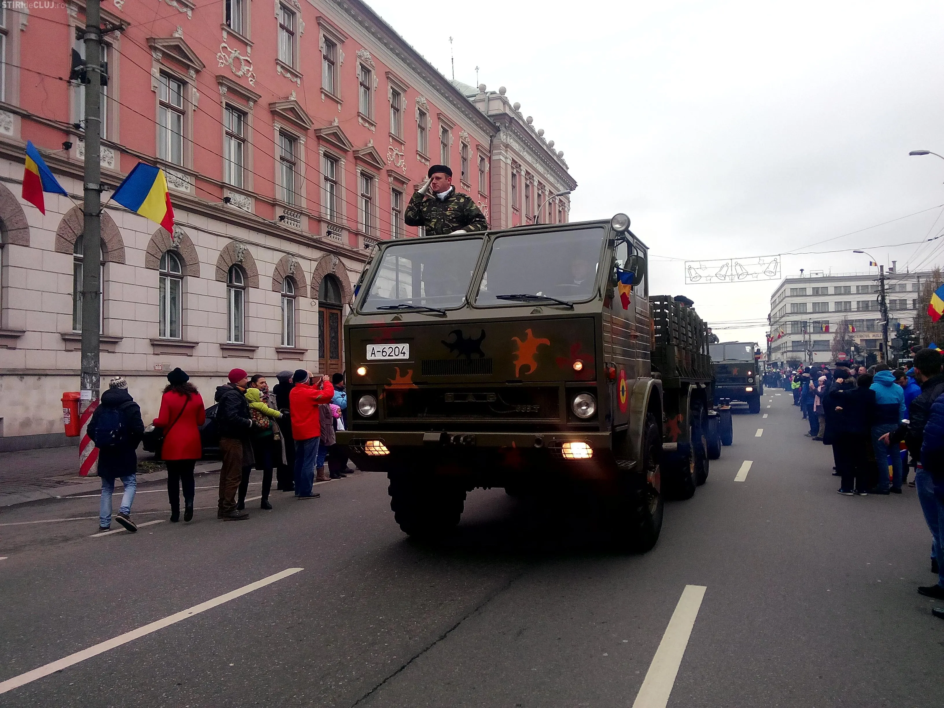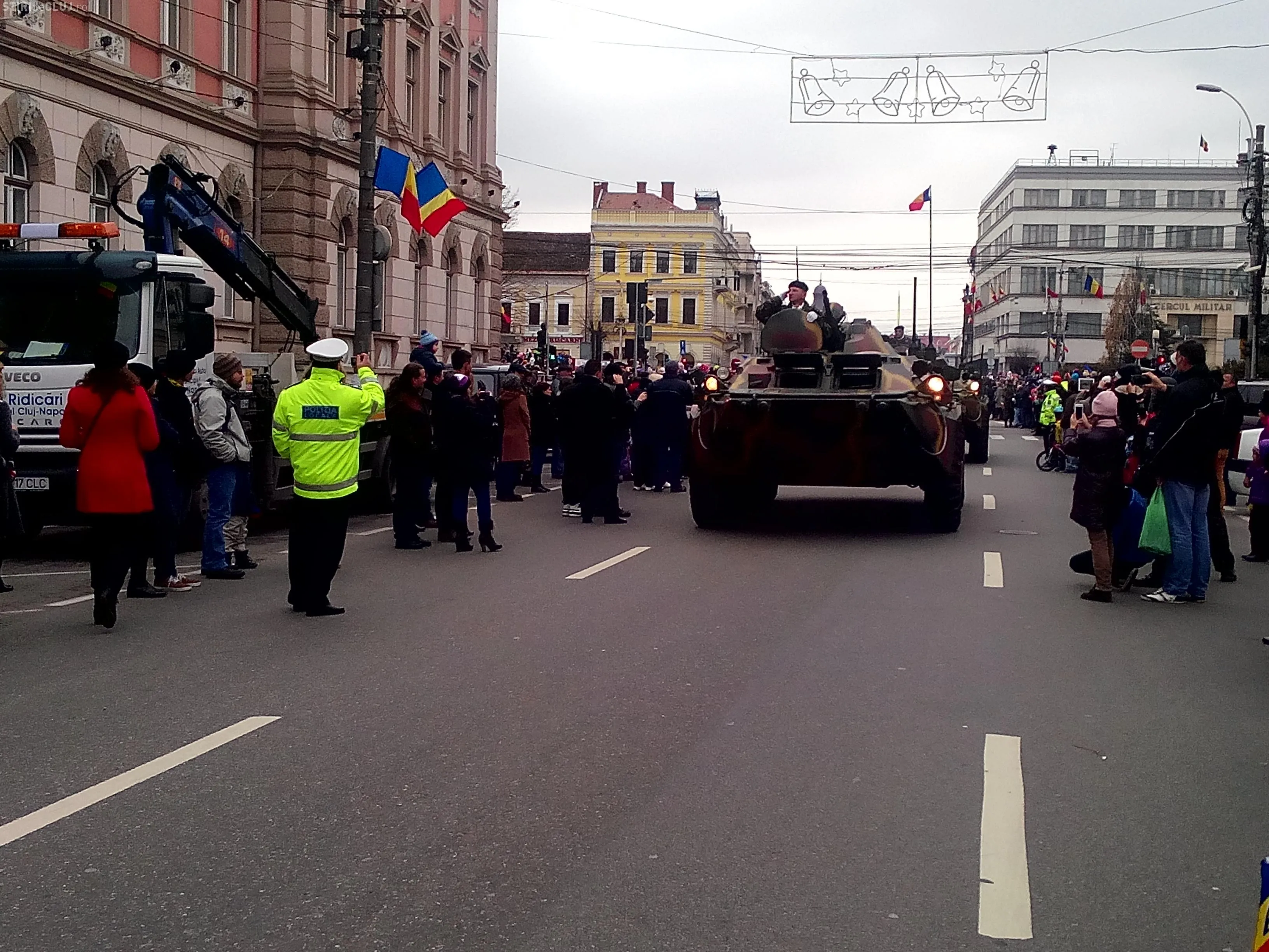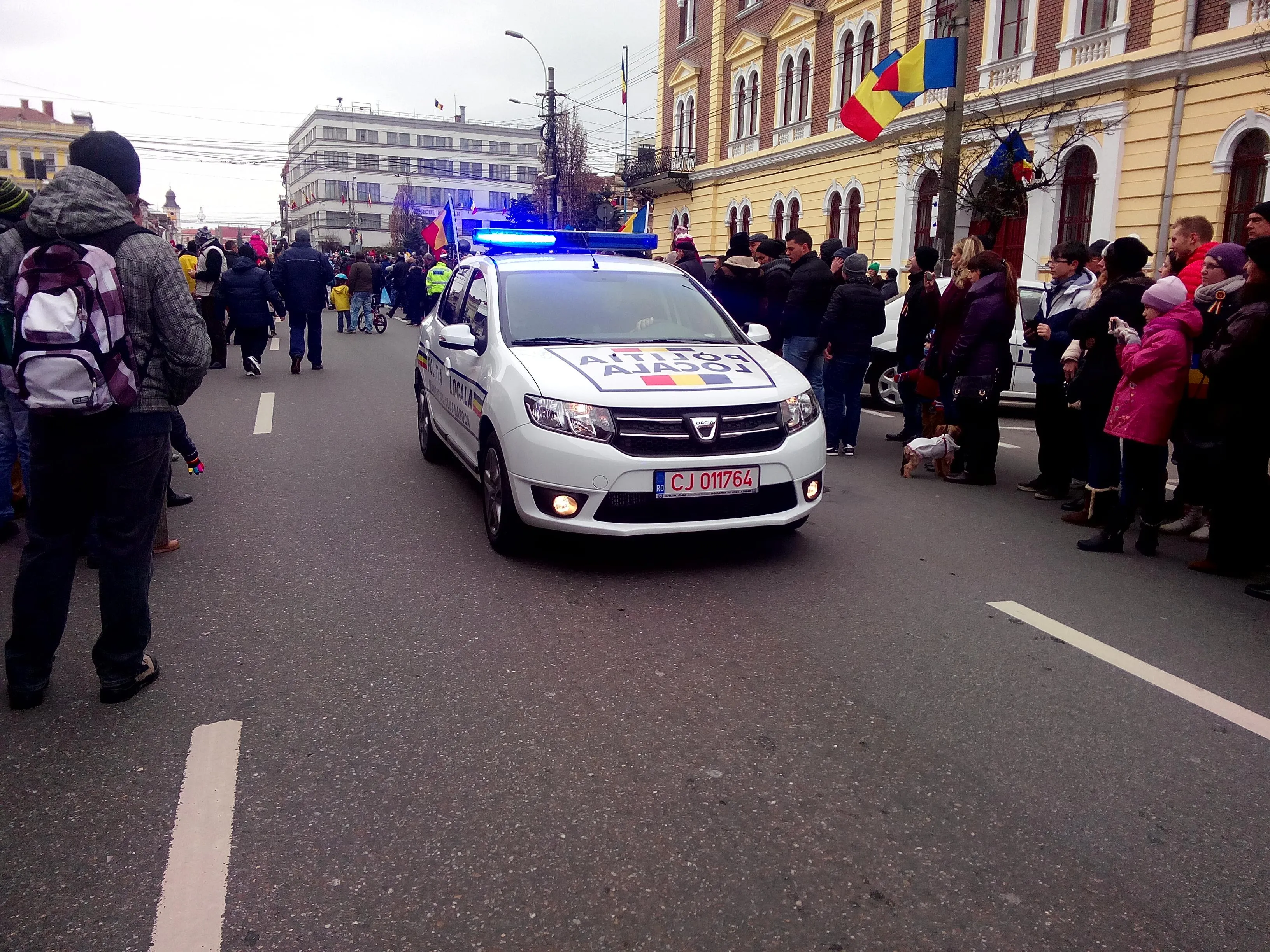 Aproximativ 580 de efective din cadrul Diviziei 4 Infanterie „Gemina”, Inspectoratului de Jandarmi Cluj, Inspectoratului de Poliţie Cluj, Inspectoratului pentru Situaţii de Urgenţă Cluj, Şcolii de Agenţi de Poliţie „Septimiu Mureşan”, Serviciului Român de Informaţii Cluj, din Crucea Roşie Română şi Poliţia Locală Cluj-Napoca, cu aproximativ 40 de mijloace tehnice au participat la parada organizată la Cluj-Napoca pentru a marca Ziua Naţională a României.