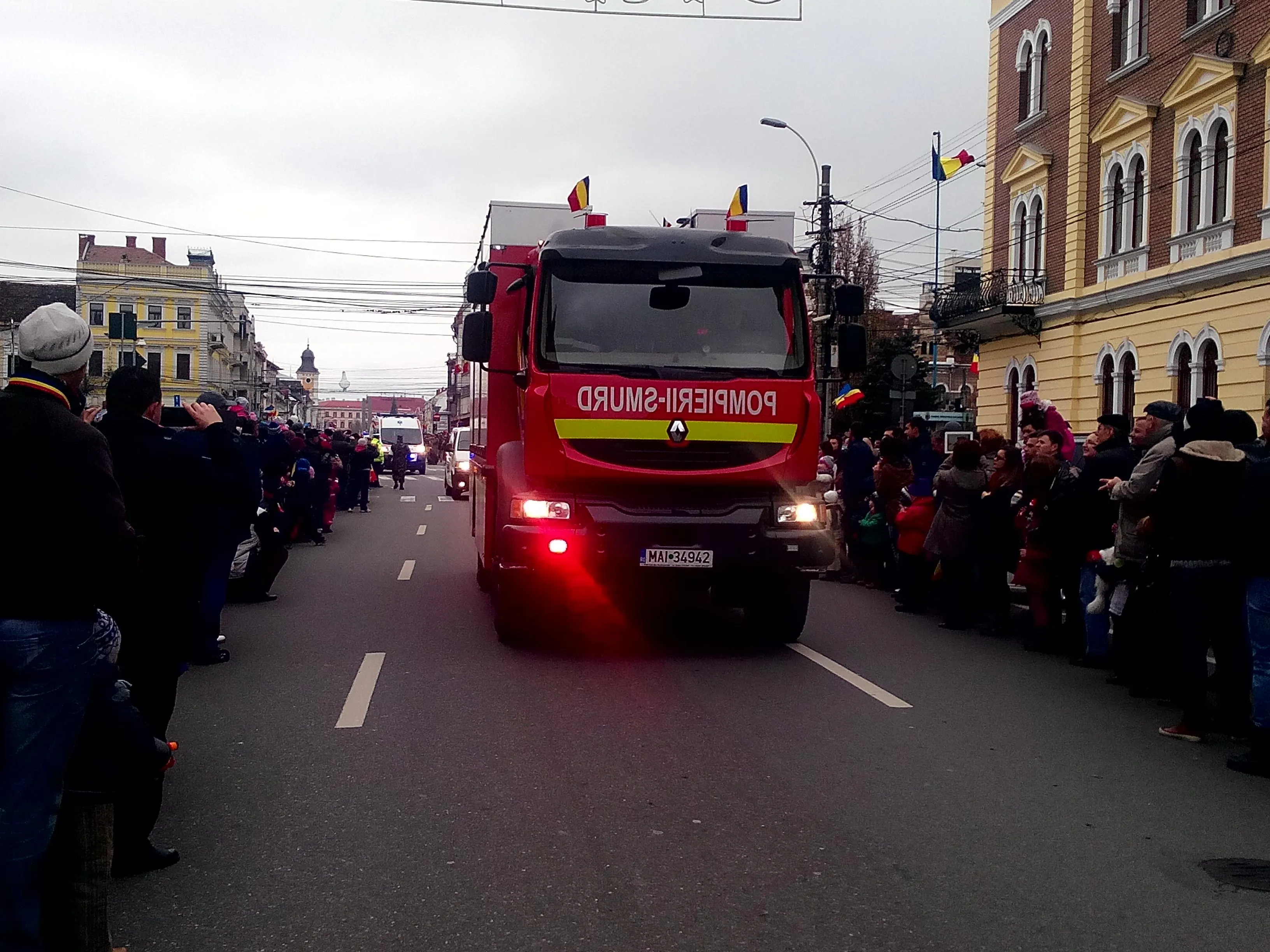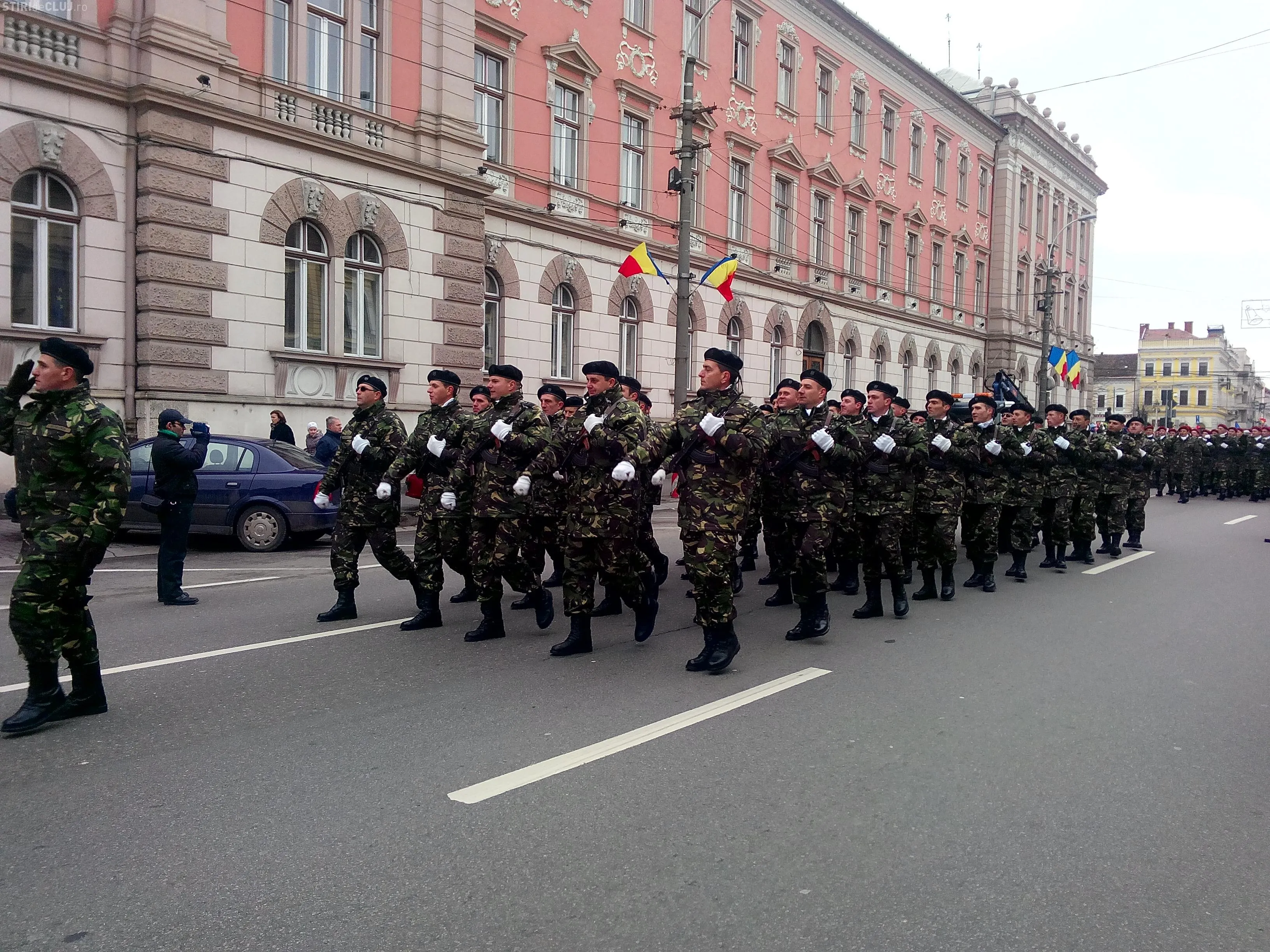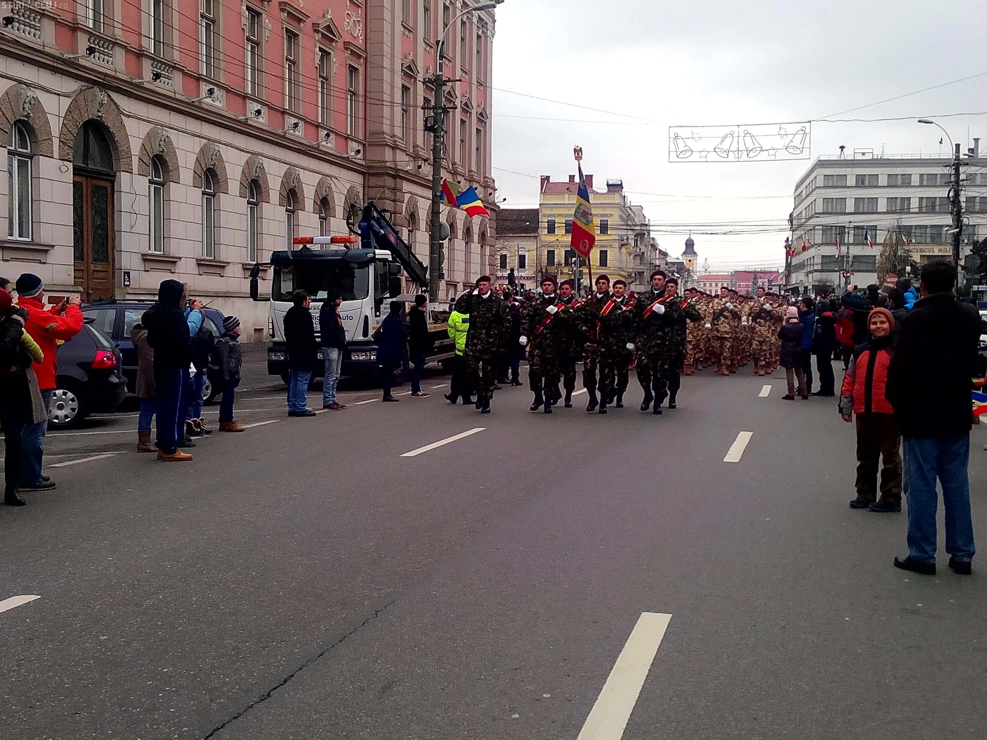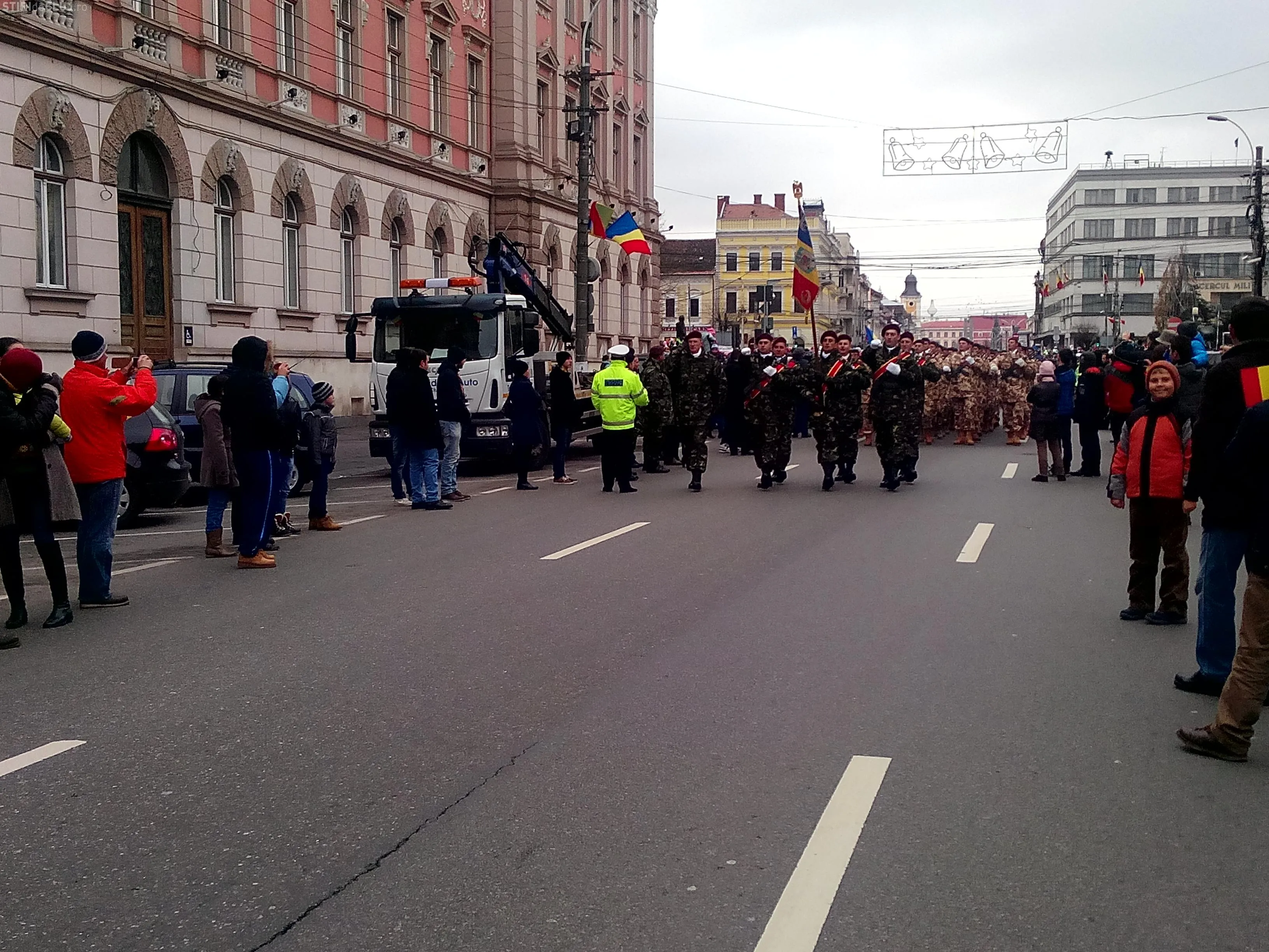 Aproximativ 580 de efective din cadrul Diviziei 4 Infanterie „Gemina”, Inspectoratului de Jandarmi Cluj, Inspectoratului de Poliţie Cluj, Inspectoratului pentru Situaţii de Urgenţă Cluj, Şcolii de Agenţi de Poliţie „Septimiu Mureşan”, Serviciului Român de Informaţii Cluj, din Crucea Roşie Română şi Poliţia Locală Cluj-Napoca, cu aproximativ 40 de mijloace tehnice au participat la parada organizată la Cluj-Napoca pentru a marca Ziua Naţională a României.