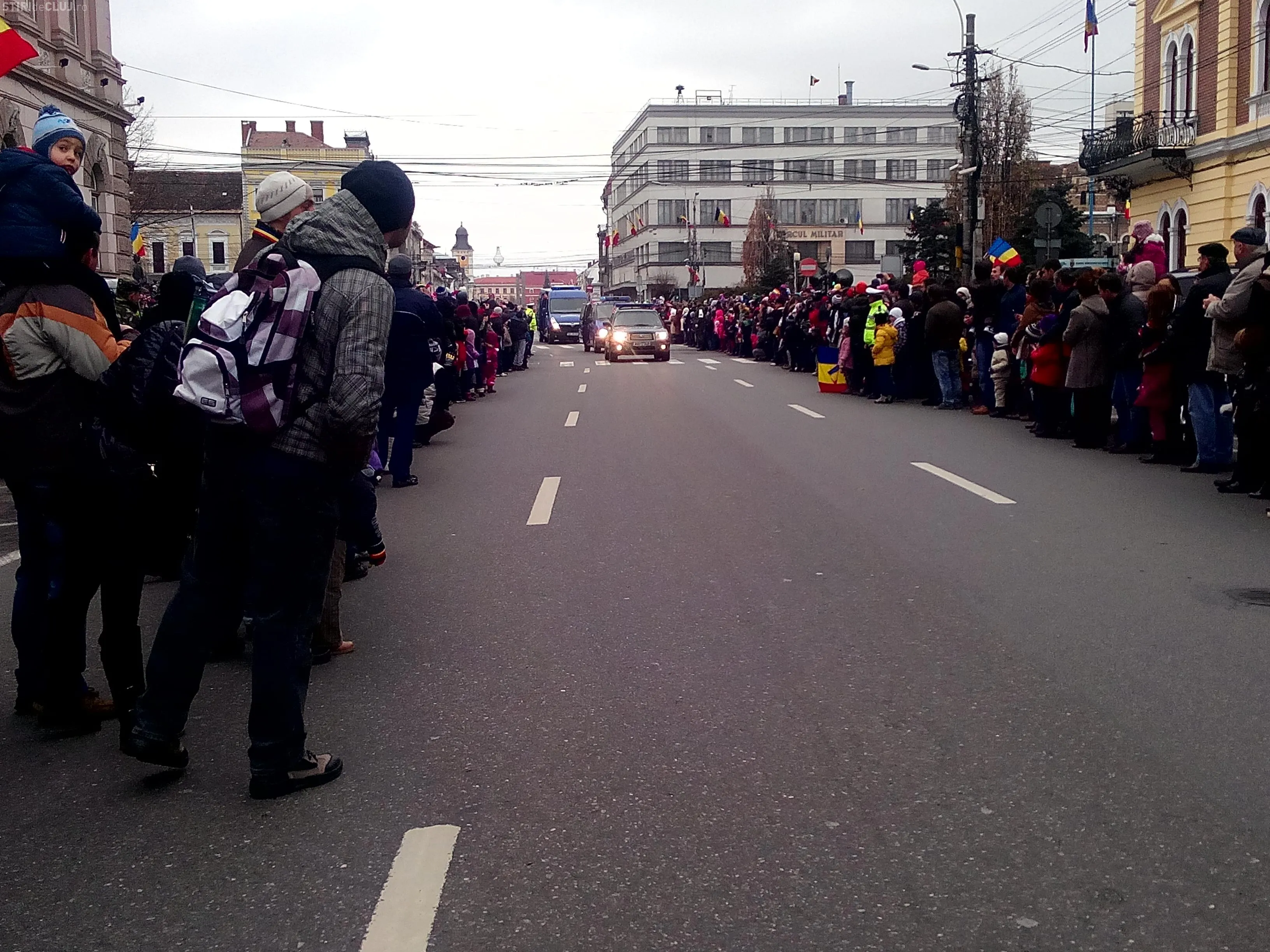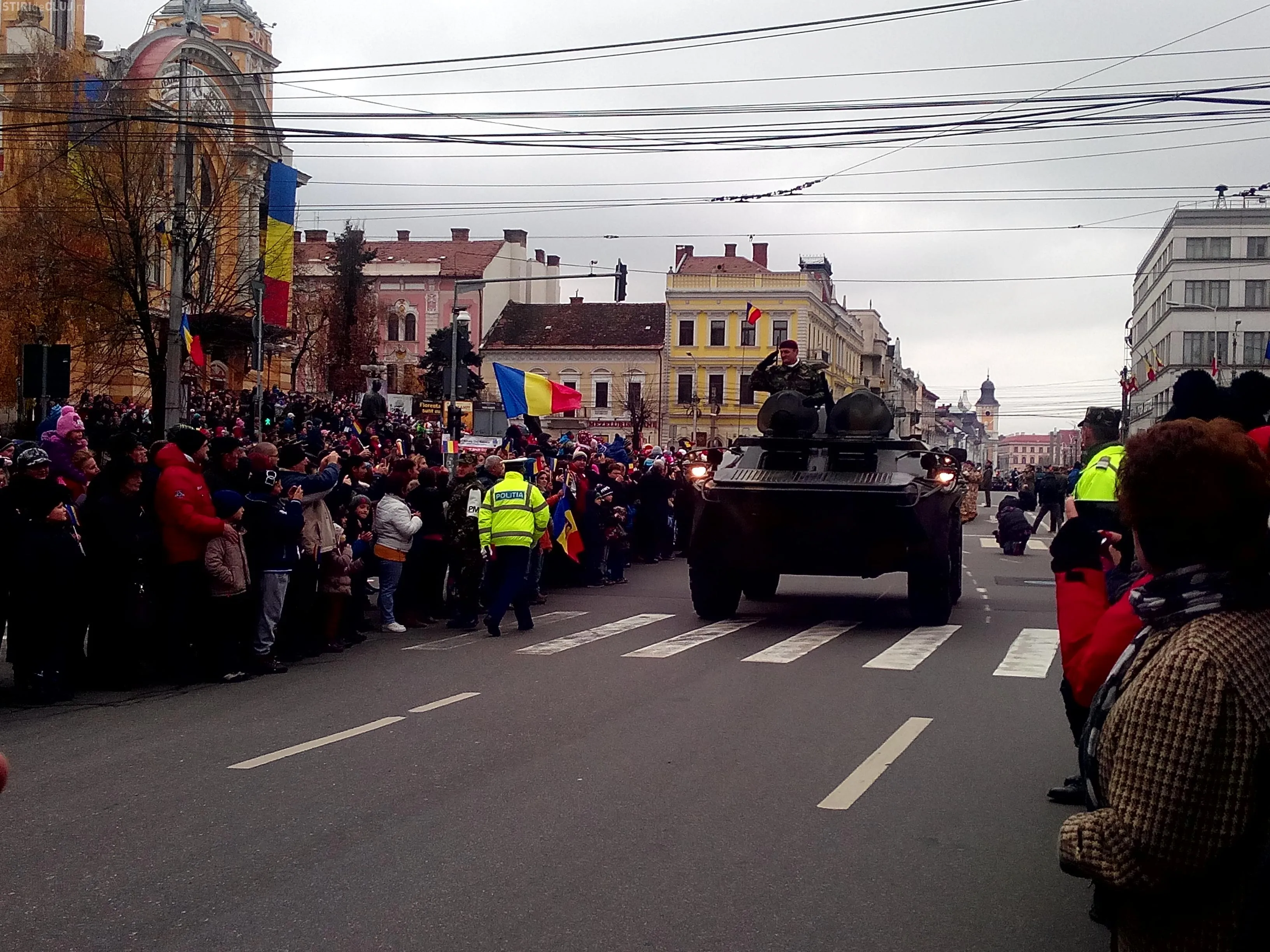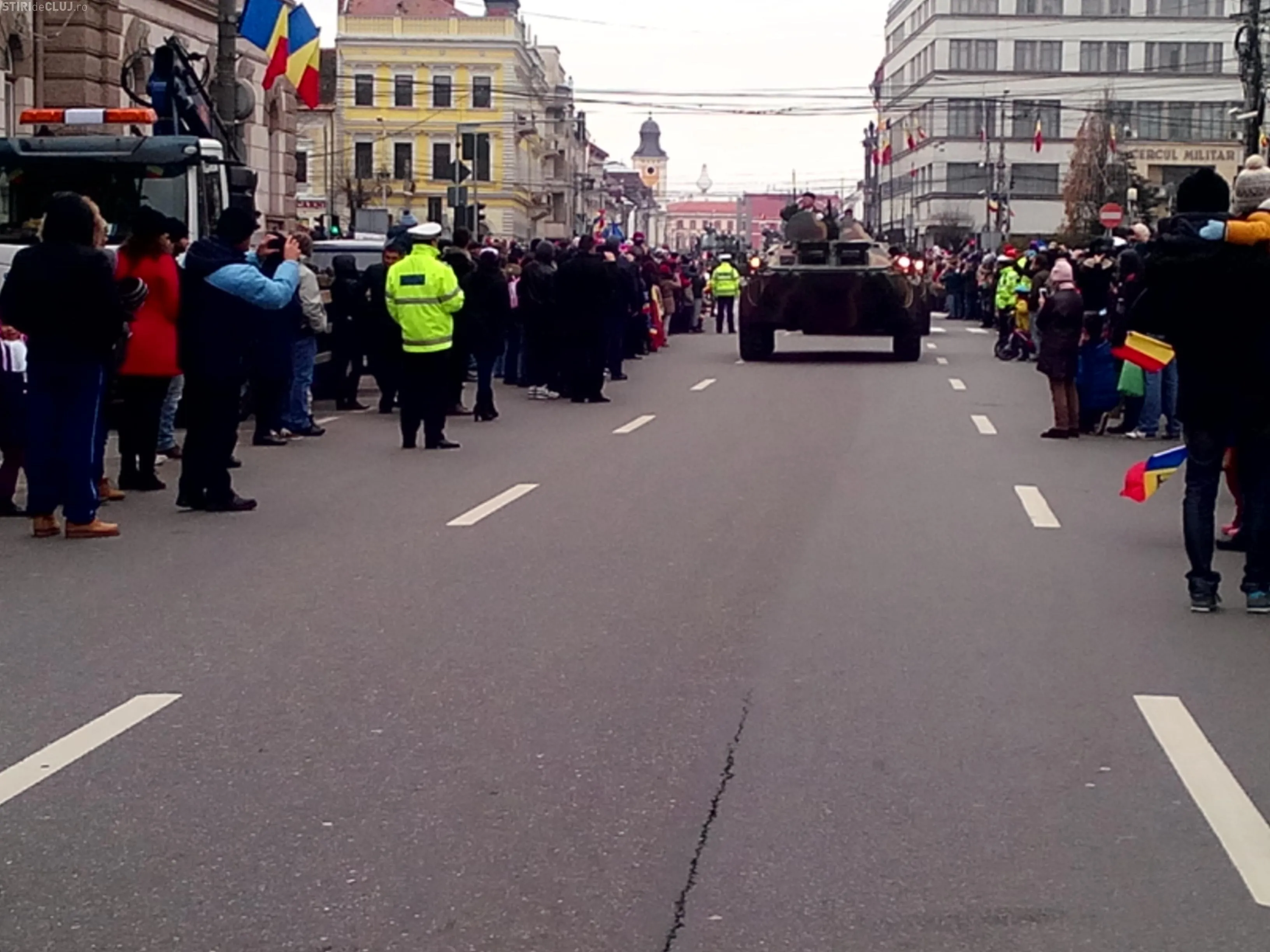 Mii de clujeni s-au înghesuit, luni dimineața în Piața Avram Iancu din Cluj-Napoca pentru a vedea parada militară de Ziua Națională.