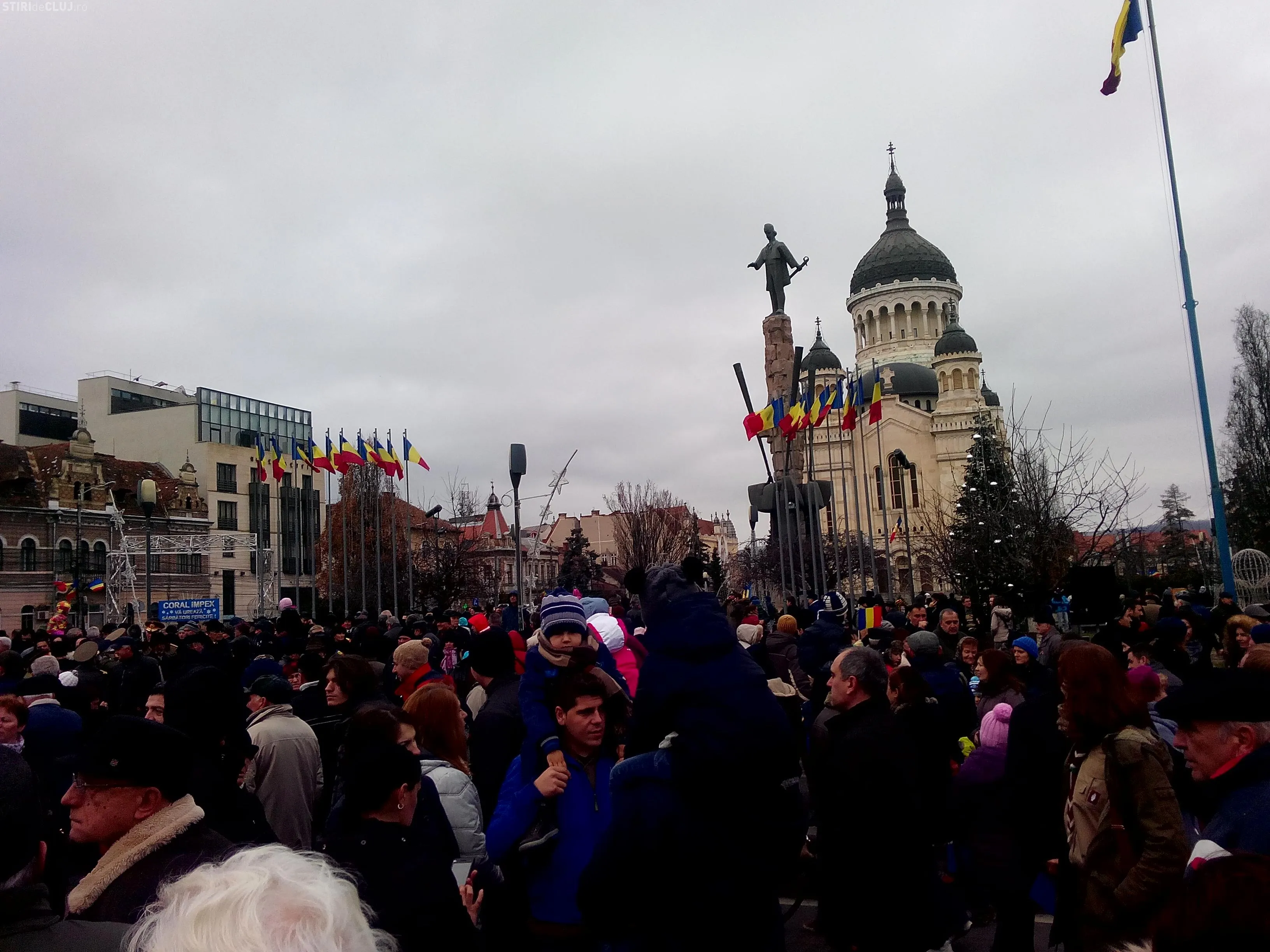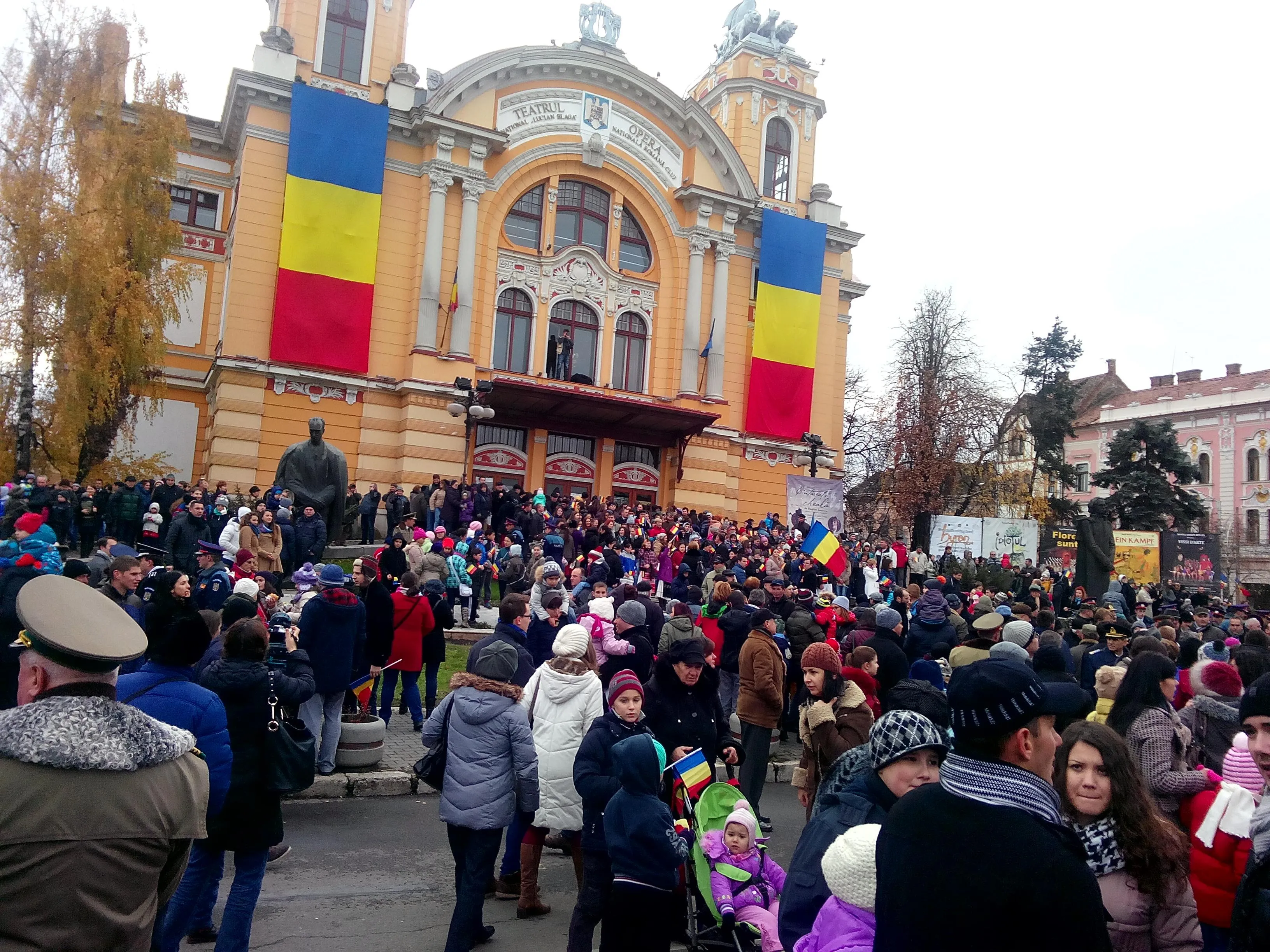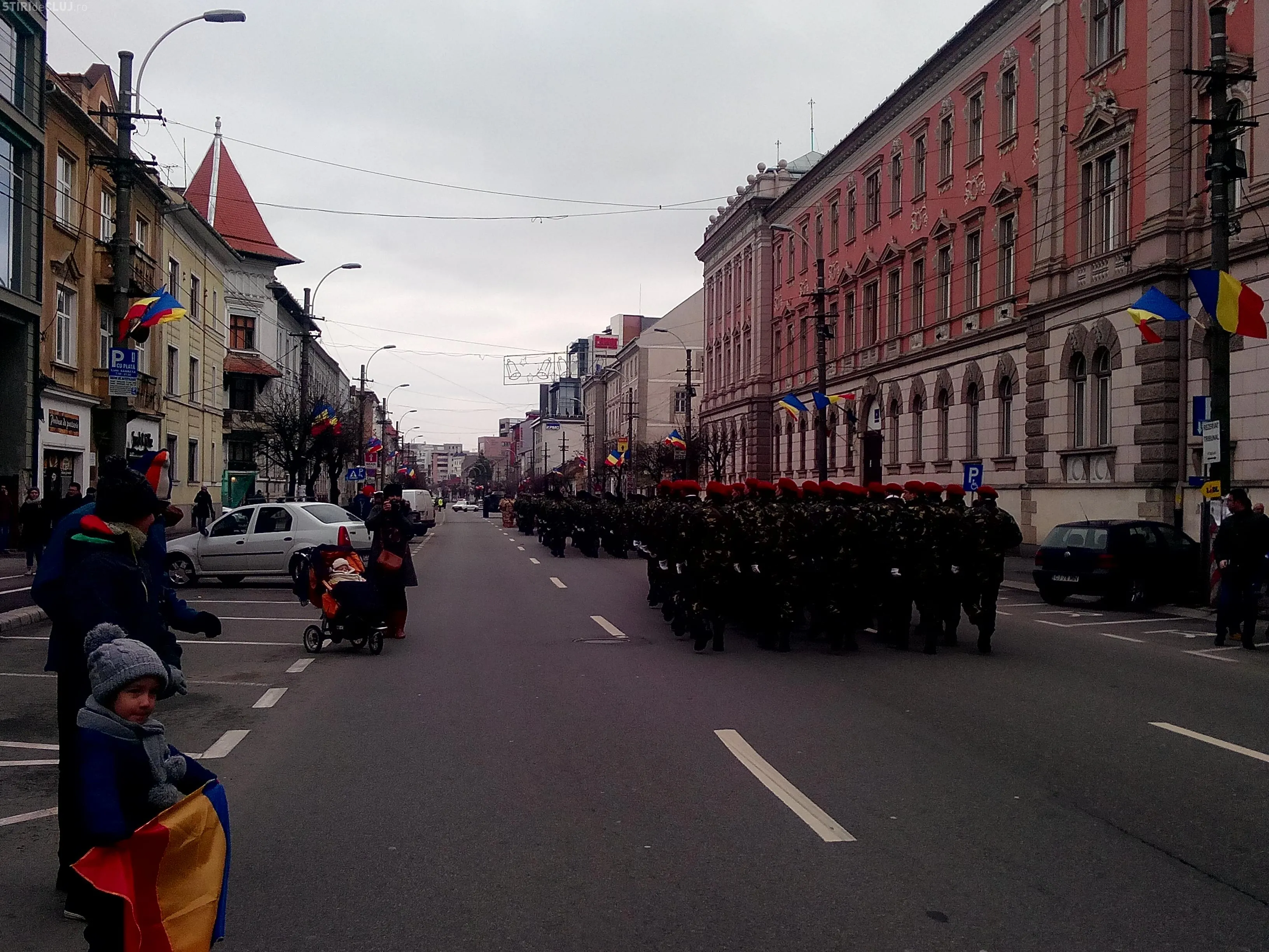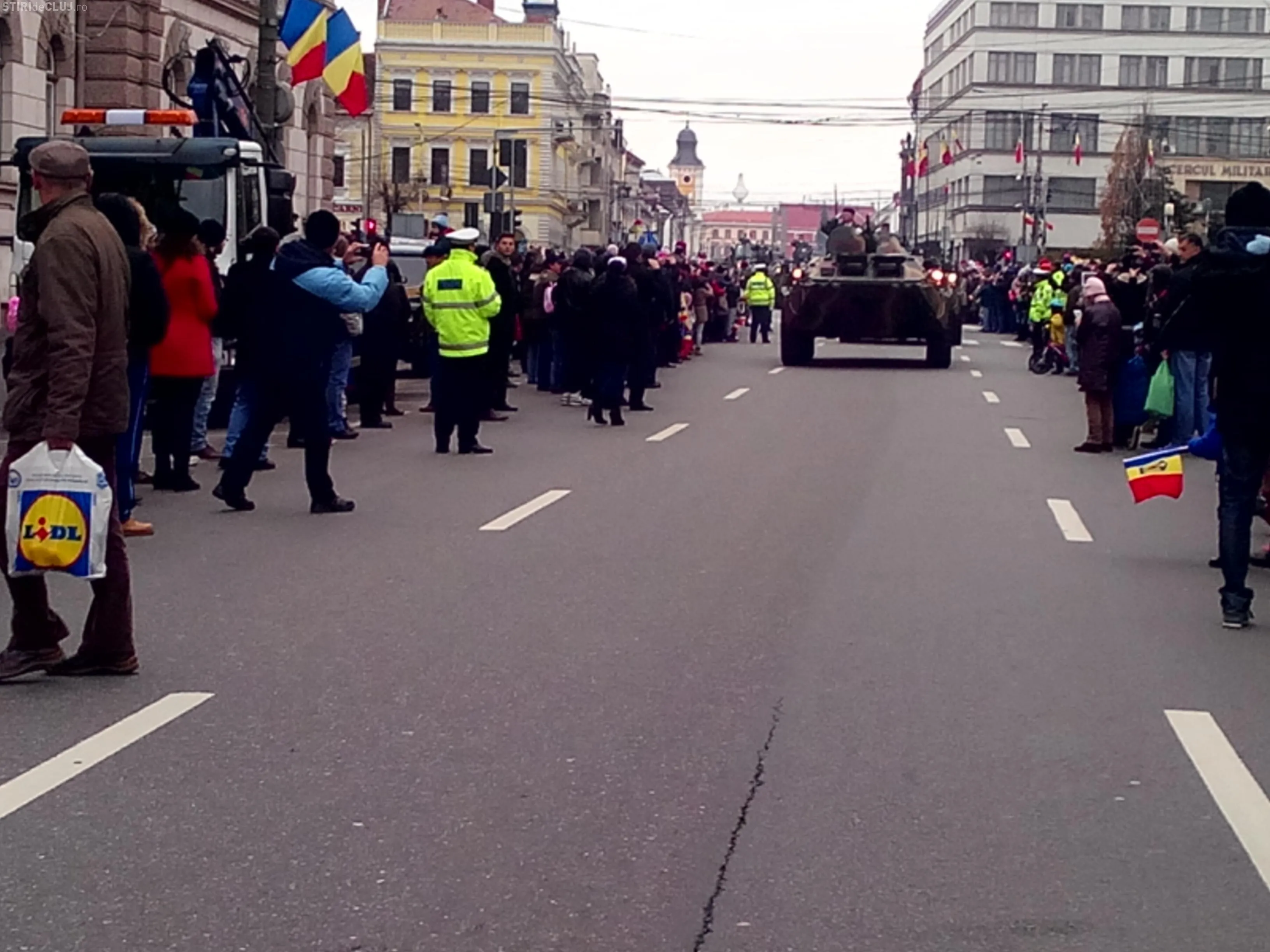 Mii de clujeni s-au înghesuit, luni dimineața în Piața Avram Iancu din Cluj-Napoca pentru a vedea parada militară de Ziua Națională.
