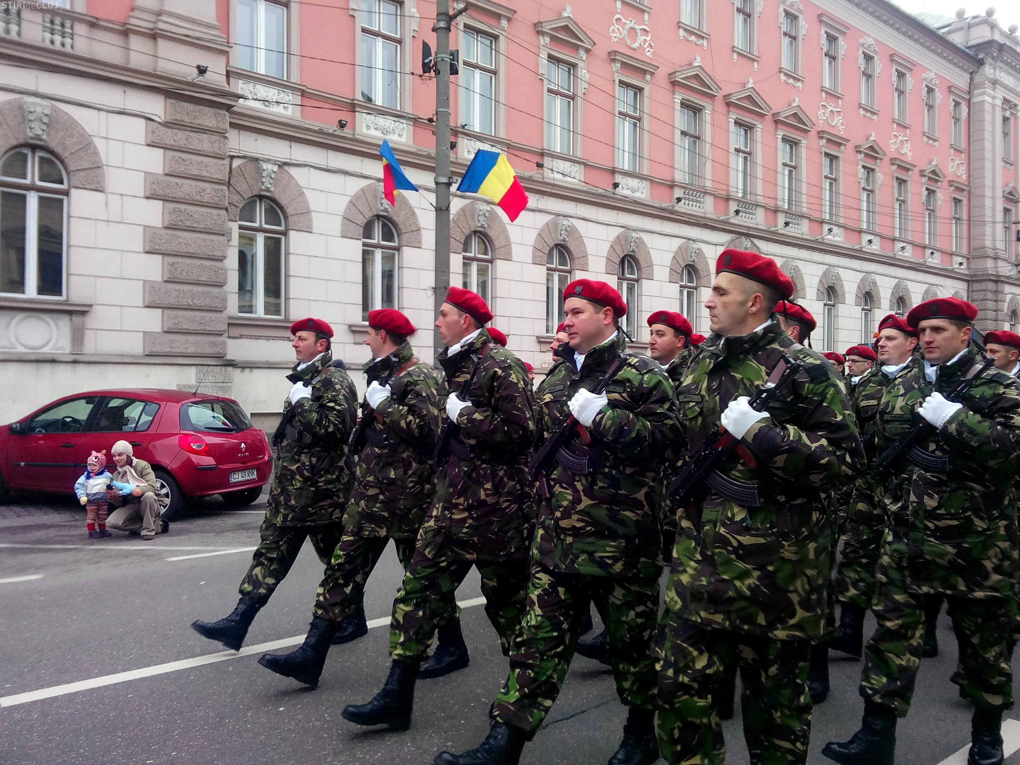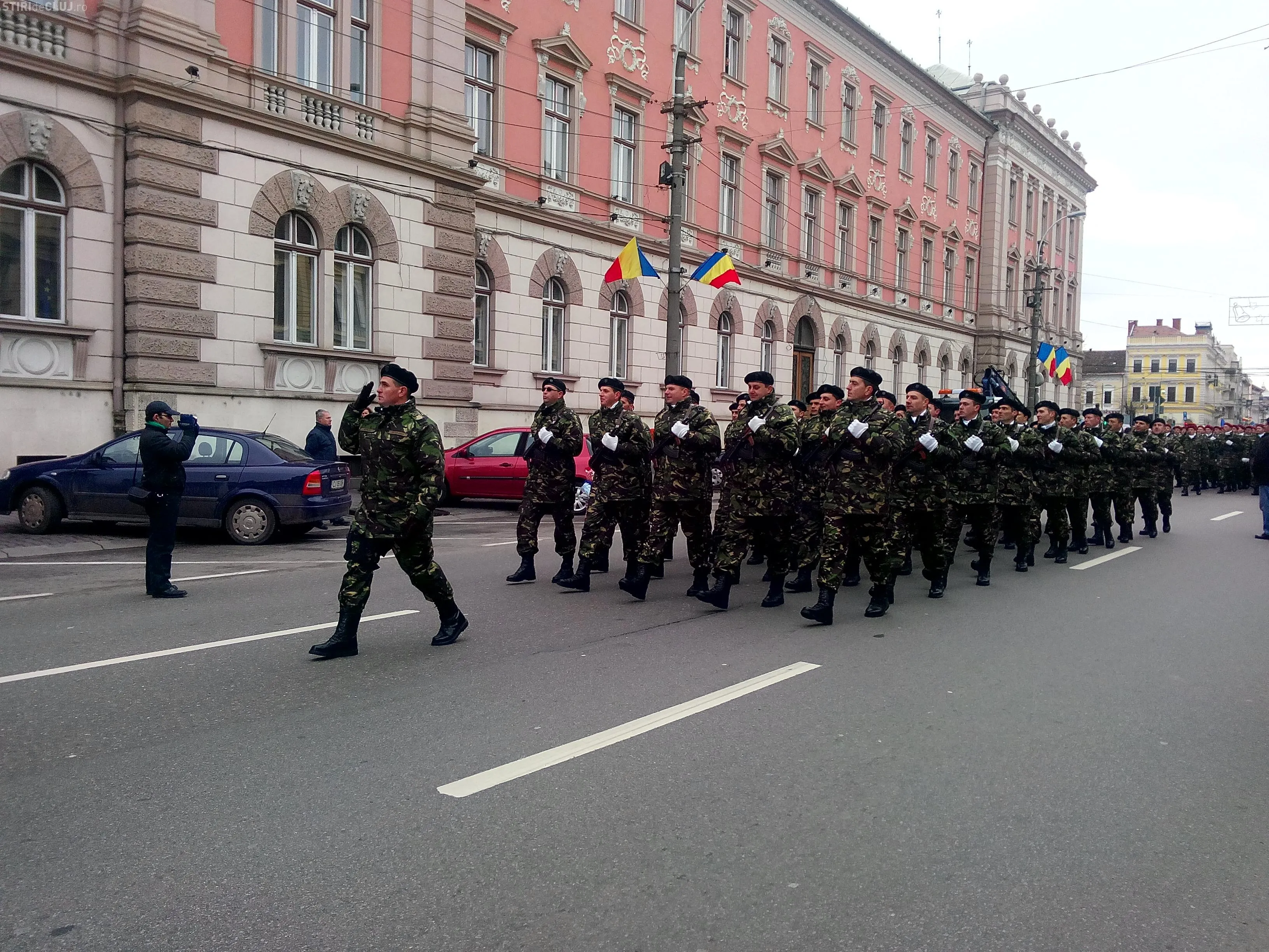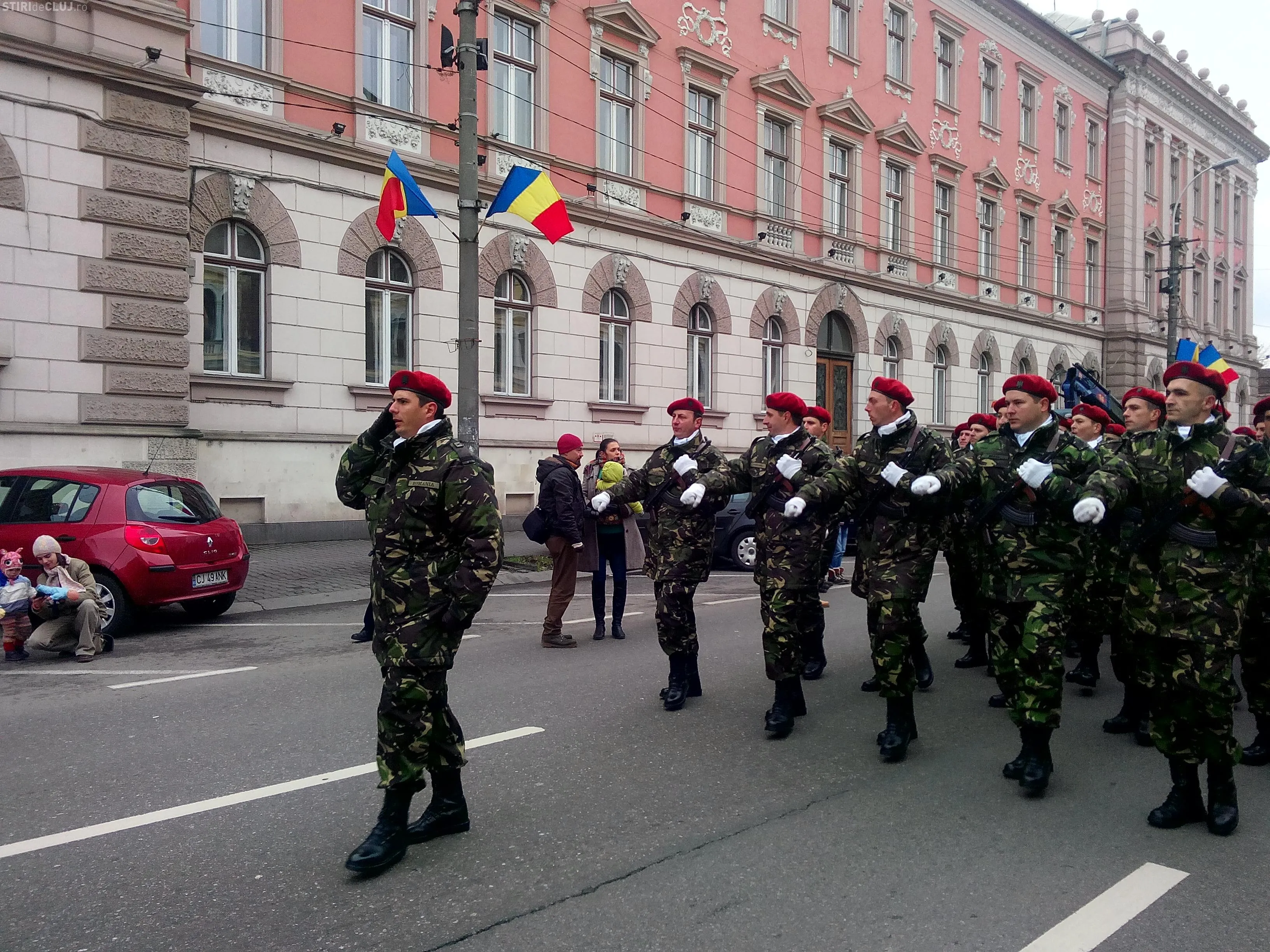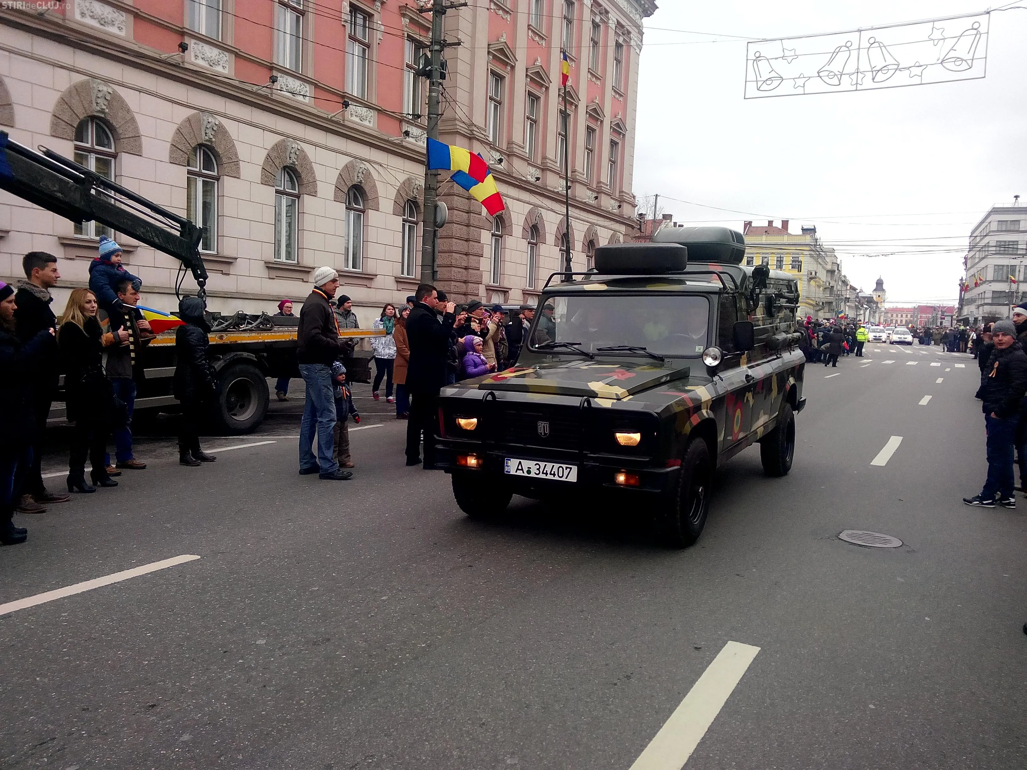 Parada a fost deschisă de defilarea militarilor, jandarmilor, polițiștilor și a pompierilor clujeni.
