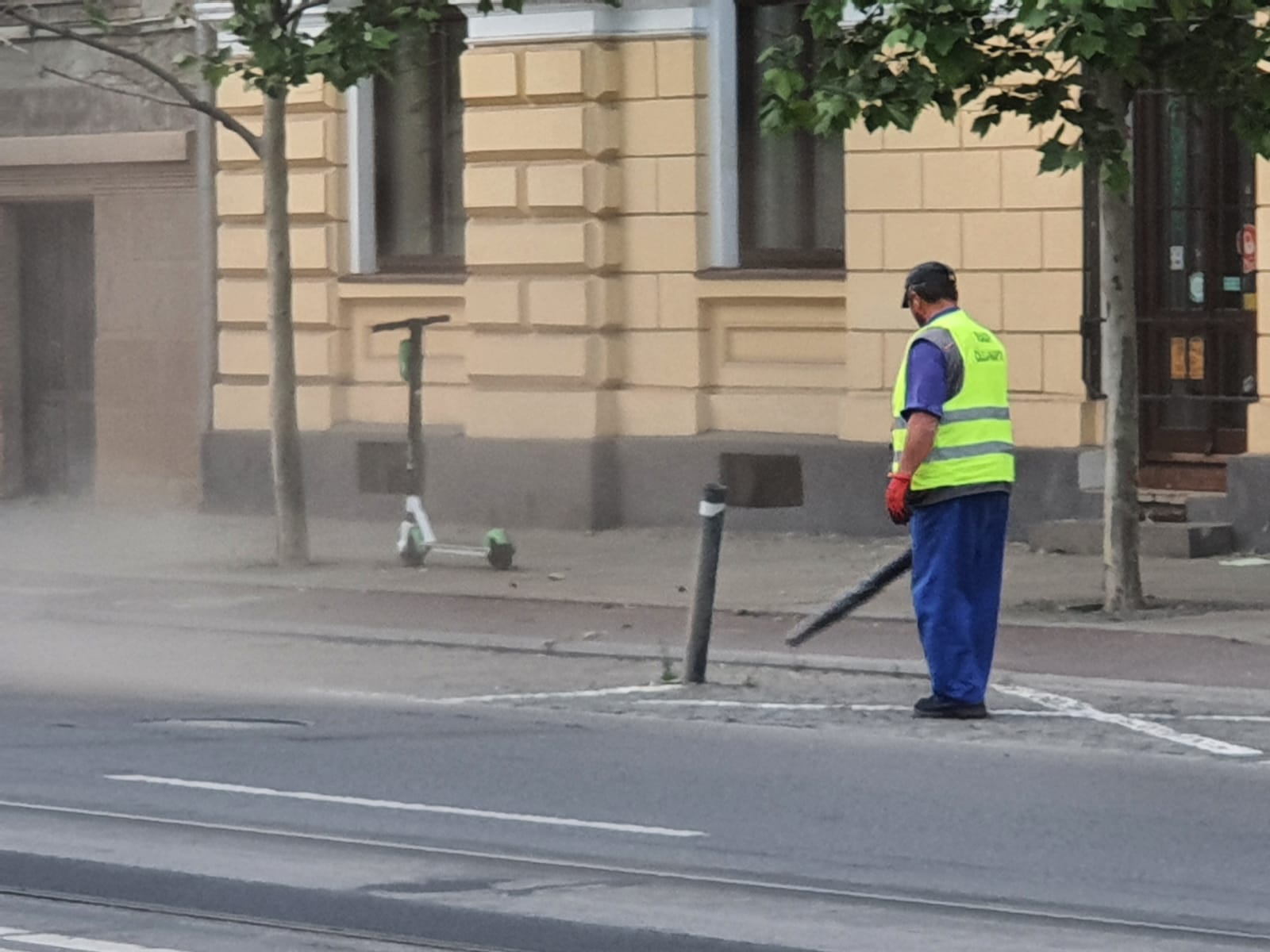 Un muncitor de la RADP Cluj a umplut de praf toate locuințele și mașinile de pe strada Horea. ”Dorel” era echipat cu o suflantă pentru frunze, dar o folosea ca să îndepărteze praful.