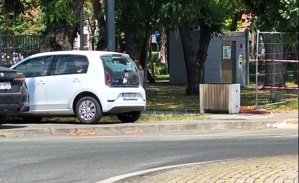 Un șofer care a parcat în Piața 14 iulie pe trotuarul de lângă parc s-a trezit cu o surpriză neplăcută când și-a găsit mașina cu geamul din spate spart.