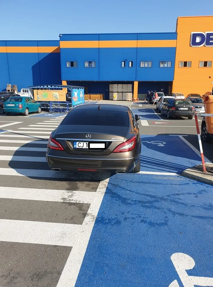 Un șofer a reușit o parcare de toată jena la Dedeman Cluj. Acesta și-a trântit pur și simplu mașina, jumătate pe trecerea de pietoni și jumătate pe o parcare destinată șoferilor cu handicap.