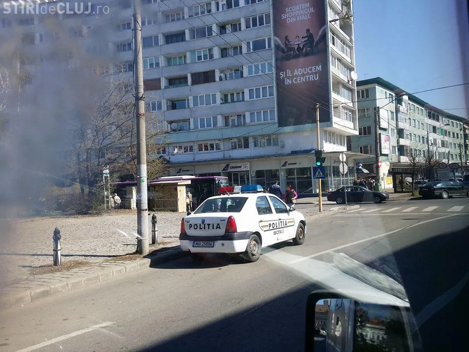 Un autotuturism al Secției 3 Poliție Cluj-Napoca a fost fotografiat parcat neregulamentar în Piața Mihai Viteazu.