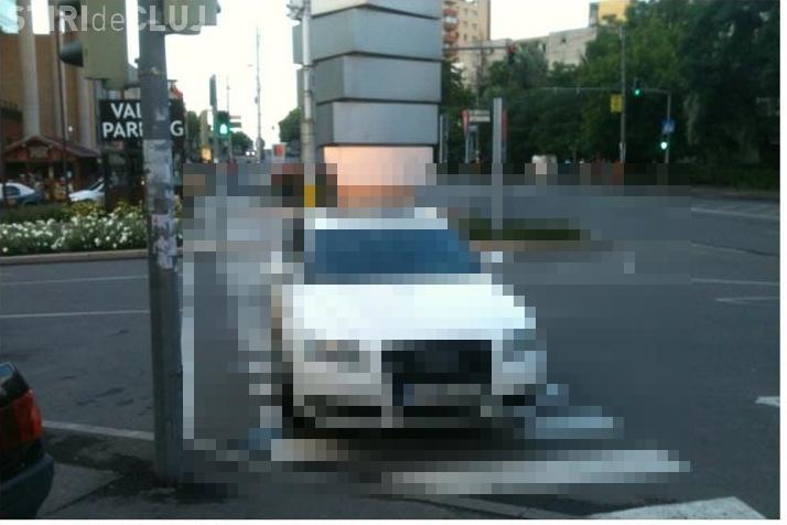 Șoferul unui AUDI și-a lăsat autoturismul parcat, cât e de mare, fix pe trecerea de pietoni, din fața Iulius Mall Cluj.