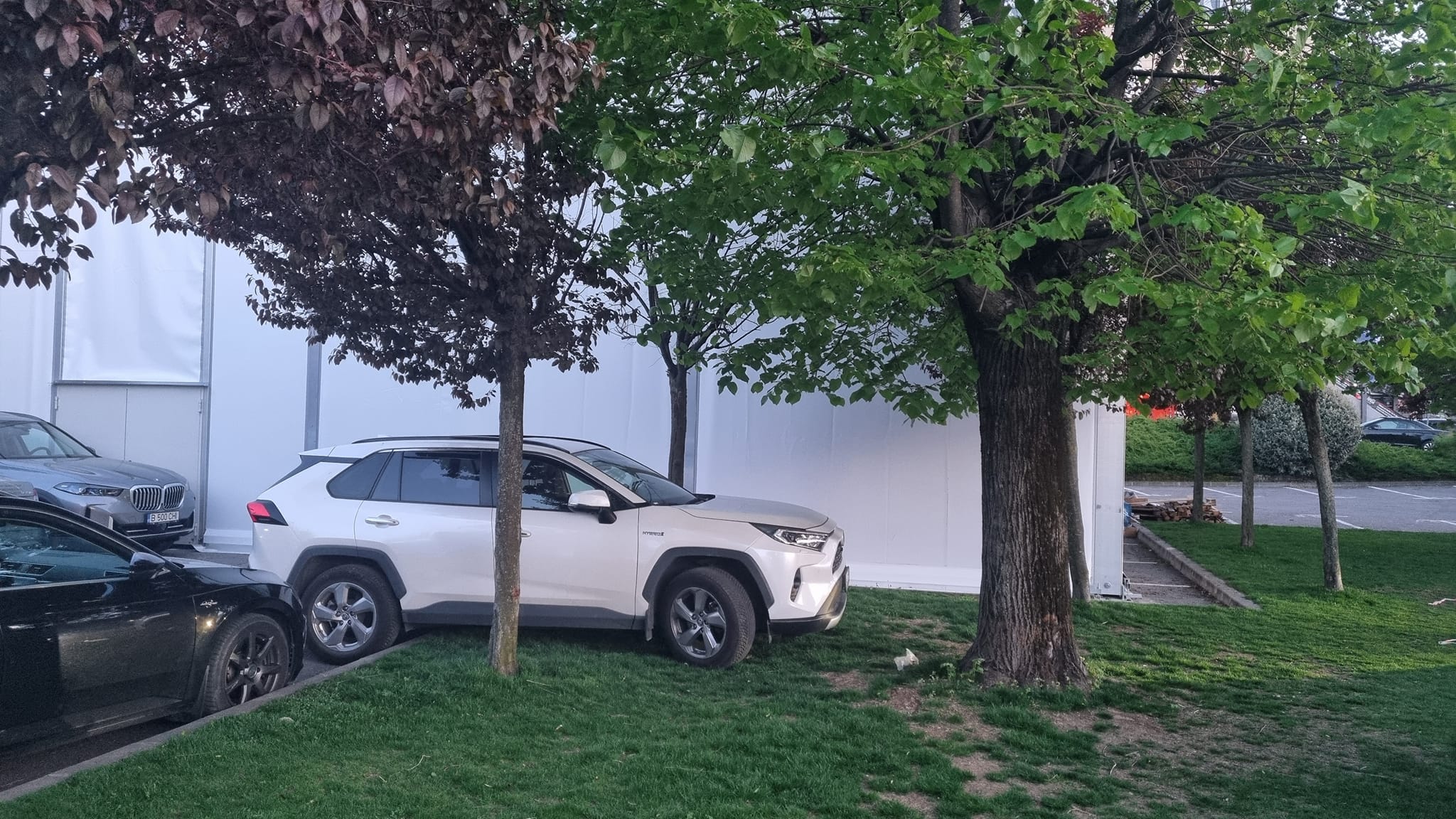 Parcarea de la Univers T este ocupată de un cort uriaș, iar șoferii se descurcă așa cum pot. Un conducător auto a parcat pe spațiul verde, probabil din disperare de cauză.