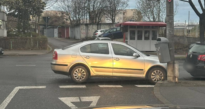 Un șofer care a uitat de orice fel de regulă de conduită pe șosele și-a lăsat mașina într-o intersecție din Cluj. Parcarea sa i-a incomodat extrem de tare pe ceilalți șoferi, fiind un adevărat pericol în trafic.