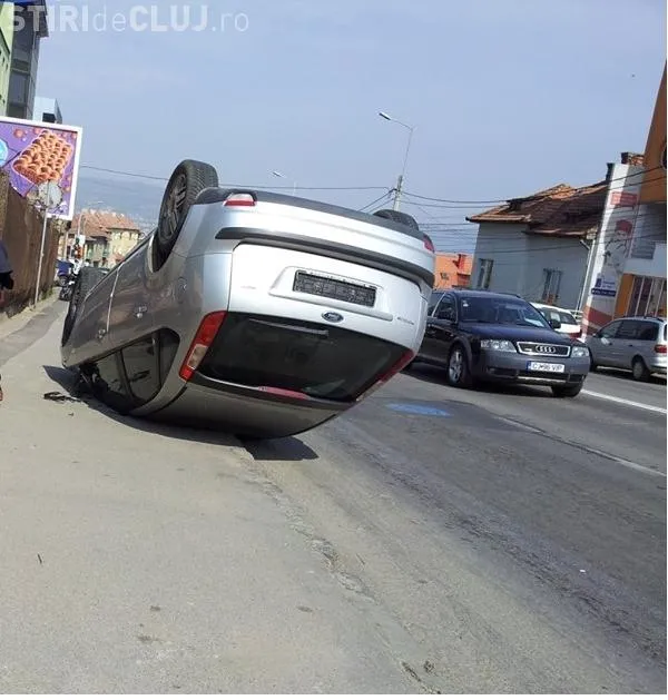 Un accident rutier a avut loc, joi dimineața, pe Calea Turzii, unde un autoturism Ford s-a răsturnat, șoferul uitând să tragă frâna de mână.