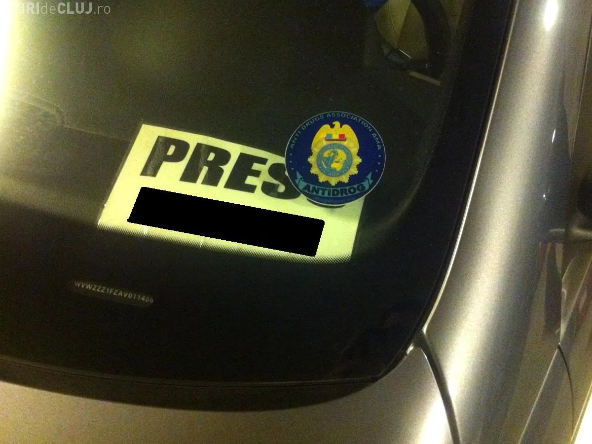 Un autoturism care avea în parbriz ecusonul unei publicații tipărite din Cluj-Napoca, dar și al unei asociații ANTIDROG, a fotografiat în parcarea Iulius Mall Cluj postat în fața ușii de intrare în casa liftului.