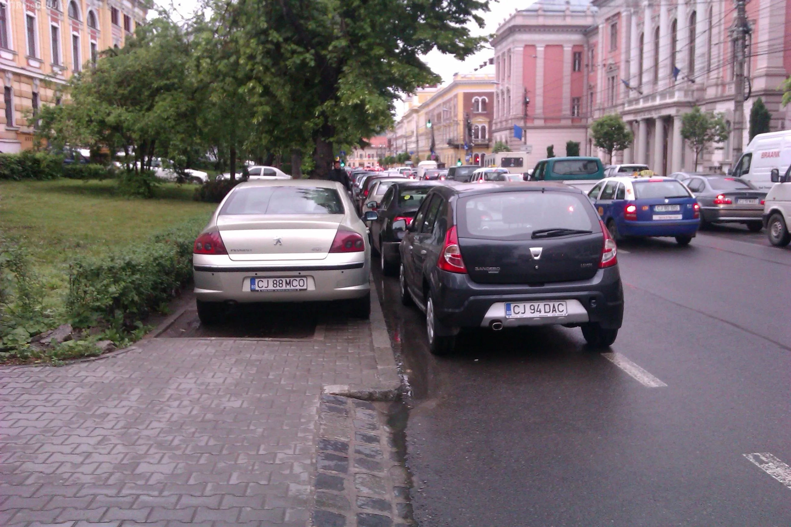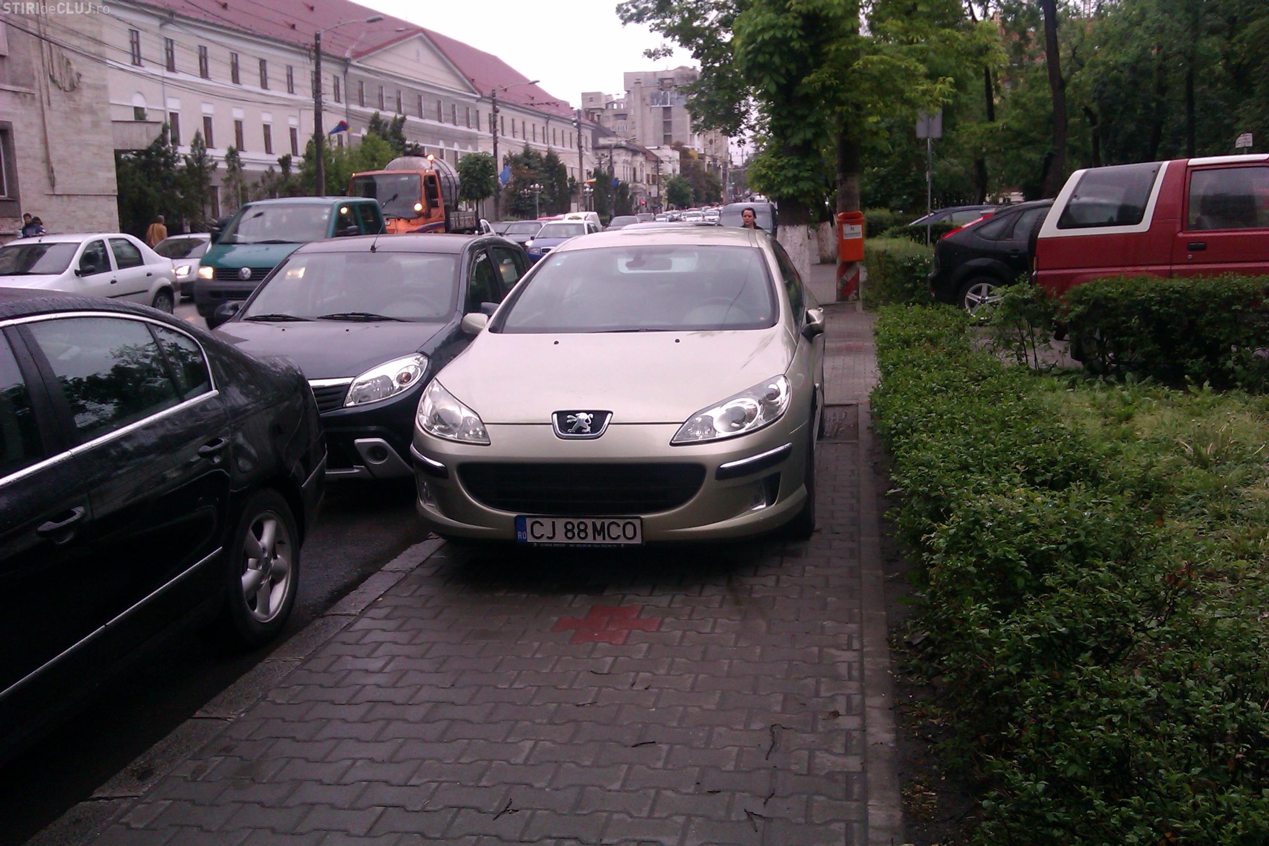 Un sofer si-a parcat autoturismul direct pe trotuar, langa Teatrul National, blocand complet accesul pietonilor.