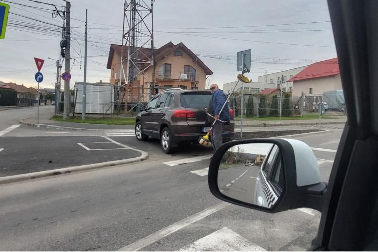 Șoferul mașinii cu numere de Cluj nici măcar nu s-a gândit că gestul său i-ar putea pune în pericol pe pietonii care vor să traverseze strada, având în vedere că aceștia ar fi nevoiți să circule în afara marcajului ca să evite mașina.