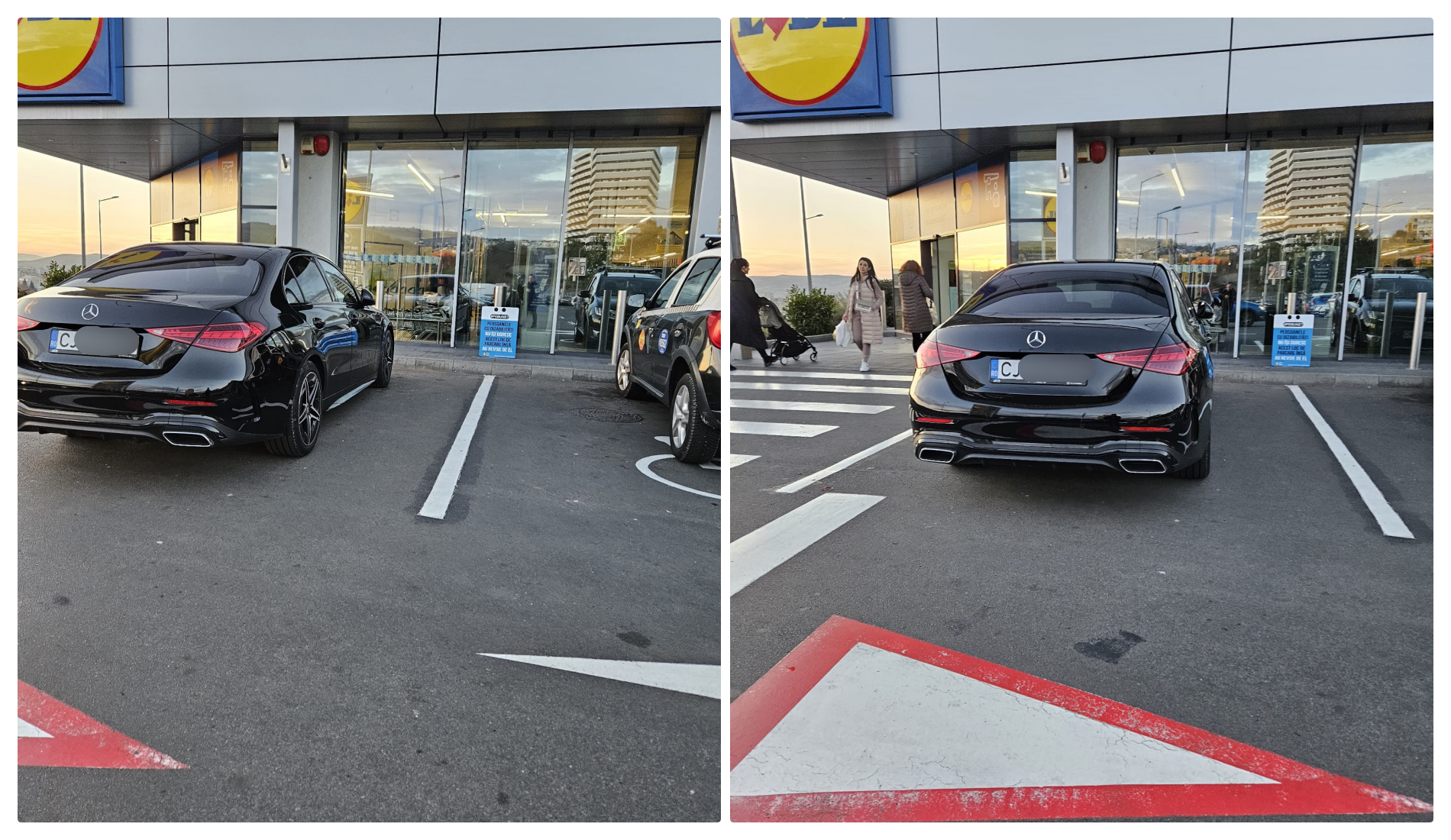 Șoferul unui Mercedes scump a fost fotografiat joi, 2 noiembrie, la Lidl, pe strada Frunzișului, parcat bine-mersi pe locul destinat persoanelor care au probleme de handicap.
