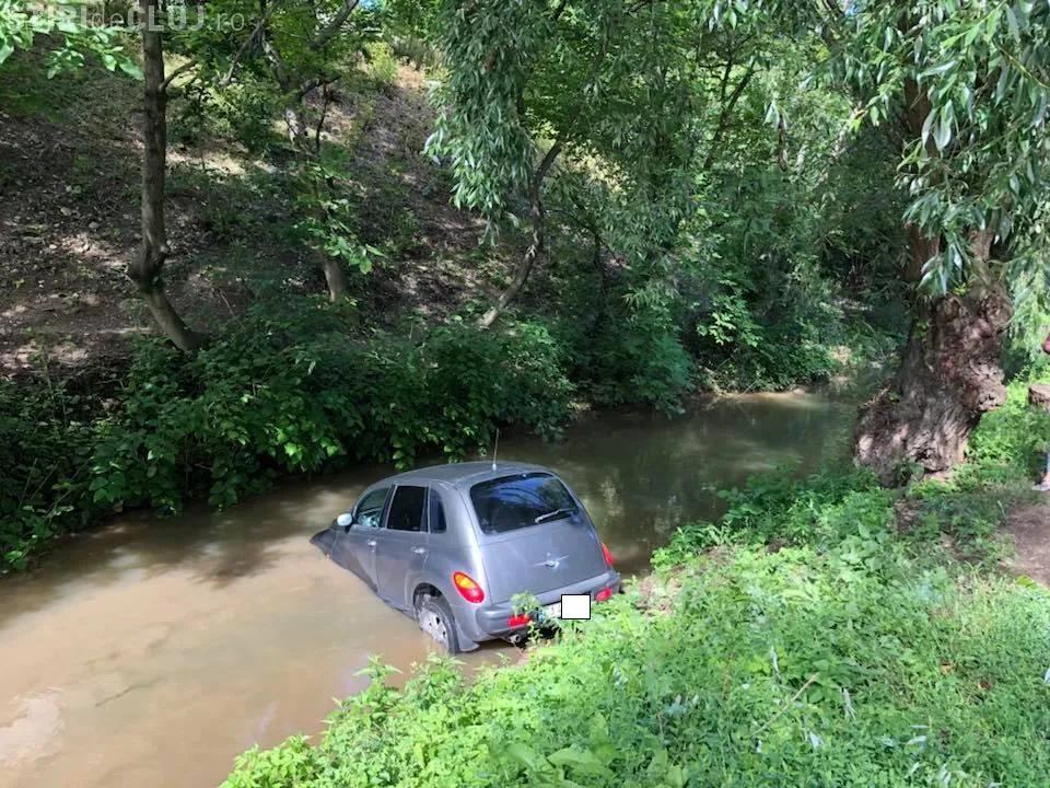 Un șofer a plonjat cu autoturism în pârâul care traversează Parcul Plopilor.