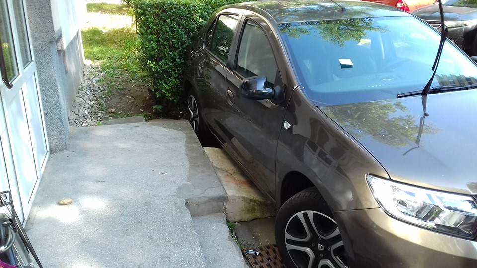 Un șofer din Hunedoara s-a gândit că nu încurcă pe nimeni dacă își lasă mașina timp 2 zile chiar în ușa unei scări de bloc.