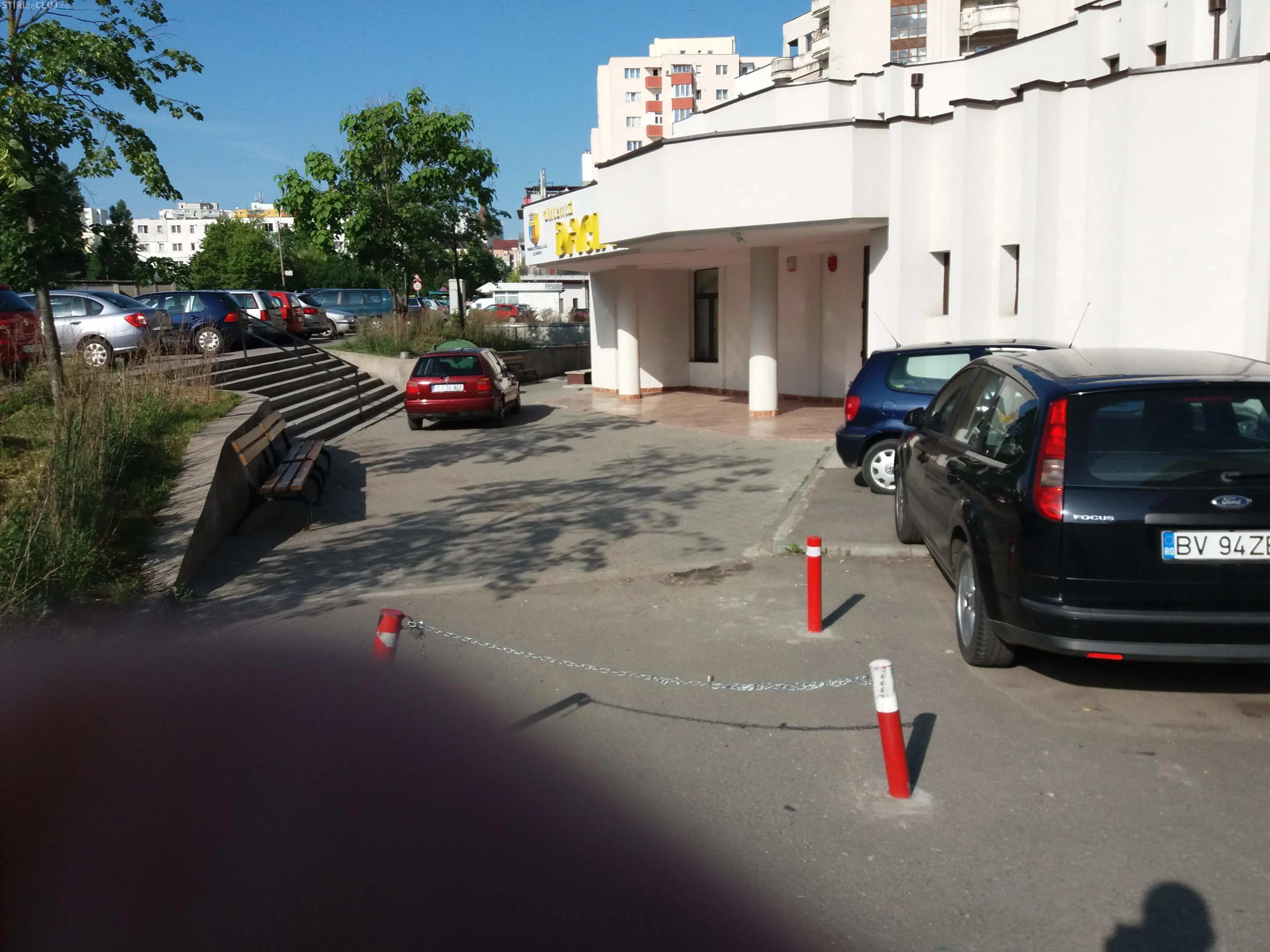 ”În fata cinematografului Dacia din Manastur este o pieteta unde sunt amenajate 2 banci. Pentru a nu permite accesul masinilor pe ea sunt montati cativa stalpisori. Acum cateva luni am observat ca un stalpisor a fost taiat cu flexul si a fost pus un lant incheiat cu un lacat.