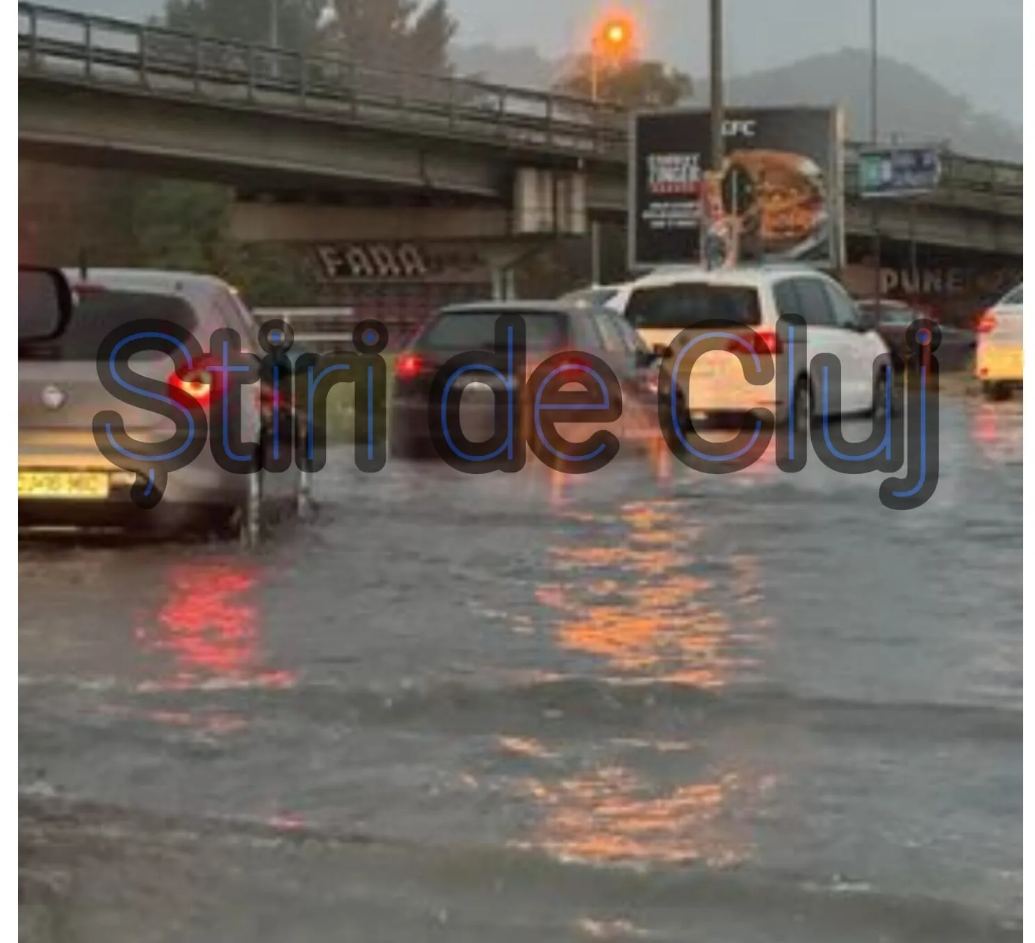 Ploaia torențială din această seară a cauzat inundații severeși în parcarea mall-ului VIVO din Florești, Cluj. În urma precipitațiilor intense, parcarea centrului comercial a fost acoperită de apă, iar vehiculele care se aflau în zonă au fost nevoite să circule prin ape destul de adânci.